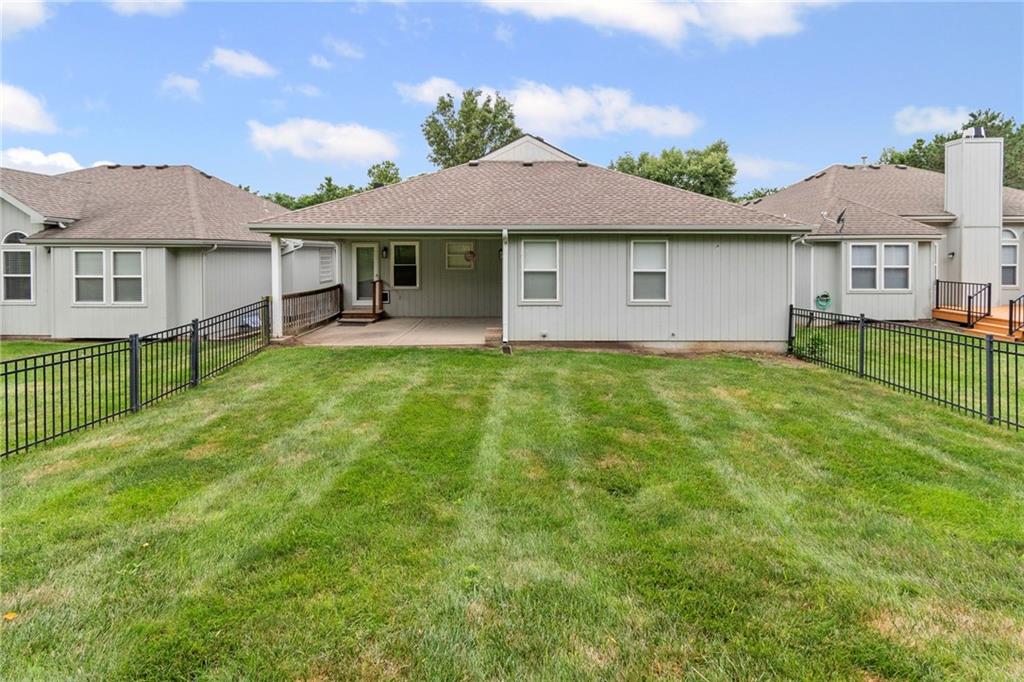 Step into this charming 2-bedroom, 2-full-bathroom patio home, where modern upgrades meet thoughtful convenience! Nestled in a peaceful neighborhood, this home features a 2-car garage for hassle-free parking and storage. The exterior is complemented by a sprinkler system, lawn care and snow removal services provided by the HOA, ensuring your outdoor space stays pristine year-round—no mowing or shoveling required! (snow removal goes into effect when a certain amount has accumulated) Inside, you’ll find a fresh, bright interior with brand-new flooring that adds a sleek, cohesive touch to every room. Updated lighting fixtures enhance the ambiance, while the recently painted walls create a welcoming atmosphere. The open layout flows effortlessly, ideal for both everyday living and entertaining guests. The fenced backyard is a private oasis, complete with a covered patio—a dream spot for summer barbecues or cozy evenings under the stars. Enjoy peace of mind with the secure, enclosed space for children or pets to play. Beneath it all lies a spacious, full unfinished basement, offering a blank canvas for your creativity. Whether you envision a home theater, a workshop, or additional living space, this area is ready to be personalized to suit your lifestyle. With its blend of move-in-ready updates and endless potential for customization, this home checks all the boxes for comfort, practicality, and curb appeal. Not to mention the great highway access to 291, I-35 and 69! Make sure to schedule your showing today!