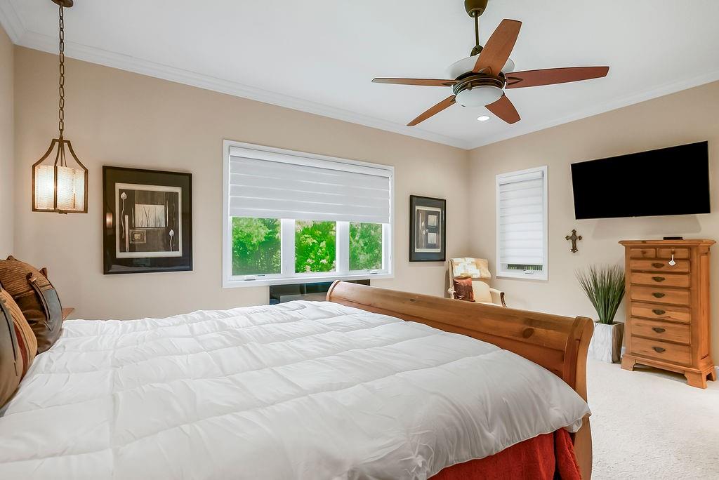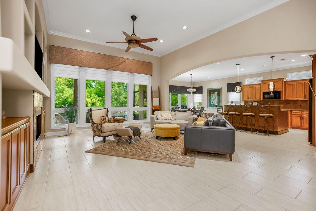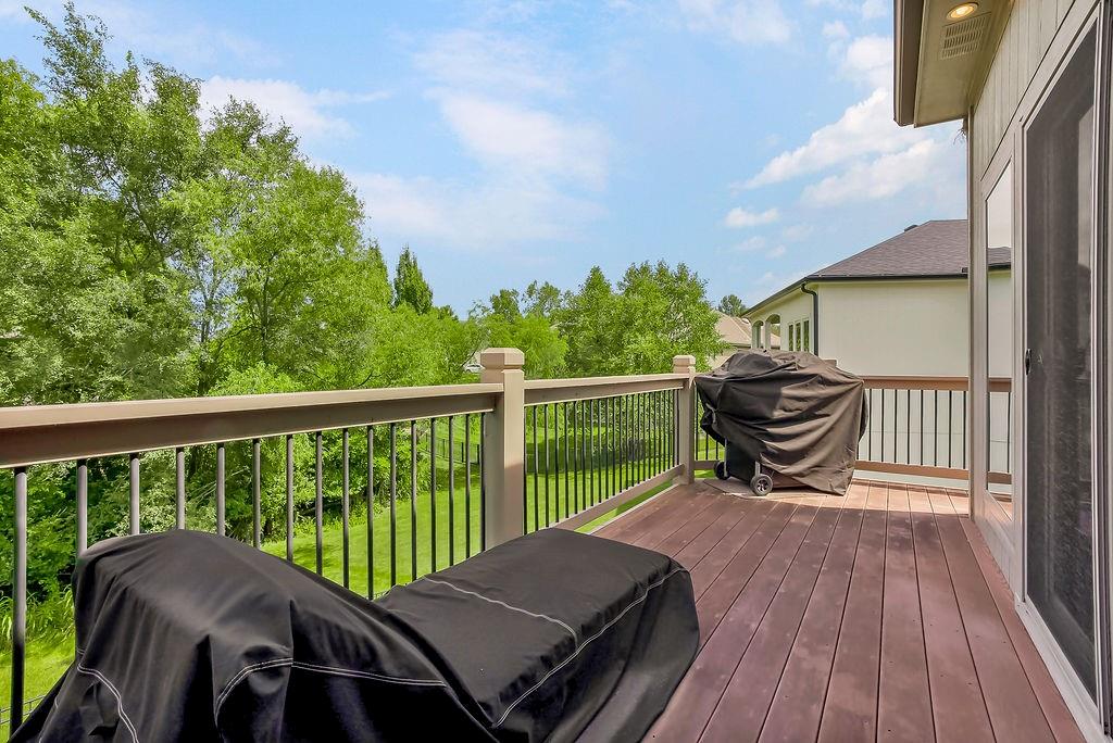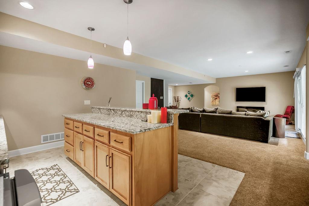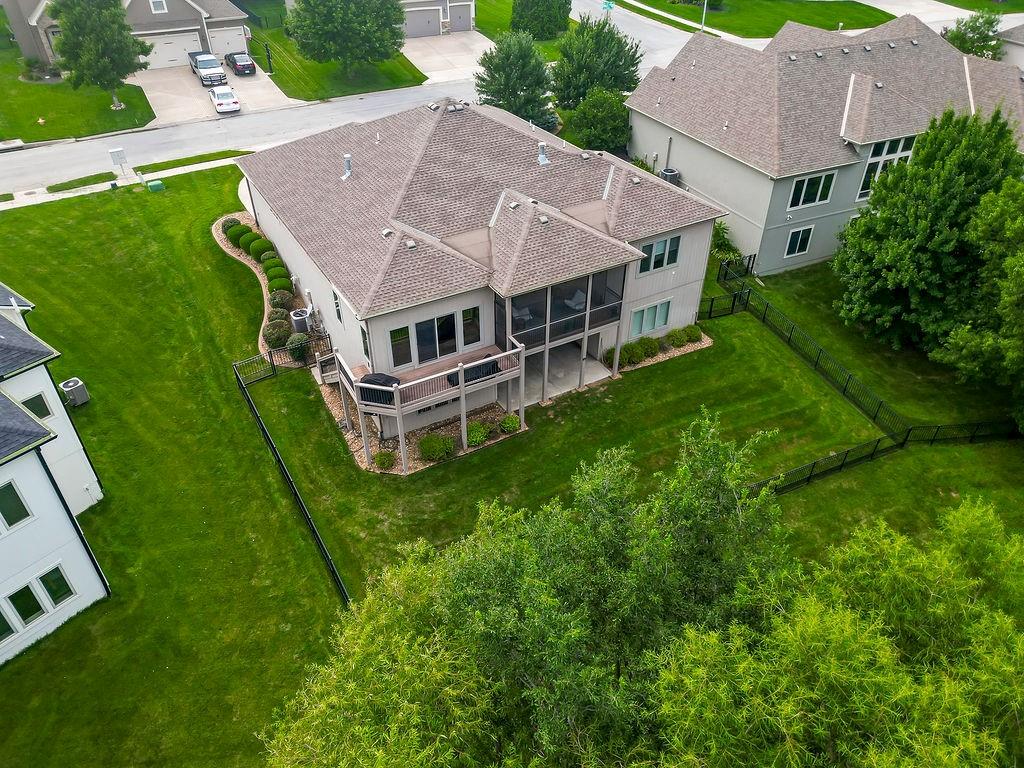 Experience luxury living in this beautifully maintained reverse 1.5-story home. The great room features an elegant electric fireplace, custom built-in shelving, and a striking wall of windows with custom-made awnings that fills the space with natural light. Custom tile extends throughout the main living area upstairs. The spacious kitchen offers granite countertops, a breakfast bar, and a walk-in pantry, all flowing seamlessly into a sunlit dining area surrounded by windows. Just off the dining space, a brand new screened-in porch provides the perfect place to enjoy the stunning wooded views year-round. The main-level primary suite includes a built-in fold-away desk, a large walk-in closet, a gleaming glass shower, Jacuzzi tub, and dual raised vessel sinks set in granite. A second bedroom and full bath are also located on the main level, along with a laundry room complete with sink and cabinetry. The finished lower level shows like new and expands the living space with a generous family room, wet bar, and a dedicated area for a pool table or games. Pool table stays! You'll also find a third bedroom with a walk-in closet, a full bath, and a fourth non-conforming bedroom with a large closet. Outside, the wraparound deck extends along the back and side of the home and connects to stairs leading down to the fully fenced yard, offering convenience and beautiful natural views. Seller is Motivated! Bring us an offer! New roof will be installed prior to closing! The property is part of a well-appointed neighborhood that includes a clubhouse and event center, fitness center, three swimming pools, tennis and pickleball courts, walking trails, a community gazebo, playground, and acres of green space. With easy access to major highways and just minutes from Lake Jacomo and Blue Springs Lake, this home offers the perfect balance of comfort, convenience, and outdoor recreation.