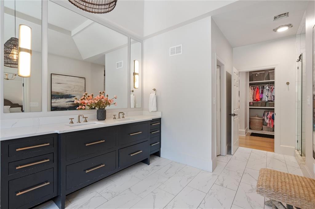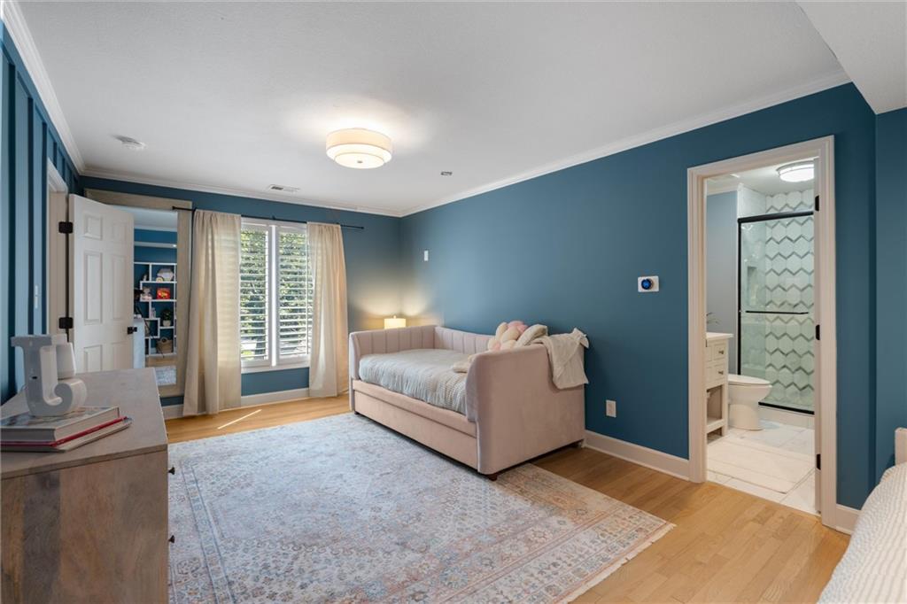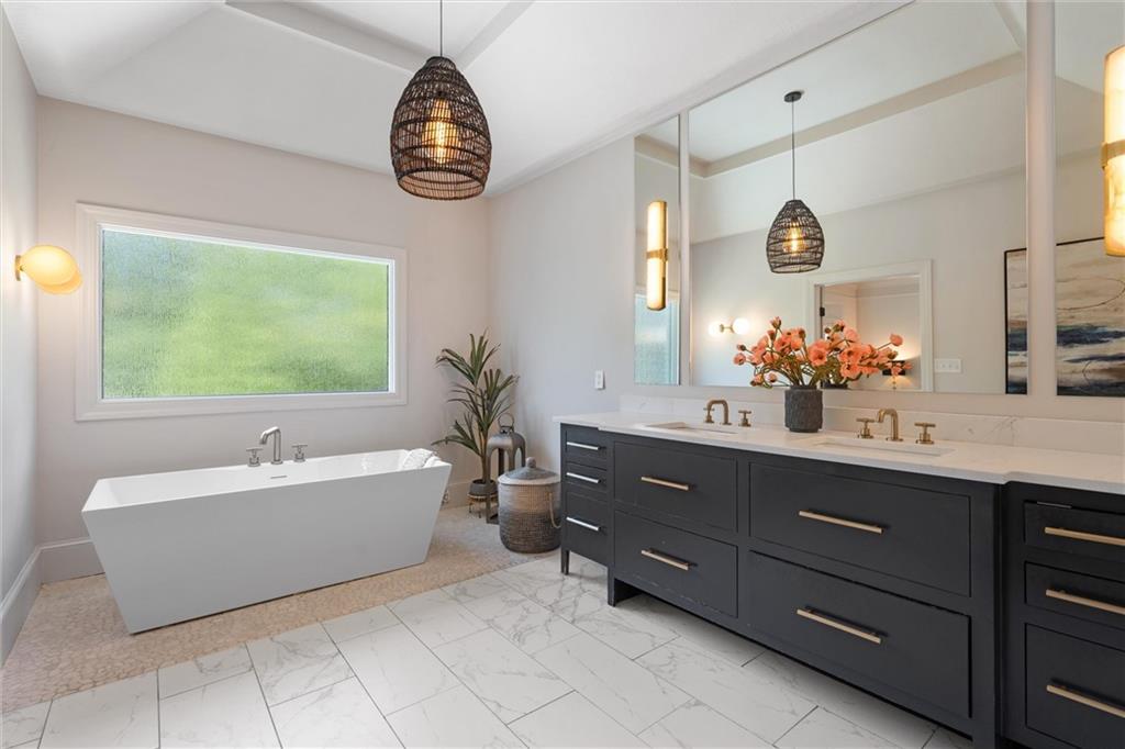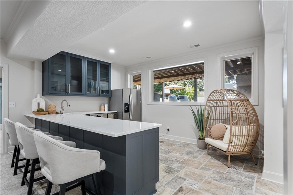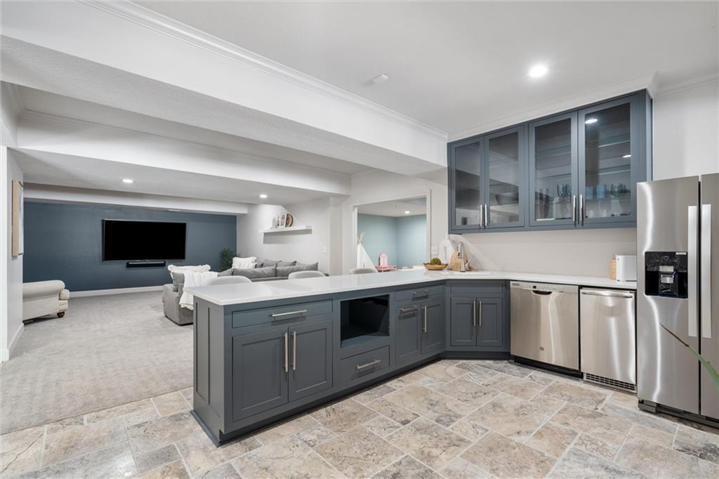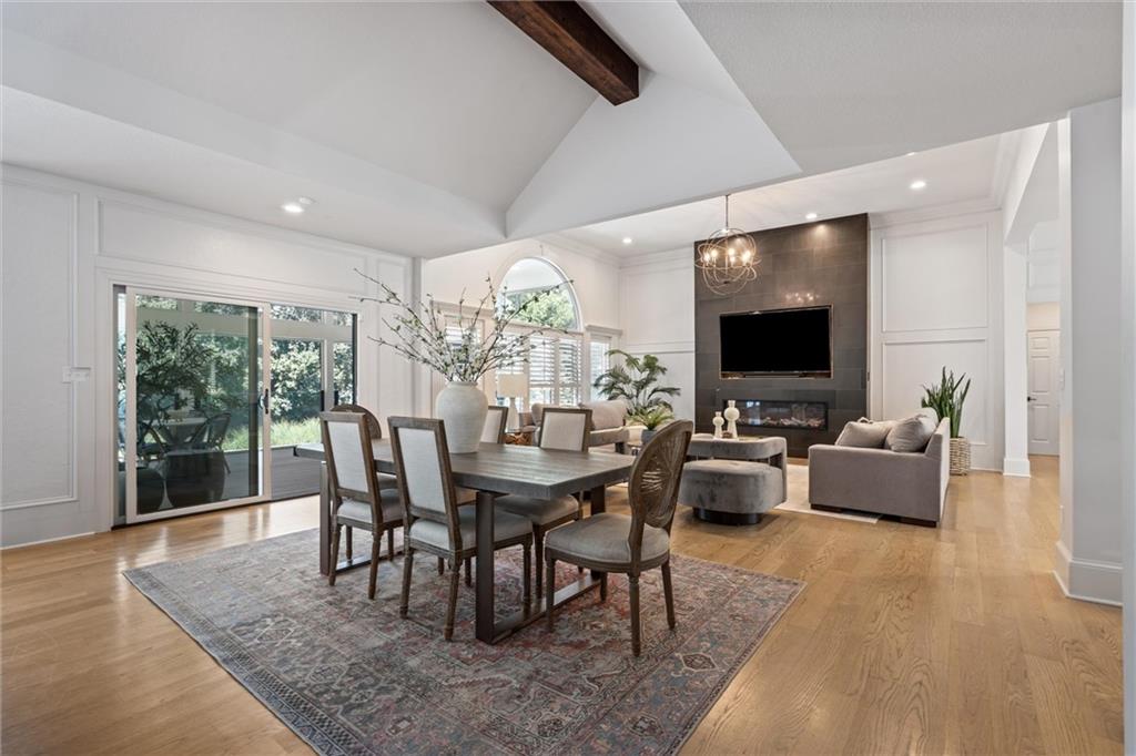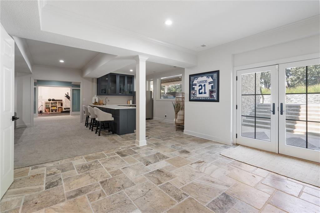 Welcome to this exceptional completely renovated 1.5-story estate nestled on a private double lot with 1.25-acres in the coveted Whitehorse neighborhood. Meticulously renovated with no detail spared, this 4-bedroom, 4.5-bath home blends elegance with modern functionality and a stunning salt water, heated gunite pool. From the entry you’re greeted by an expansive open floor plan with hardwood floors and designer finishes throughout. The main level features a stunning gourmet kitchen with massive island, custom cabinets, walk-in pantry with built-ins, and an impressive wet bar—ideal for both everyday living and entertaining. The living room, flows into the screened-in back patio, complete with a fireplace and ceiling heaters for year-round enjoyment. This serene space overlooks the gorgeous pool with tranquil waterfall features, remote cover, and a shallow lounging area—perfect for soaking up the sun or letting kids splash and play. The surrounding landscaping adds to the private, lush atmosphere, making the entire backyard feel like a five-star escape. The main-level primary suite is a retreat of its own, offering a soaking tub, huge custom walk-in closet with built-ins, and laundry area for convenience. Office with glass French doors is tucked away off the entry for a functional yet quiet space to work from. Upstairs, you’ll find two spacious bedrooms, each with en suite bathrooms and ample closet space. The walk-out lower level is equally impressive—featuring a second full kitchen, expansive living area, fourth en suite bedroom, and a versatile bonus room perfect for a theater or playroom. A massive fitness room with floor-to-ceiling mirrors and custom built-in cabinets completes the space, making it a wellness lover’s dream, and just steps away from the walkout leading to your backyard oasis. Discover unmatched comfort, design, and privacy conveniently located minutes from restaurants, shoppings, Blue Valley Schools, and everything South Leawood has to offer!