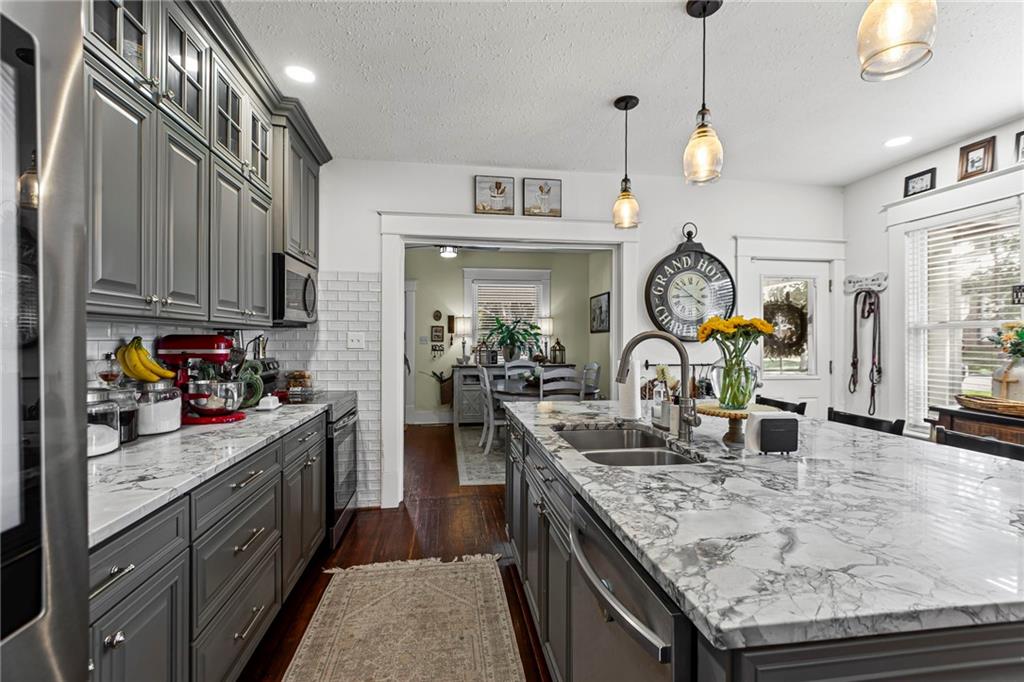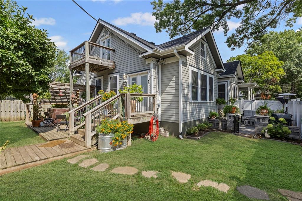 Wow, this is great opportunity to buy a home with older charm and characteristics but updated with newer more modern updates. When you first pull up to the house, take in the covered wrap around front porch with a porch swing to enjoy your morning coffee to get our day started. As you enter the home, take note of the beautiful wood floors and woodwork throughout the entire house, and two gas fireplaces for the cozy winter nights. The large kitchen is the envy of most cooks with granite countertops, huge island and updated appliances. Family room addition on main floor and lower bar area has many extras. Large bedrooms with vaulted ceilings and walk-in closets. This 3,500 square foot home is beautifully maintained as you will see. The seller's had french doors professionally installed to enter into the patio area on the side of the house, a great place to entertain guest or just sit and enjoy the shade within the privacy of your own enclosed back yard. There is also a deck with a pergola covering the hot tub area, for relaxing after a long day. There is a balcony off the upstairs bedroom overlooking the detached two car garage. Come take a look, you will not be disappointed!