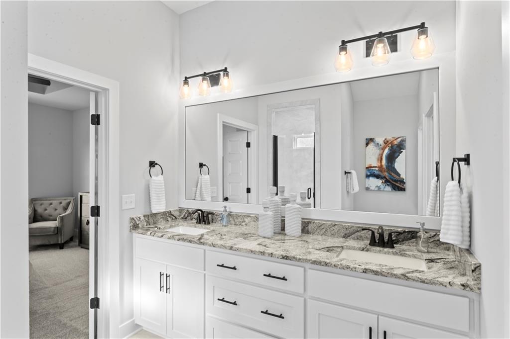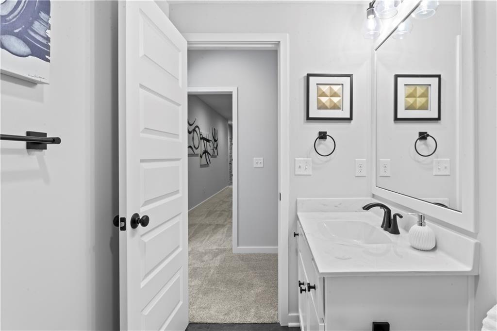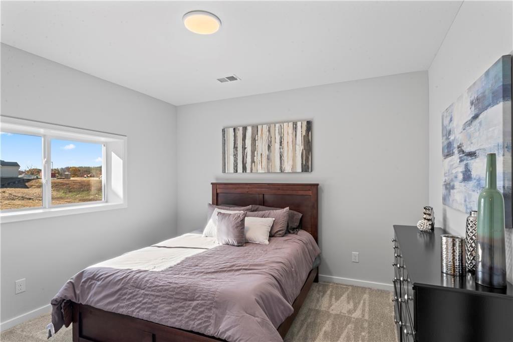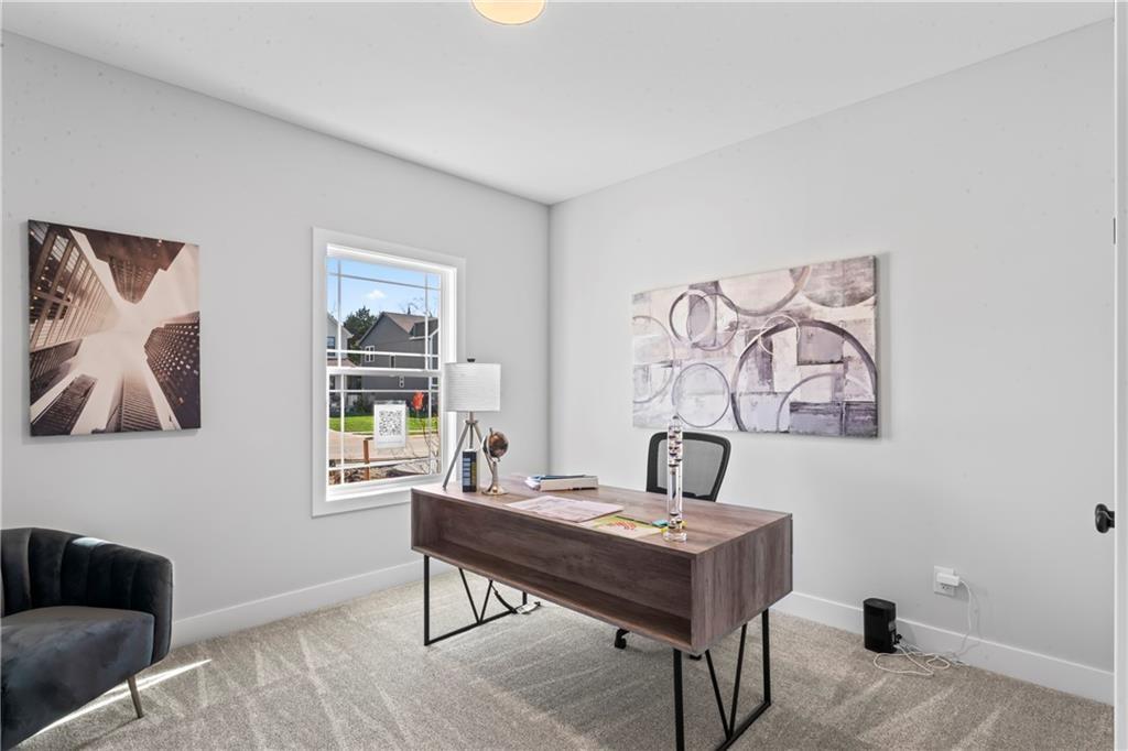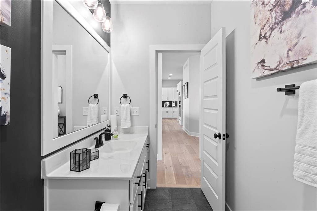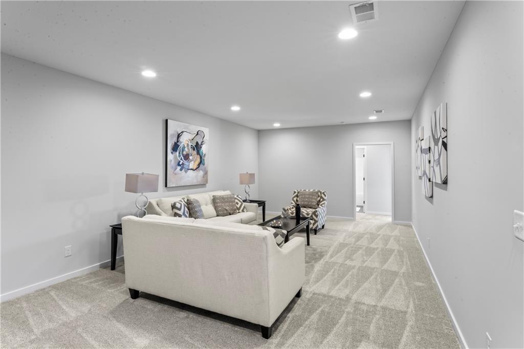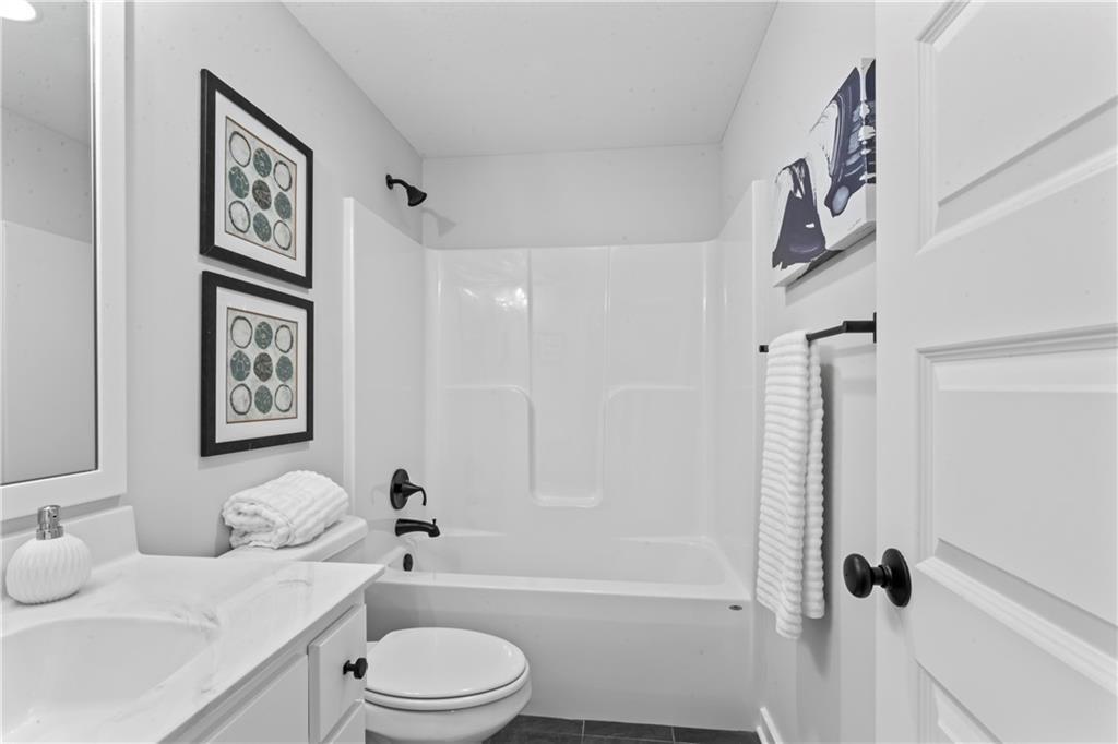 Stonebridge Villas, New Construction. The Grayson by New Mark Homes. 0.8 mi to Heritage Park • Open reverse 1.5-story • 4 months to completion. The Grayson by New Mark Homes offers open-concept main-level living with 4 bedrooms, 3 baths, and a 3-car garage. Great room features fireplace with built-ins and large windows for natural light. Kitchen includes island seating, walk-in pantry, gas cooktop, and double wall ovens. Dining area opens to covered patio for outdoor dining. Primary suite with dual vanities, tiled shower, and spacious walk-in closet connects to laundry and mudroom. Lower level includes daylight family room, bedroom, full bath, and unfinished storage. East-facing backyard with covered patio and level lawn. Located near Heritage Park, Olathe Lake, shopping, and highway access. Includes photos of a similar model—actual home under construction. Estimated completion in approx. 4 months.