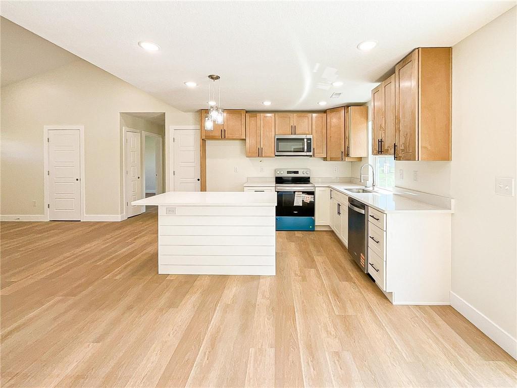 Brand New Ranch style home built with quality and attention to details. Covered front porch leading you to an open floorplan living space with large living room, vaulted ceilings, recess lighting and water proof vinyl floors throughout. Great kitchen with island, granite counters, oven/range, built in dishwasher, microwave and eat in area with sliding glass doors to patio. Master suite with oversized walk in closet and full bathroom. 2 more bedrooms on the main level and second full bathroom nearby. Laundry/mud room leading to a 2 car attached garage. Central heating and cooling system with heat pump, vinyl thermal pane windows and engineered wood siding. Located on the edge of town, surrounded by newer homes and easy access to 50 Hwy and walking distance to grocery store.