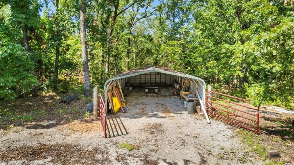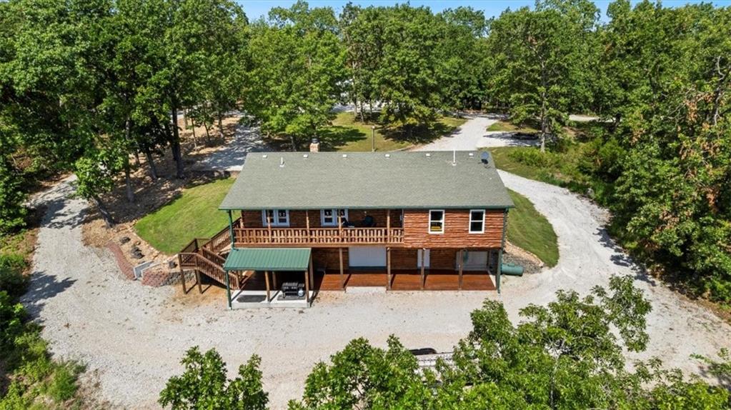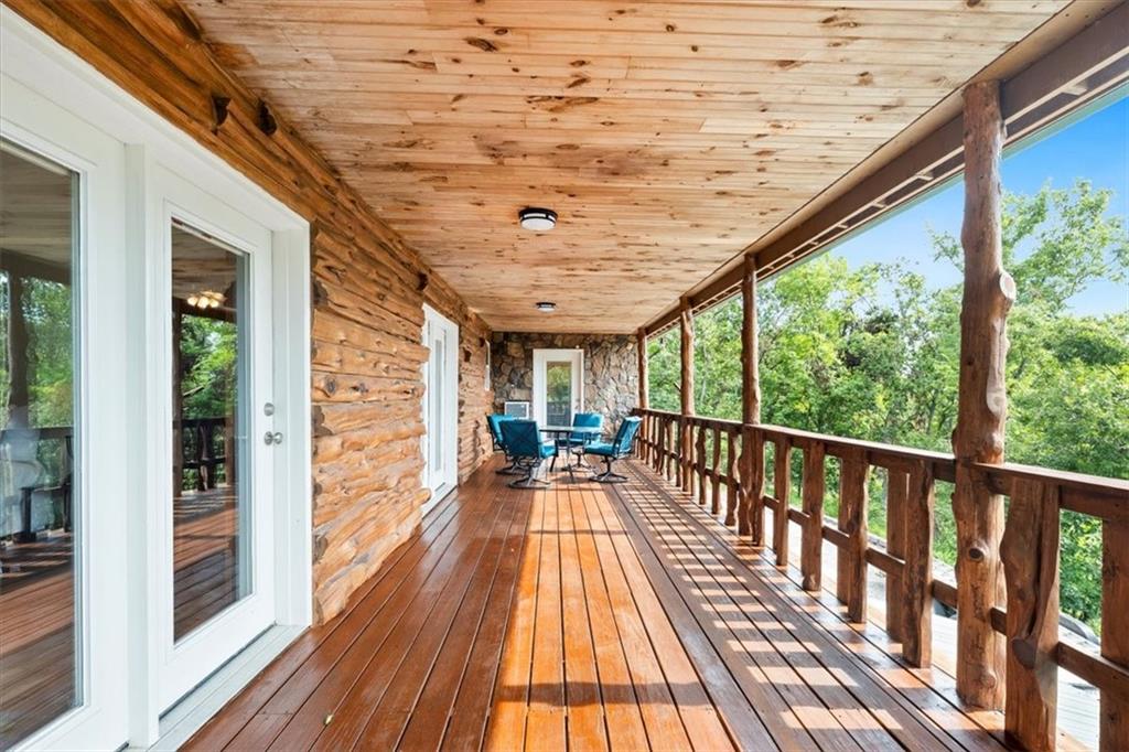 Dreaming of a lake get away? Welcome to this beautifully maintained 2-bedroom, 2-bath cedar log-sided home on approximately 8 acres, nestled on a serene lot that backs up to core land of Truman Lake. Whether you’re looking for a weekend getaway, full-time retreat, or lake lover’s dream, this property offers the perfect blend of privacy, comfort, and functionality. Selling fully furnished - as turn-key as they come, step inside and you’ll be greeted by cedar walls, gleaming hardwood floors, and a stunning stone wooden fireplace. The updated kitchen is both stylish and functional, featuring double ovens, gas stove, granite countertops, custom cabinets, tile backsplash, and newer stainless steel appliances. Laundry is located on the main level. Both bedrooms are generously sized with large closets and updated bathrooms that include tiled flooring and spacious walk-in showers. One bedroom offers direct access to the back deck, perfect for enjoying your morning coffee with a view. Enjoy outdoor living with a covered front porch and a large covered back deck overlooking peaceful woods and wildlife. The basement offers the potential for additional living space or ample storage for lake gear, ATVs, or hobbies. The property includes a 30x40 Quonset outbuilding with concrete floors and electricity, plus multiple pole barns, ideal for storing boats, equipment, or working on your next project. The pole barn directly behind the outbuilding has electricity running to it as well. Property is own it's own private well. Find mature Hickory, Oak, and Cherry trees throughout the timber. Located minutes away from restaurants, boat rentals, motels, RV parks, marina/boat slips, and more! This property is a must see!