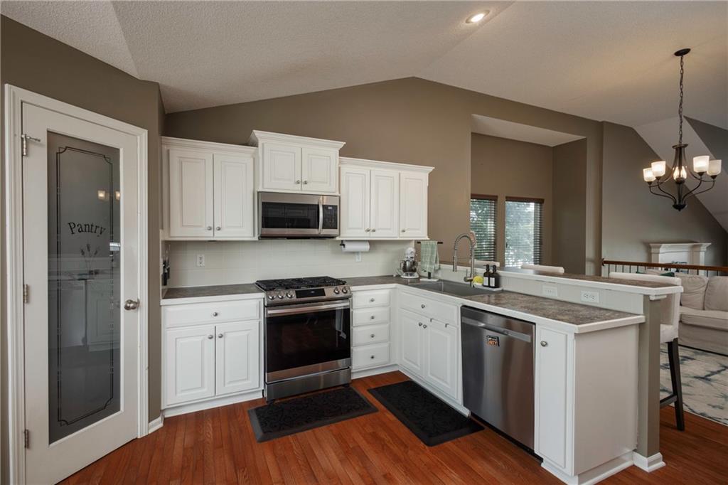 Welcome to this spacious 4-bedroom, 3-bathroom Front-to-Back Split in the desirable Lakepointe neighborhood. Built in 2003 and featuring a 3-car garage and brand new roof in 2024, this home is move-in ready with all appliances included—even the washer and dryer! Step inside to a warm and inviting family room with gleaming hardwood floors, gas fireplace, and abundant natural light thanks to the open floor plan. The kitchen features hardwood flooring, a walk-in pantry, stainless steel appliances, gas range, and ample cabinet and counter space, perfect for everyday cooking and entertaining. The primary suite offers a walk-in closet and a spacious en suite bath with a double vanity, separate shower, and soaking tub. Enjoy direct access to the back deck from either the kitchen or the primary bedroom. Downstairs, you’ll find a cozy second living area with a fireplace insert and walk-out access to the fenced backyard, along with the third bathroom, fourth bedroom (ideal for guests or a home office), unfinished storage space, and a subbasement with an egress window for additional possibilities. Conveniently located within walking distance to trails and just minutes from I-435, this home checks all the boxes for comfort, functionality, and location.