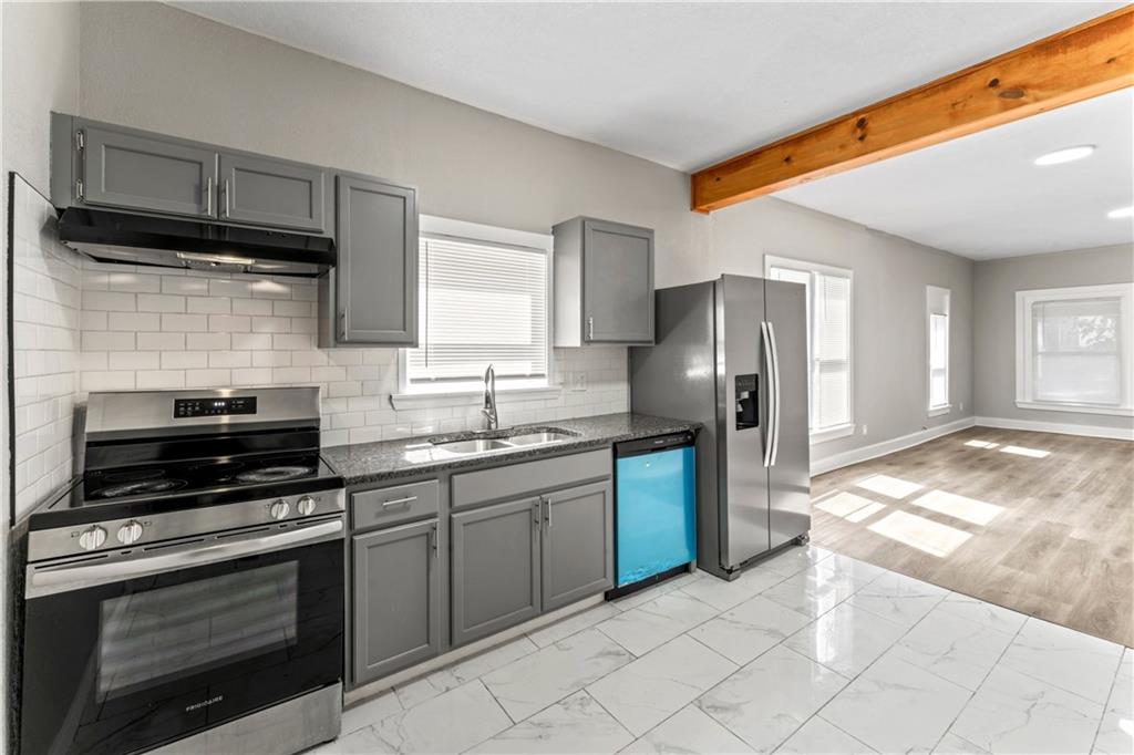 Charming Renovated Bungalow! Move-in ready 3-bedroom, 2-bath home with modern updates throughout. Step inside to an open floor plan filled with natural light, featuring new luxury vinyl plank flooring and fresh paint. The stylish kitchen showcases granite countertops, subway tile backsplash, stainless steel appliances, and tile flooring. Both bathrooms have been tastefully remodeled with contemporary finishes. Enjoy the spacious bedrooms and updated fixtures. Relax on the covered front porch or entertain in the generous backyard. Newer mechanicals and a clean, bright interior make this a perfect starter home or investment property. Ample parking at the back of the property. Conveniently located near highways, shopping, and downtown KC. Don’t miss this turnkey opportunity—schedule your showing today!