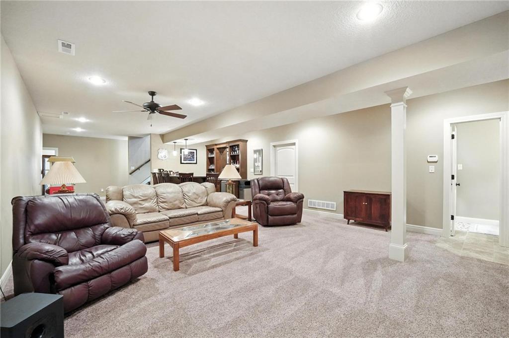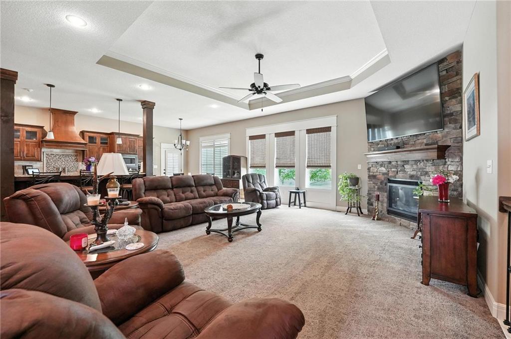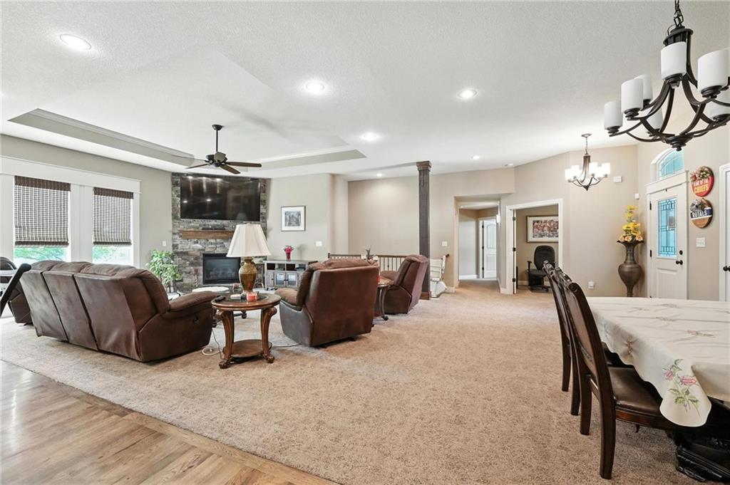 PRICE IMPROVEMENT! Welcome to this stunning Lee's Summit residence, where luxury & functionality meet. This 5-Br, 4-Ba home has over 4,000 sq ft of meticulously designed living space. 2 of the 5 Bedrms have en suites. A soaring ceiling & a wall of windows line the Living Rm.The Spacious Liv Rm is 1 of 2 Living Areas & showcases a gas fireplace with a floor-to-ceiling stone wall. The gourmet kitchen is a chef's dream, complete w/ beautiful stained cabinetry, gleaming granite countertops, and top-of-the-line appliances including 2 ovens, 1 of which is a convection oven. A massive walk-in pantry w/ a convenient service door to the garage & a built-in mini drink cooler ensure you'll have all the storage & amenities you need. A laundry room is conveniently located just off the kitchen with a second laundry room on the lower level. Escape to the huge master bedroom, a true sanctuary measuring 25 feet long, featuring a sophisticated coffered ceiling with a ceiling fan and a dedicated sitting area. The master bath is a spa-like retreat, finished w/ceramic tile flooring, a granite countertop with double vanity, a fully tiled shower with 2 shower heads plus a luxurious rain shower head, built-in linen closet & drawers, & a generous walk-in closet. The fully finished Lower Level expands your living & entertaining possibilities, offering a huge Rec Rm w/ wet bar complete with ice machine & mini fridge, 2 bedrooms, & 2 bathrooms. 3 of the 4 bathrooms in this home are equipped with bidets, adding a touch of modern convenience & luxury. A screened porch is off Kitchen. The oversized garage is a car enthusiast's dream, accommodating 4 cars with a large work area. The lawn has an inground irrigation system. This home truly offers an abundance of space & high-end features, making it the ideal setting for a growing family or for those who love to entertain in style. Discover the perfect blend of elegance, comfort, and practicality in this exceptional Lee's Summit property.