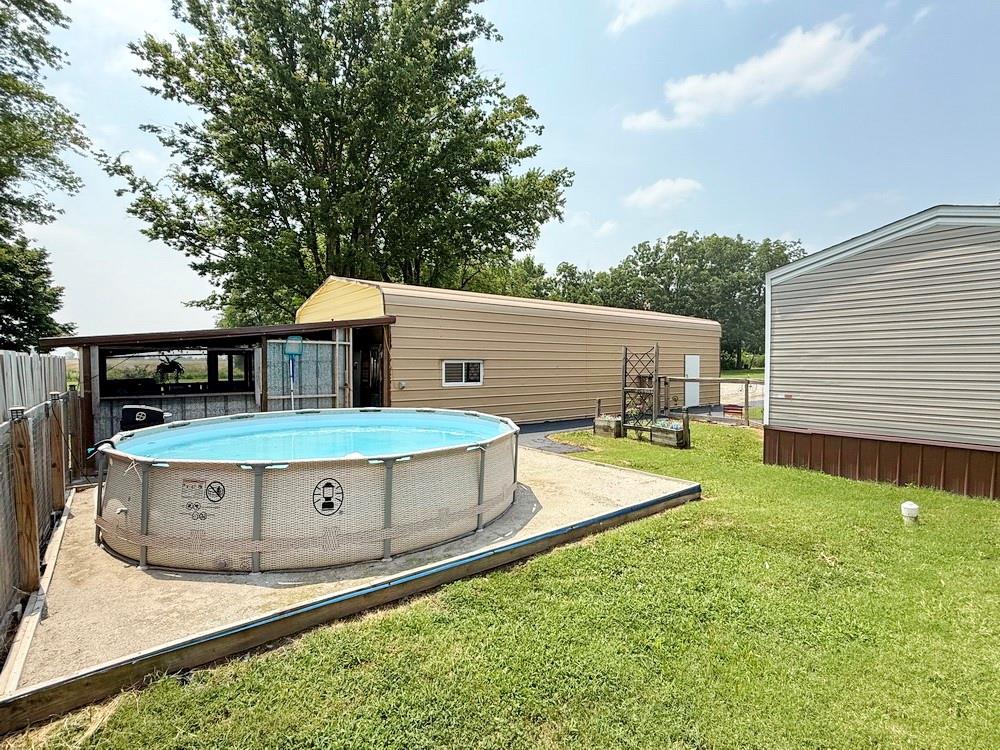 Just a few miles from the Schell-Osage & Four Rivers Wildlife Conservation Areas is a home you’ve got to see. On the edge of the quiet town of Harwood, MO, this property offers a peaceful country setting with convenient improvements to suit your needs. Harwood is located in Southwest MO less than 30 minutes from Nevada, MO & 20 mins from El Dorado Springs, MO. The heart of the property is the well-kept 3 bed, 2 bath manufactured home built in 2021. The 980 sq ft home has all the comforts in an efficient layout. Outside is an oversized 1-car detached garage with extensive space for vehicle, boat, & mower parking, plus room for a workshop & storage. The back portion of the garage is finished into a cozy lounge; a place to unwind after a long day. A 16’x22’ screened-in, covered patio area is a relaxing retreat & excellent bonus to the property. This area is complete with built-in seating, garden lights, space for outdoor dining, & room for a hot tub. An above-ground pool surrounded by a privacy fence adds to the outdoor enjoyment, & the large, shady yard offers a serene southern view of open country. Upgrades around the home include asphalt sidewalks in both the front & back, connecting the front porch, pool, patio, & garage. A 10x11' storage shed provides additional storage space. The gravel driveway gives plenty of parking & has potential to be improved into a circle drive with two road entrances for easy access. This spacious piece of land across the road from the home offers a rare opportunity with endless potential. With utilities already available, the groundwork is laid for easy development. You could build a second home, park your RV, start a small business, or simply enjoy the extra green space & added privacy. This property is ready to meet your vision. Whether you’re a seasonal duck or deer hunter looking to be close to public hunting opportunities or you are looking for an affordable forever home close to the country, this property is for you.