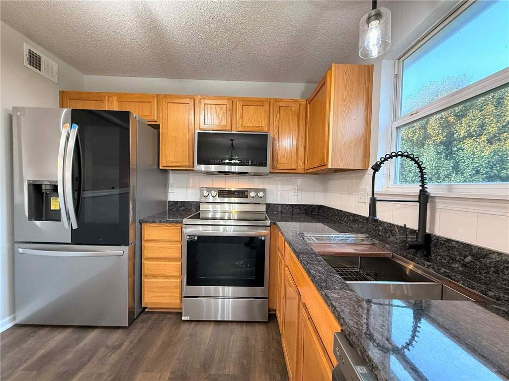 Wow like new! Move-in Ready with Extensive Updates! And updated PRICE! Motivated Seller! Place offer! This beautifully updated home is ready for you—no major projects needed! Exterior upgrades include a new roof, handrail, AC unit, deck stairs, patio door, and a fully fenced backyard. Inside, you’ll find new waterproof Pergo Hoboken Oak flooring in the entry and main living areas, along with Life proof waterproof flooring in the bathrooms and garage entry. The stairs feature stylish designer carpet, and the bedrooms have brand-new carpeting. Mechanical systems have also been thoroughly updated: all-new plumbing, a new hot water heater, new furnace and air conditioner and a radon mitigation system with a new fan. Both garage doors come with openers for added convenience. The bathrooms feature updated vanities, fixtures, countertops and flooring. In the kitchen, enjoy a brand-new LG appliance package with ThinQ technology, including a refrigerator, stove, microwave, dishwasher, and garbage disposal. The farmhouse sink comes equipped with a built-in dish drainer, vegetable strainer, cutting board, and a restaurant-style faucet. Steel Gray Granite countertops and backsplash. New daylight fixtures brighten the kitchen and dining area. Step outside to enjoy the fenced backyard—perfect for entertaining or relaxing. Don’t miss the chance to own this updated, low-maintenance home—it’s ready for you to move in and start enjoying from day one!