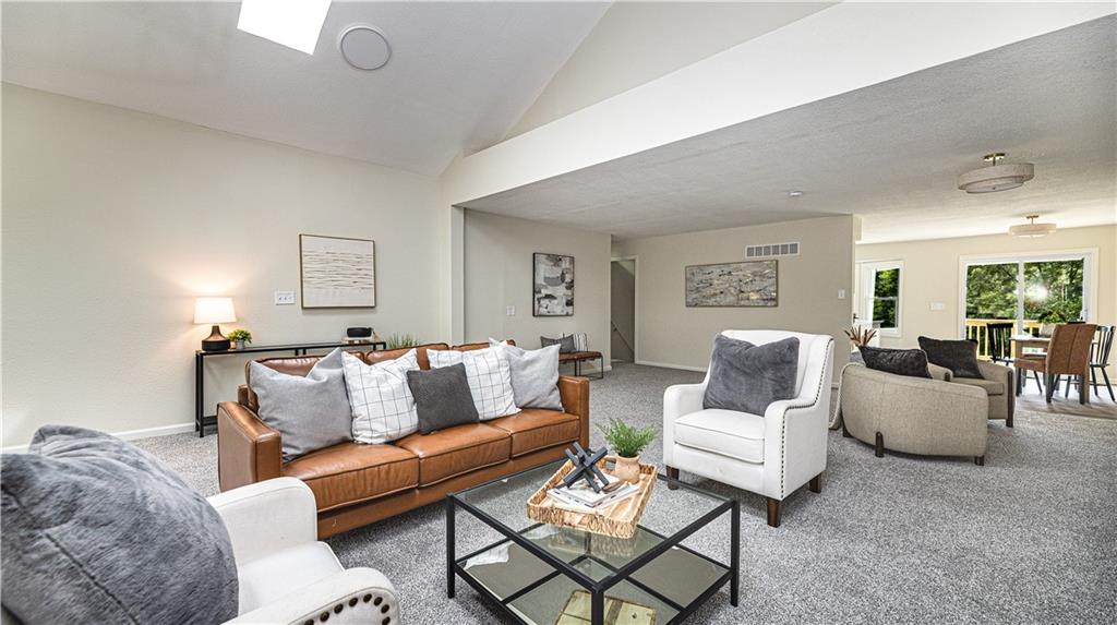 Completely renovated and move-in ready! This beautifully updated 3-bedroom, 3-bath home has been thoughtfully refreshed from top to bottom. Inside, you’ll find a brand-new kitchen with fresh cabinetry, updated bathrooms with modern vanities, stylish lighting, new flooring throughout, and fresh interior paint. Additional upgrades include two new garage doors, new interior doors, new sliding patio doors, a new deck, roof, and gutters—every detail has been carefully considered. The spacious primary suite offers plush carpeting, abundant natural light, and a modern light fixture for a touch of elegance. The private ensuite features fresh LVP flooring and a beautifully tiled walk-in shower, creating a peaceful retreat. Downstairs, the finished basement provides extra living space with brand-new LVP flooring, a cozy fireplace, and a full bathroom complete with matching LVP and a walk-in shower—ideal for guests or entertaining. Outside, enjoy the best of country living with a large 50x30 metal barn on a concrete slab and a serene, stocked pond perfect for quiet evenings or weekend fun. Raised Ranch on 2.76 acres.... what more could you asked for. Come view this beautiful, peaceful, country paradise!