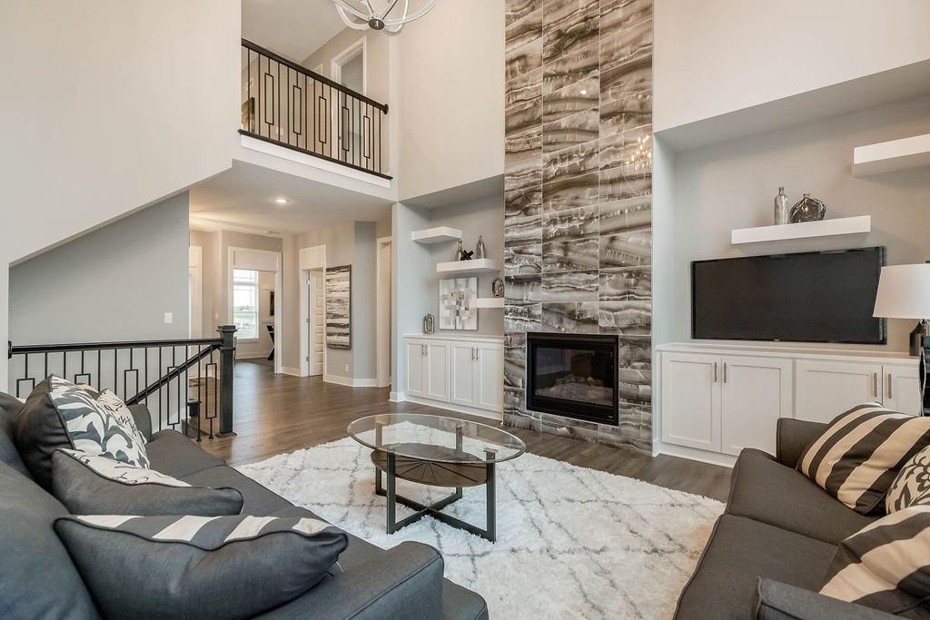 The Brooklyn by New Mark Homes is a 1.5-story walkout residence located in Cadence—a thoughtfully designed, master-planned community by Hunt Midwest. With an estimated completion of January 2026, this 4-bedroom, 3.5-bathroom home offers over 2,800 square feet of elevated living, blending intentional design with everyday functionality. From the moment you arrive, the dimensional front elevation makes a striking impression. Inside, you'll find a spacious, open-concept layout featuring custom-built cabinetry, quartz countertops, a walk-in pantry, and an oversized island—ideal for daily routines and effortless entertaining. The kitchen flows seamlessly into the great room, where a floor-to-ceiling tiled fireplace serves as a stunning focal point. A walkout deck extends your living space outdoors—perfect for relaxed evenings or weekend gatherings. Upgraded trim and designer-selected finishes throughout the home add depth, detail, and polish to every space. The main-level primary suite offers a quiet retreat with a spa-inspired bathroom, freestanding soaker tub, and dual vanities. There's an office on the main floor for added convenience. Upstairs, a loft anchors three additional bedrooms—each with bath access—offering privacy and versatility for family or guests. Cadence residents enjoy access to a range of neighborhood amenities, including a community pool, winding walking trails, and nearby Platte Purchase Park. Located in the award-winning North Kansas City School District and within Staley High School boundaries, this home delivers an ideal combination of style, location, and livability. Taxes & square footage are approximate.