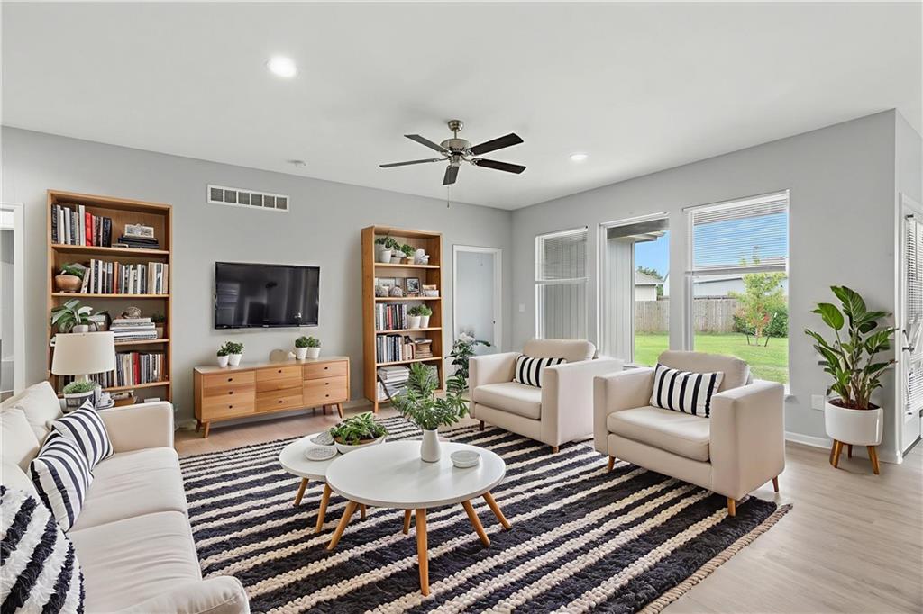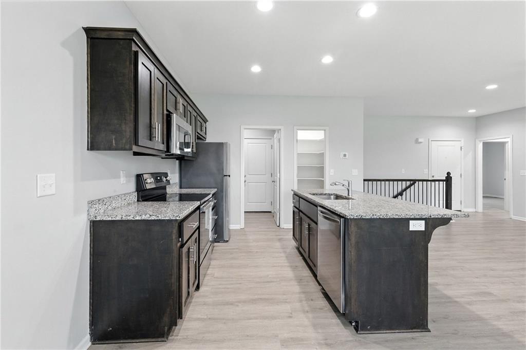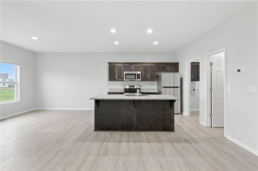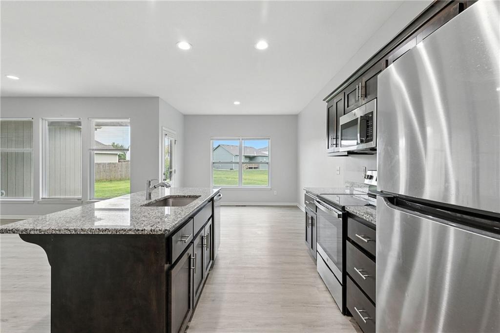 Beautiful single-story home with a finished full basement, offering 4 bedrooms and 2.5 bathrooms. The open floor plan includes a stylish kitchen with granite counters, stainless steel appliances, a center island, and a cozy breakfast area. Enjoy accent lighting throughout, a spacious primary suite with a double vanity and generous closet, and a dedicated laundry room with built-in cabinets. Relax on the back porch and take advantage of the attached 2-car garage. Schedule a showing today!