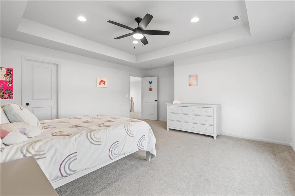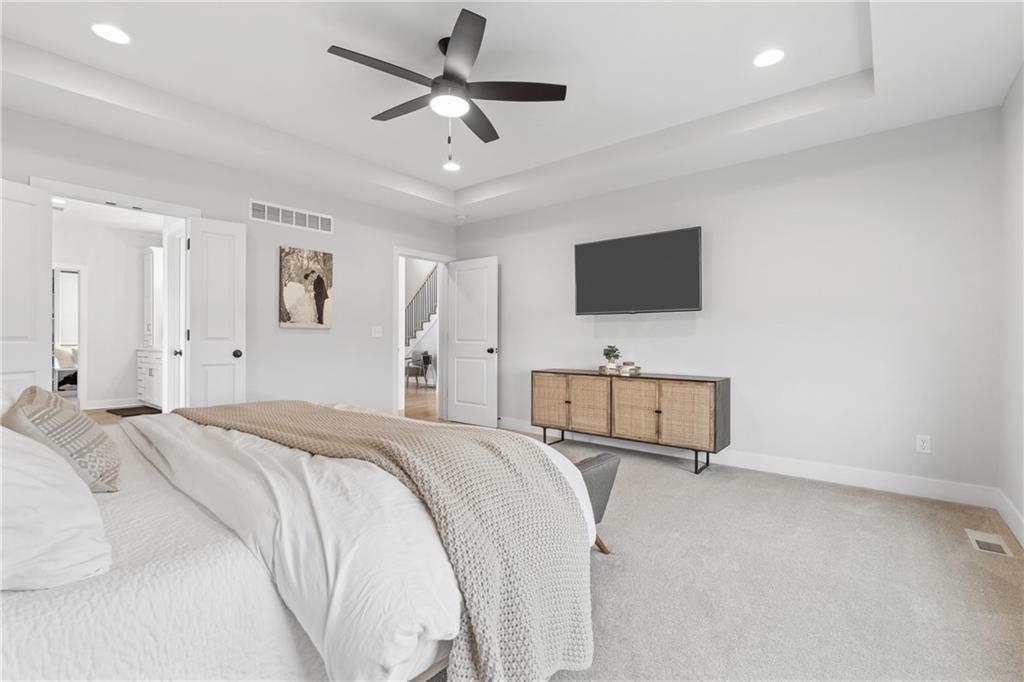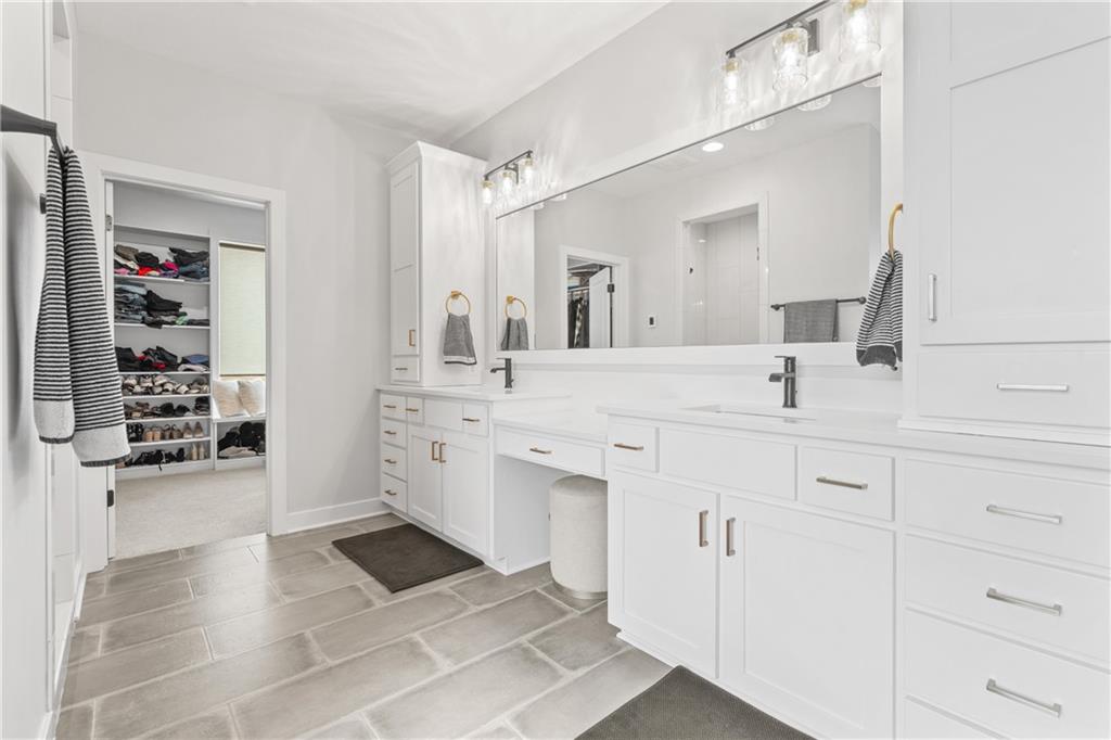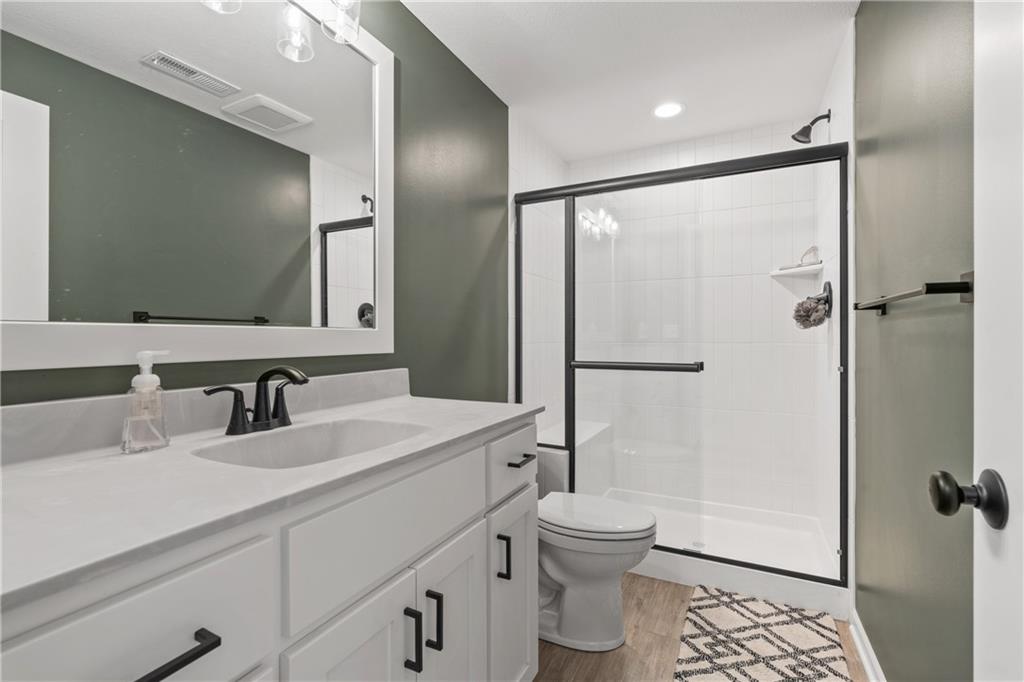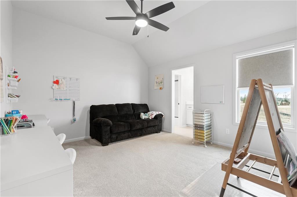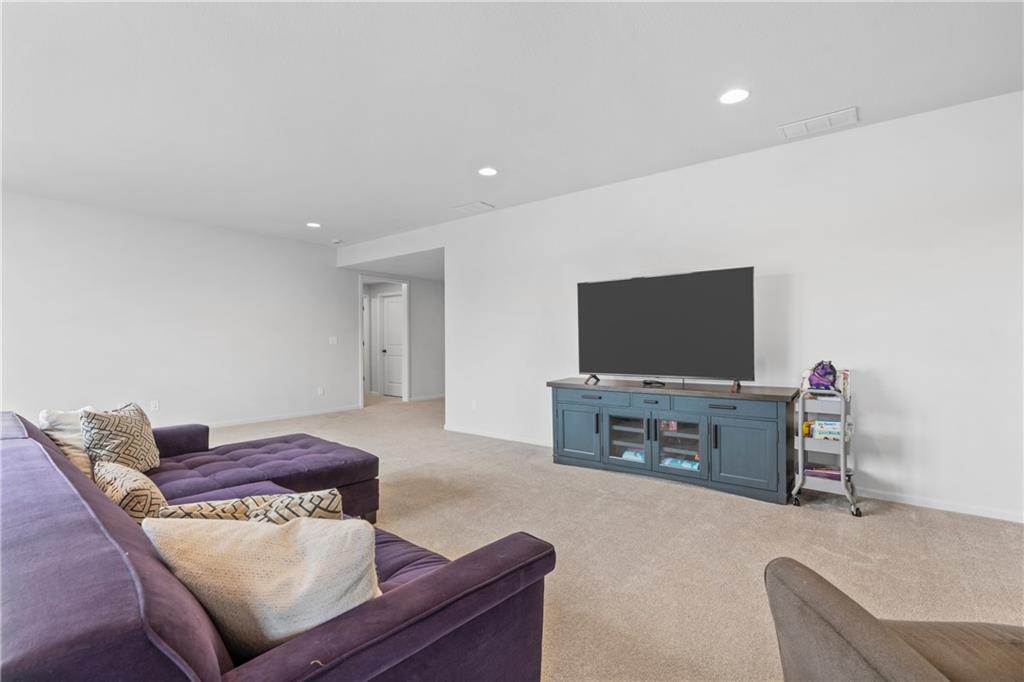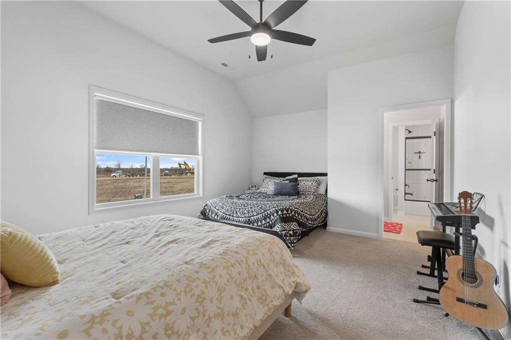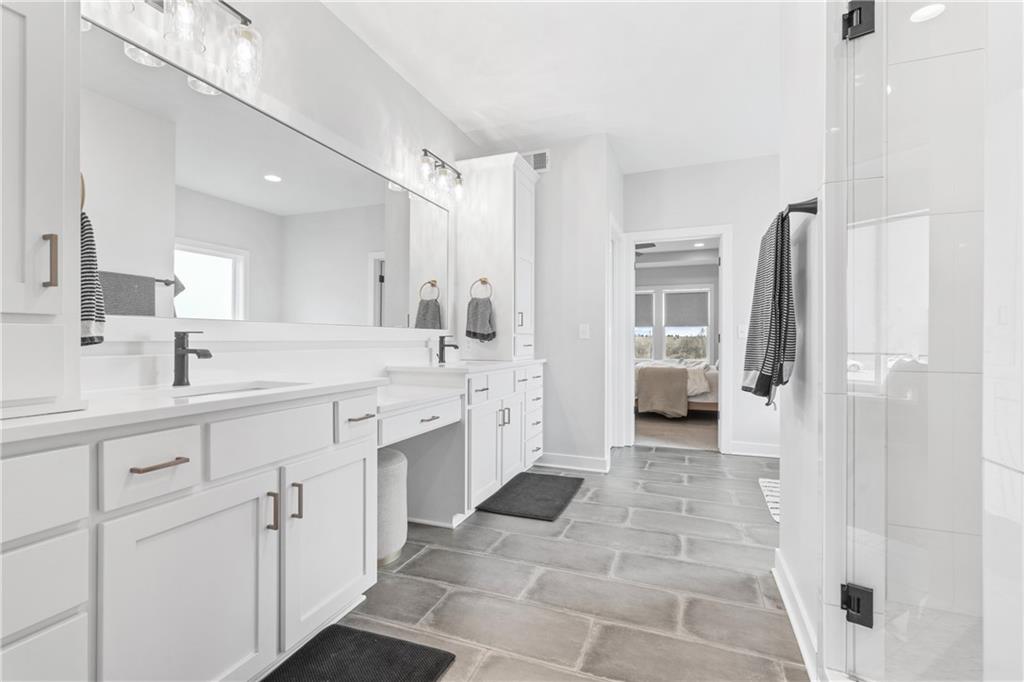 No detail spared in this stunning, like-new 1.5-story home nestled at the end of a quiet cul-de-sac. As you enter, a curved staircase greets you, leading into the Great Room that’s designed to captivate with its vaulted ceilings, floor to ceiling windows and a cozy fireplace with surrounding built-ins. Every detail has been meticulously crafted with premium upgrades including hardwood floors, dual HVAC systems, a tankless water heater and room expansions including the kitchen, deck, garage, primary suite and four second level bedrooms. The chef-inspired kitchen features high-end cabinetry, top-tier stainless steel appliances, a walk-in pantry with a coffee bar, and an oversized kitchen island with ample breakfast bar seating. The luxurious primary suite offers heated floors, double vanities, a soaking tub, and a large walk-in closet with custom shelving that is conveniently connected to the laundry room. The finished walkout basement is the perfect entertainment hub with a large recreation room, a wet bar with floating shelves and space for a full-sized fridge, sixth bedroom and a full bath. Enjoy breathtaking sunsets overlooking the 15th hole of the Falcon Lakes golf course from the covered deck or large patio. Falcon Lakes offers a golf course, swimming pool, tennis and basketball courts, playground, trails, and BBQ pavilion. Conveniently located, just minutes from Legends Shopping Center, KansasSpeedway, Sporting KC, and downtown Kansas City. Schedule your showing today!