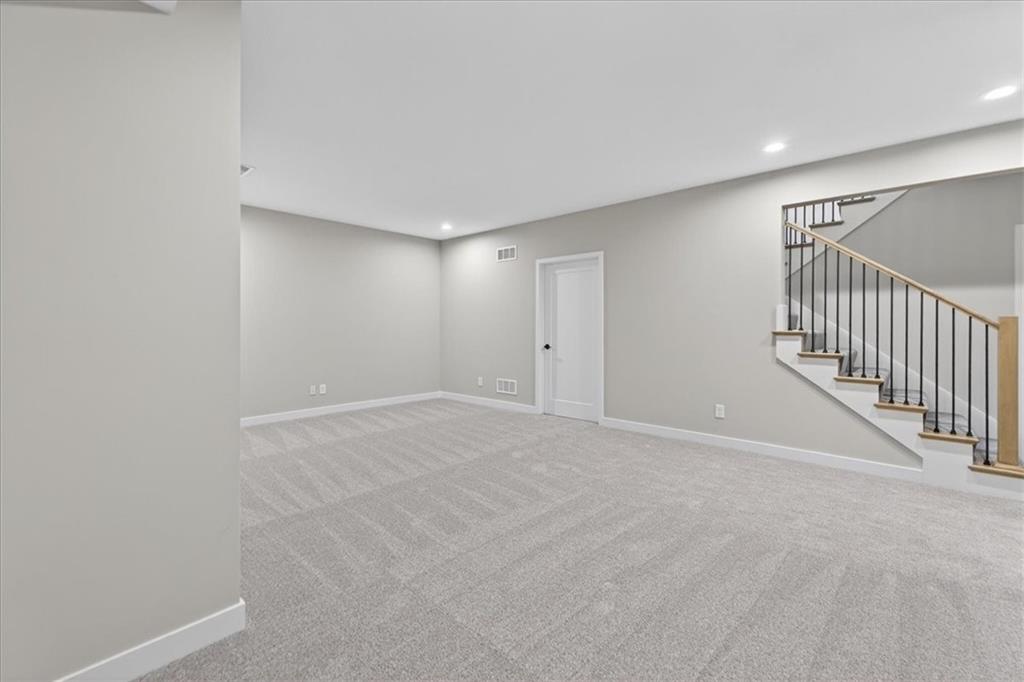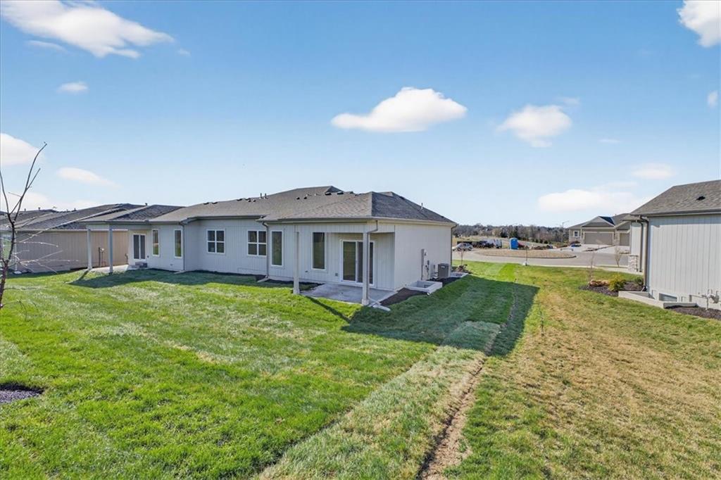 SLASH YOUR MONTHLY PAYMENT! Unlock $20,000 in combined builder and lender incentives to buy down your interest rate and save hundreds on your monthly mortgage! This $10,000 Lambie Homes incentive PLUS a $10,000 lender credit (available through 04/30) makes luxury living in Mize Hill more affordable than ever. The main level greets you with soaring ceilings and a modern "greige" color palette that feels incredibly bright and airy. The great room serves as a true centerpiece, anchored by a show-stopping floor-to-ceiling white sawtooth ledge stone fireplace with a 40" Allusion electric insert. For the home chef, the gourmet kitchen is a dream, featuring custom beveled shaker cabinetry, sparkling quartz countertops, and elegant under-cabinet lighting. Retreat to the main-level primary suite, complete with a massive walk-in closet that offers direct access to the laundry room for ultimate convenience. The finished lower level expands your living space significantly, featuring a large family room perfect for movie nights and two additional guest bedrooms. Enjoy the best of Lenexa with walking trails, a future community pool, and close proximity to Mize Lake, all while the HOA handles the lawn and snow. This spec home is finished, beautiful, and priced for an immediate sale!