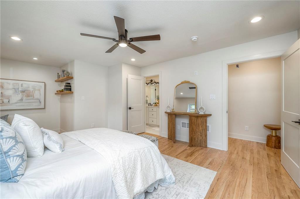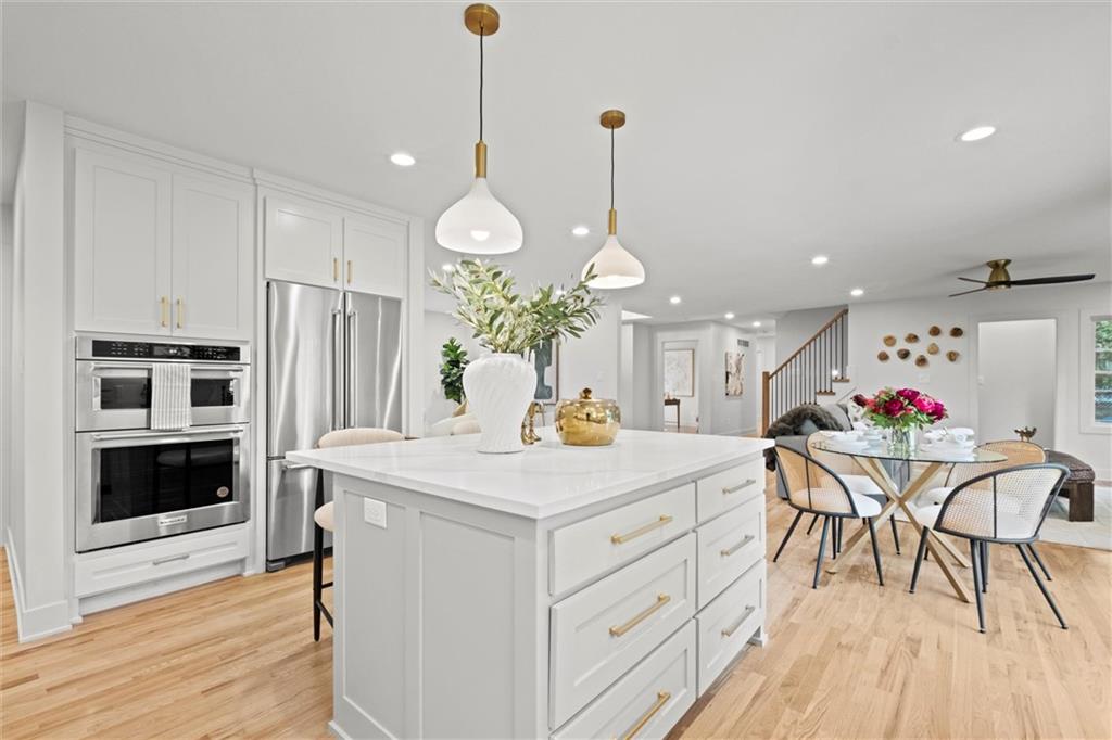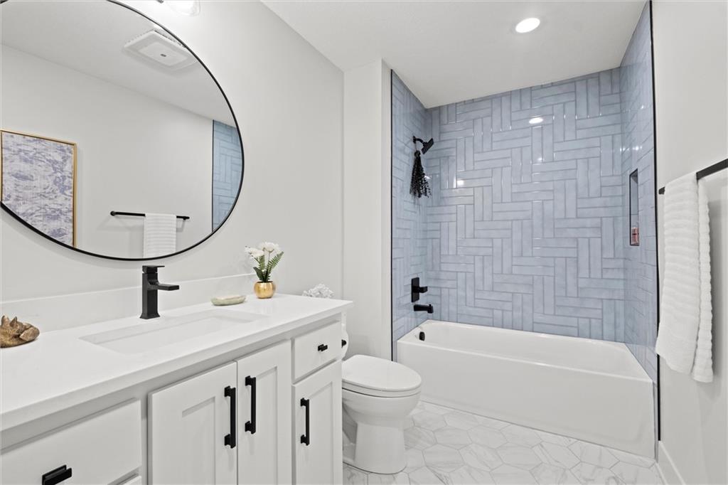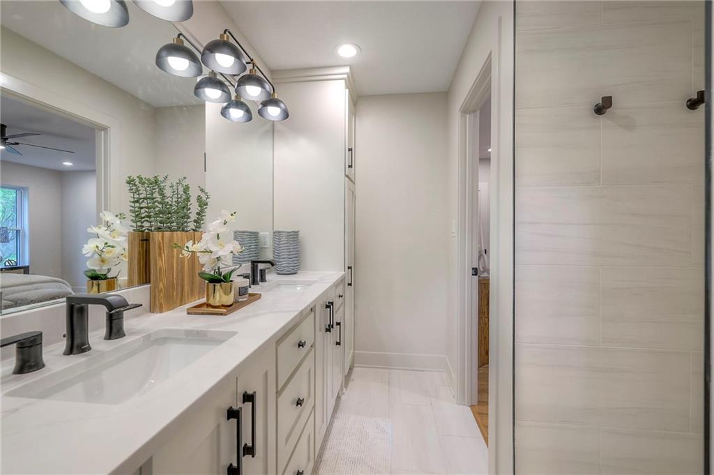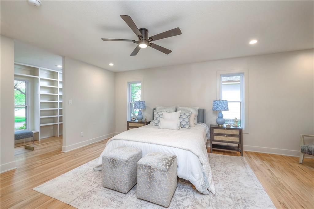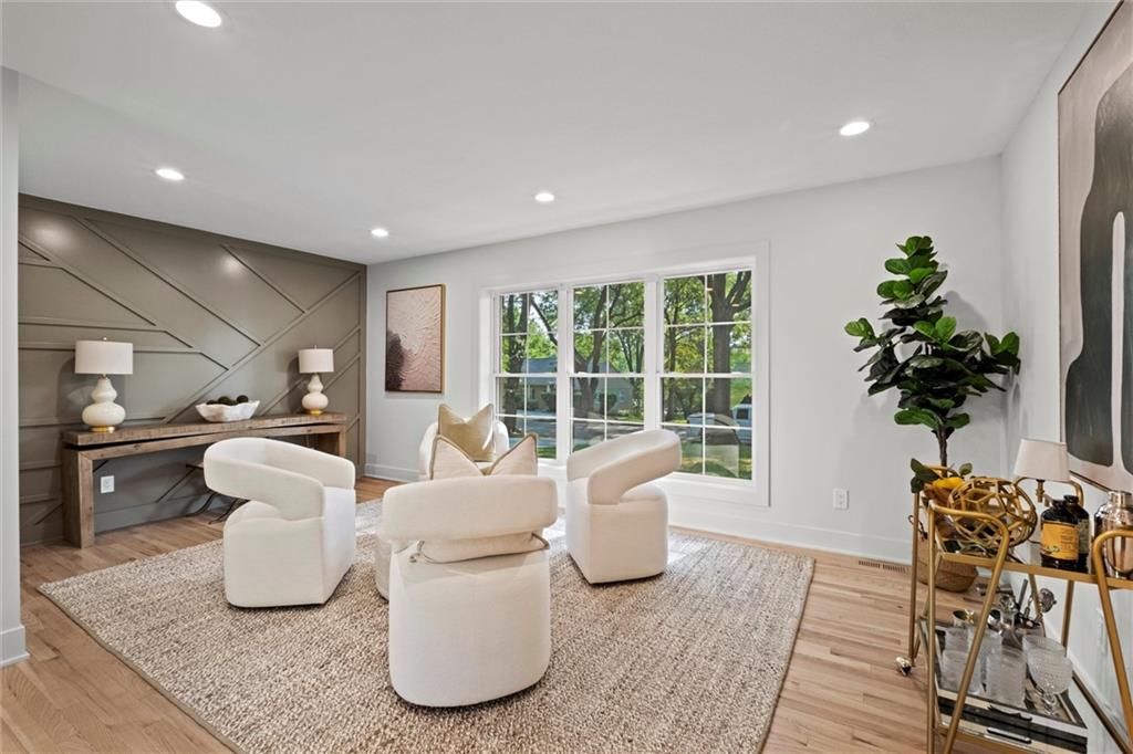 HOMES IN THIS NEIGHBORHOOD ARE SELLING FOR UP TO $325 A SQUARE FOOT. THIS IS $267 A SQUARE FOOT! Welcome to this quintessential Old Leawood sprawling 1.5 story home nestled on a beautiful lot in Leawood Estates. This brick and stucco home has been completely remodeled to perfection by combining modern luxury with timeless elegance. New concrete work, new sprinkler system, new garage doors, and new sod welcome you. As you enter the new front door, details abound. The expansive and flexible floor plan seamlessly connects the kitchen, dining and living areas. This stunning kitchen is loaded with high end appliances, under mount lighting, quartz, an island, accent lighting and the fridge stays. The home is outfitted with all new windows, doors and a slider. There is even the most beautiful butlers pantry tucked away, but sure to delight. The family room is grounded by shelving and cabinets flanking the shiplap and brick fireplace wall. The large formal living room/dining room is complete with an accent wall. There is a beautiful office on the main level along with the deluxe primary suite retreat. A huge walk in closet, sitting area and beautifully appointed bathroom with a walk in spa-like shower await. Ambient lighting and accent stair carpeting invite you upstairs to two adorable and huge secondary bedrooms and an oversized bathroom that is fun and fresh. The basement is a dream. There is plenty of room to watch TV, play games and entertain with multiple living spaces, closet storage space and a wet bar! There are two additional bedrooms with new egress windows and big closets, plus a full bathroom to finish off this floor plan. The sprawling backyard is treed, all new grass and a full sprinkler system.