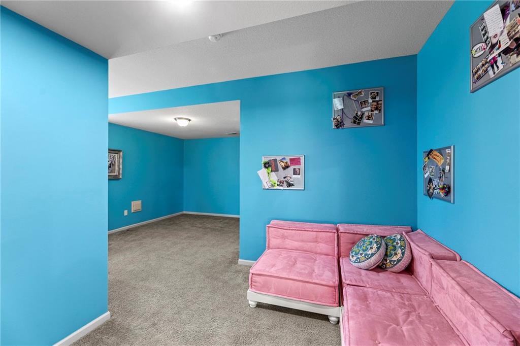 Gorgeous 4000+sf reverse 1.5 story with 3 fireplaces including hearth room off kitchen, great room and master bedroom! New screened in deck, finished walkout lower level with wetbar and 3 bedrooms. Kitchen features stainless appliances, large island, bar seating and granite counters! Fresh paint and new carpet in entire main level! Cul-de-sac location and De Soto school district! Neighborhood Pool too!