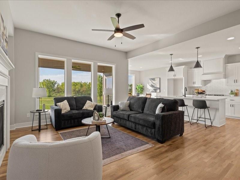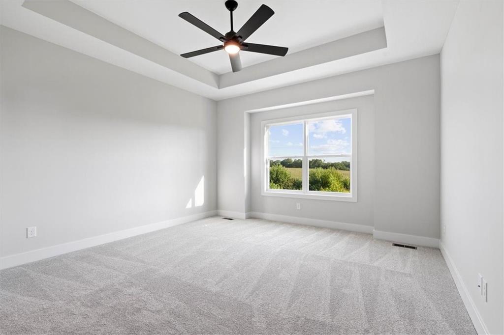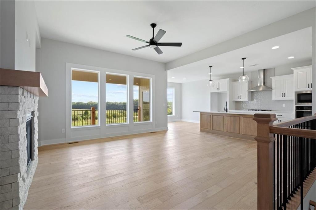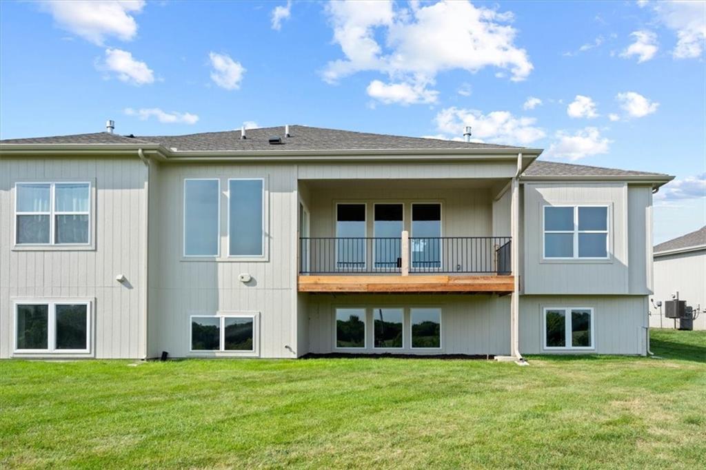 Highlands Lot 25L - The Kendyl by New Mark Homes. Enjoy GOLF COURSE LIVING and care free living in this luxury paired villa hom. HOME UNDER CONSTRUCTION. Estimated completion 1Q2026. Finished photos and tour are of a previous model. Beautiful open plan with primary suite located on the main level. Primary bath has tiled shower, dual vanities and generous 10 1/2' by 9' master closet with laundry connected! Home has 9' and 10' ceilings, an office, a covered patio, and a gas fireplace. Finished lower level includes a rec room, bedroom, and a full bath. HOA provides lawn and landscape maintenance, snow removal, and replacement of roof, gutters and paint as needed. Neighborhood pool, play area and basketball and pickleball/tennis courts included as well. Excellent schools, good highway access for easy commute to all parts of the city! 10 minutes to The Legends and 30 to the airport, downtown and Lawrence!