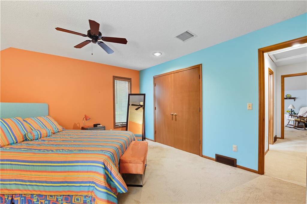 Welcome to coveted Quail Valley subdivision nestled in the heart of Overland Park close to shopping, restaurant and easy freeway access. Spacious home boasting 3300+ sq. ft. and on one of the largest cul-de-sac lots. Walk into the front door to the great room with soaring ceiling and a wall of windows exposing the sun room and private backyard. Hardwoods cover the kitchen and formal dinning room. Newer carpet on the main floor and stairways. The kitchen is a chef's dream with a totally renovated kitchen. The sun room along the entire back of the house provides extra space for entertaining and a beautiful bar. The first floor primary bedroom boasts a totally renovated bath with double vanity, his and her walk-in closets and space for a exercise area. Walk up the beautiful designer carpet to the second level to find two spacious bedrooms with an updated bath. The bath boasts a double vanity and a tiled shower/bath. The loft could be an extra family area or closed off for a fourth bedroom. The lower level is stubbed for a bath and waiting for your floor plans. The fenced in private backyard has an oversized deck with lighting that is great for outside entertaining. The home was built by Ambassador Homes, known for their quality and passive solar concept, see supplements.