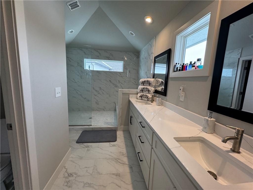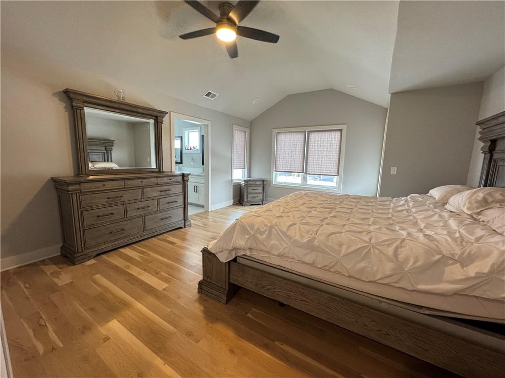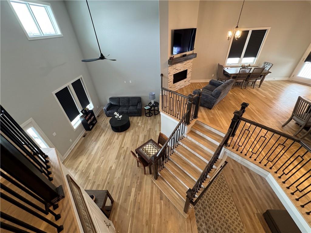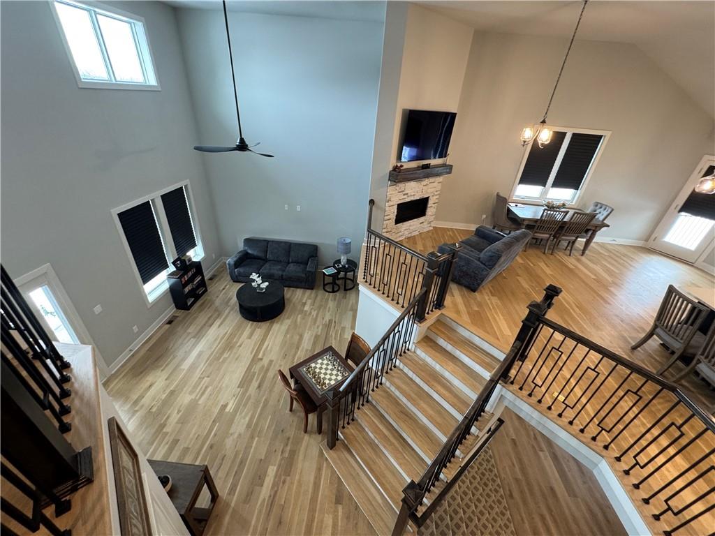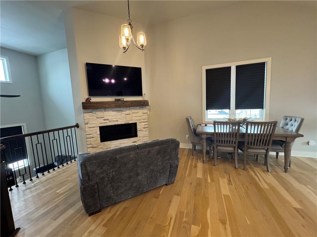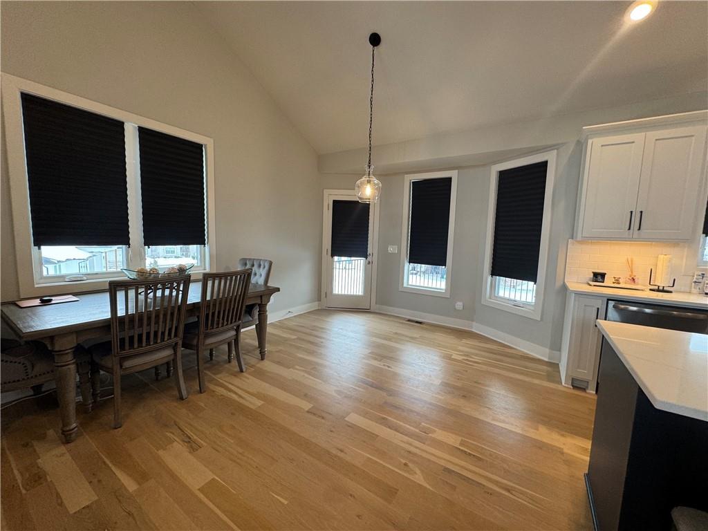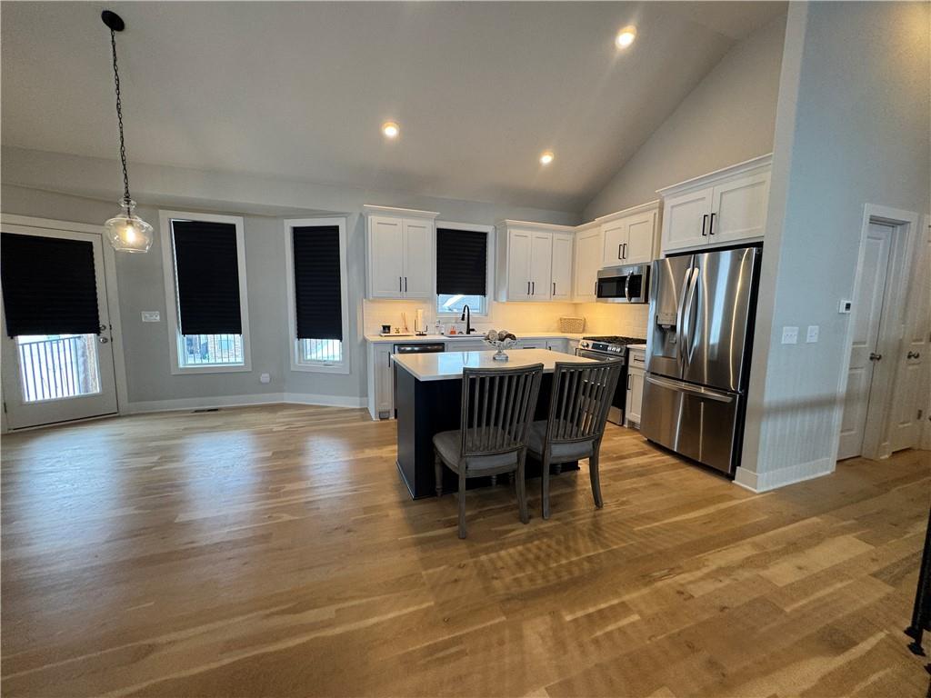 BEAUTIFUL TREED BACKYARD! VAULTED CEILINGS WITH OPEN FLOORPLAN..LIGHT AND BRIGHT WITH WALL OF WINDOWS. MODERN TWIST WITH THIS SPACIOUS FLOORPLAN. STEP UP INTO A PRIVATE PRIMARY SUITE WITH OWN FLOOR LEVEL BOASTING HUGE AMAZING CLOSET AND PRIVATE BATH WITH TILED WALK IN SHOWER, DBL VANITY. UNIQUE AND OPEN. COME CHECK IT OUT! HEARTH FIREPLACE OFF KITCHEN AND DINING AREA OVERLOOKING THE GREAT ROOM. ADDITIONAL 2ND F/P IN LOWER LEVEL WITH AMAZING WINDOWS WITH VIEW OF THE TREES! HURRY! DON'T MISS AN OPPORTUNITY TO OWN ACROSS FROM LAKE LENEXA. MOVE IN READY!