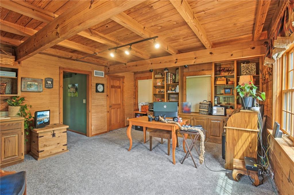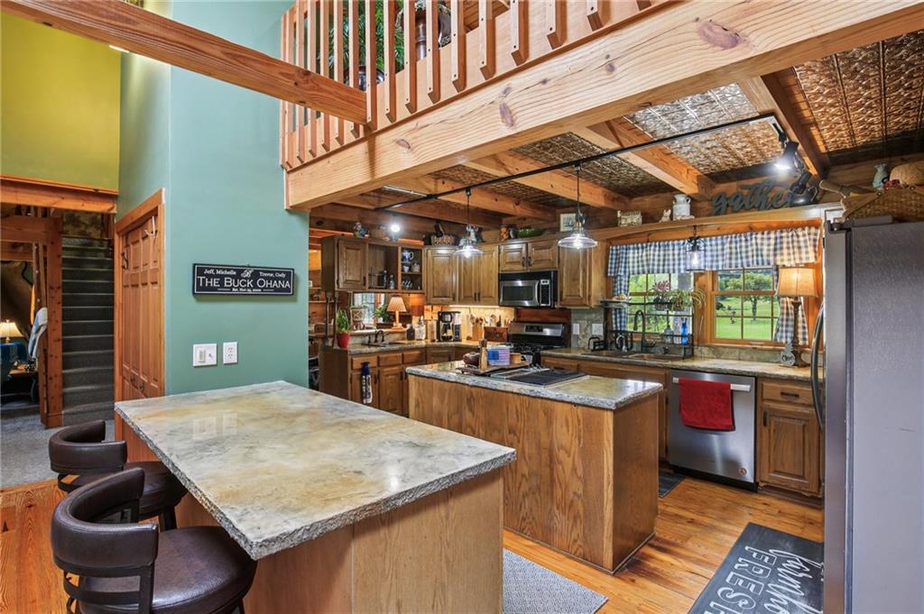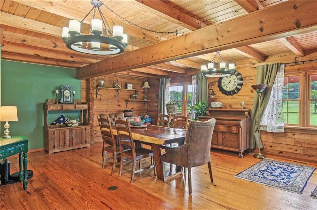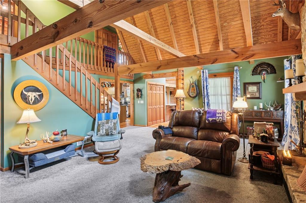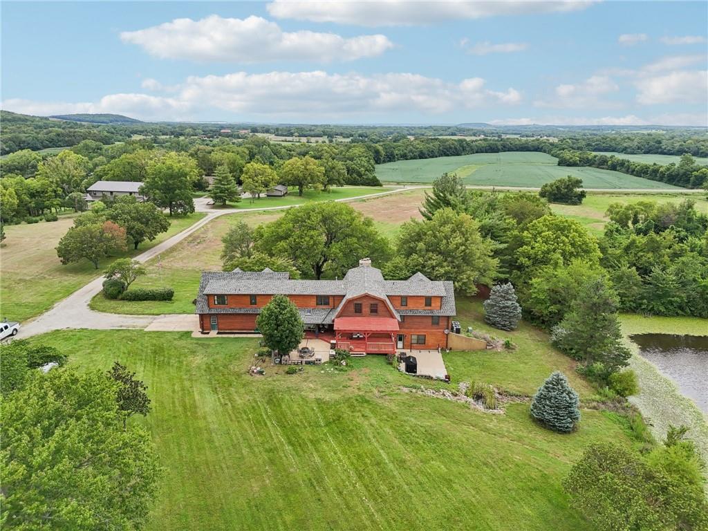 53-Acre Private Luxury Estate with Custom Log Home, Stocked Pond & Panoramic Views Step into a world where elegance meets nature on this unmatched 53-acre estate. Privately tucked away yet offering convenient access to nearby amenities, this property is more than a home—it’s a lifestyle, a retreat, and an investment in tranquility. From the moment you enter the winding driveway and catch sight of the sprawling log home framed by rolling hills and mature trees, you’ll know you’ve found something rare. The centerpiece of this estate is a custom-built log home that blends rustic charm with refined sophistication. Inside, 5 spacious bedrooms and 5 full bathrooms provide comfort and privacy for family and guests alike. Vaulted ceilings, rich wood beams, and expansive windows frame breathtaking views in every direction, bringing the outdoors in. The walk-out lower level expands your living and entertaining space with a full second kitchen, a handcrafted bar, a private guest suite. Outdoors, you’ll find your own personal sanctuary. A shimmering private 3 acre pond—complete with dock and stocked for fishing—sits at the center of the landscape, inviting you to start your mornings with coffee by the water or end your evenings watching the sun dance across the surface. Miles of open and wooded terrain offer endless opportunities for walking, horseback riding, or ATV adventures. For the hobbyist, entrepreneur, or collector, two massive connected shops—one 60x42 ft and the other 50x24 ft—provide all the space you need for equipment, projects, or a prized vehicle collection. Both are on concrete and easily accessible from the home. Every inch of this property was designed with intention—balancing beauty, function, and privacy. Whether you dream of hosting unforgettable gatherings, creating a working ranch, or simply enjoying the peace of nature. This is more than a home. It’s where luxury meets freedom, and where every day feels like a getaway.