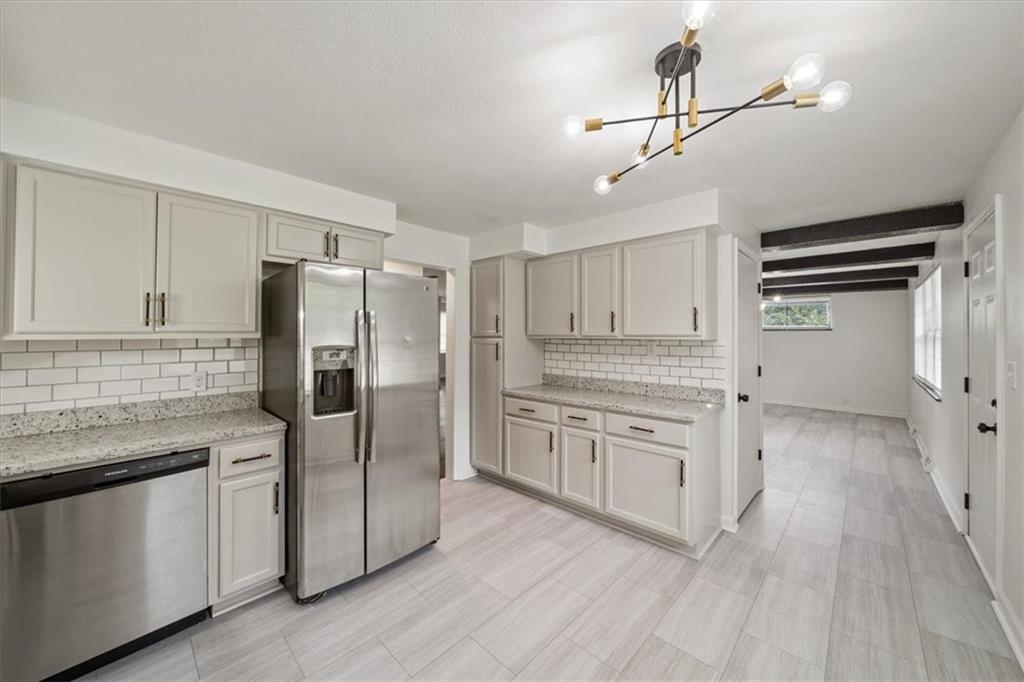 This classic brick raised ranch home offers timeless charm and practical living spaces in a convenient location. Featuring 3 bedrooms and 1 full bathroom on the main level, the home is thoughtfully laid out for comfortable everyday living. The inviting oversized living room welcomes you with natural light, creating a warm space to relax or entertain. The kitchen comes with stainless steel appliances and new granite countertops. Adjacent to the kitchen, the formal dining room provides a lovely spot for meals and gatherings, highlighted by a striking fireplace that adds character and a cozy ambiance. The unfinished basement presents plenty of potential for customization to suit your needs—whether you envision a workshop, hobby area, or additional living space. It also includes a second full bathroom, ready for use or add your own personal touch to it. Enjoy the convenience of the tandem 2-car garage, offering extended space for tools, equipment, or recreational gear. Perched on a hill, this property offers a unique vantage point and a sense of privacy, along with an attractive view of the surrounding area. The sturdy brick exterior provides low-maintenance durability, and the layout makes the home as practical as it is charming. Whether you’re looking for a place to call home or an investment with rental potential, this raised ranch delivers classic appeal, flexible space, and an excellent setting.