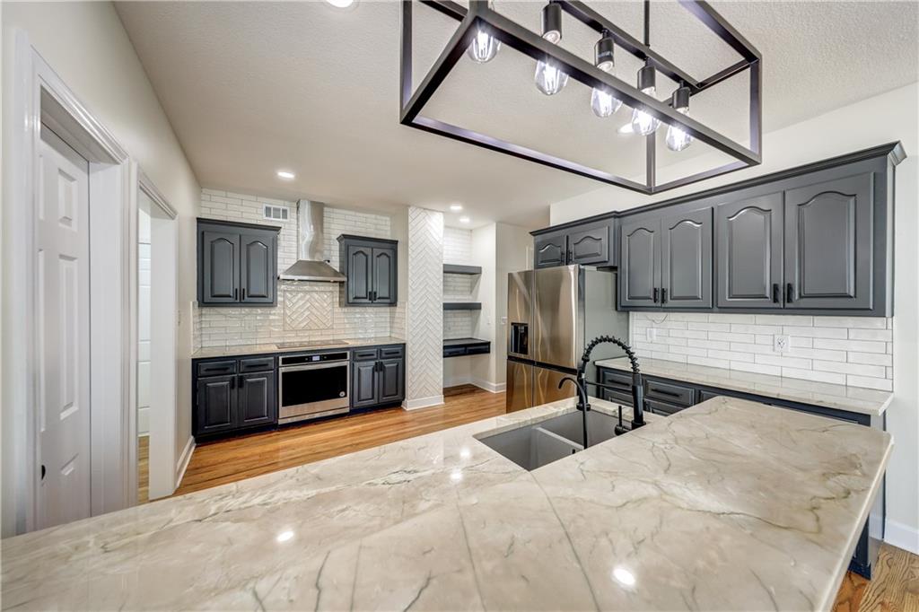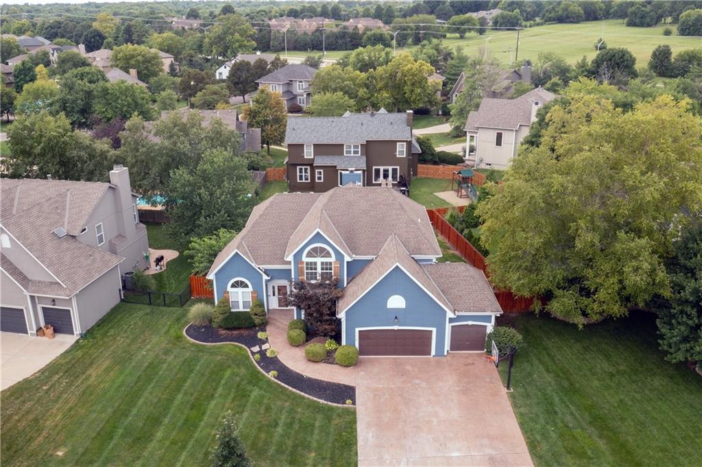 ? Stunning Home Upgrades – Inside & Out? The House is blocks away from Blue Valley Schools. Buyers have the right for their children to use Blue Valley Schools, if available, and are guaranteed the same options as Olathe Schools, including the ability to choose other Olathe Schools if available. This home has been thoughtfully updated from top to bottom, blending modern style with everyday comfort. Nearly every space has been refreshed with high-end finishes and smart upgrades. The basement shines with sleek epoxy floors, fresh paint, new tile in the game room and bathroom, upgraded vanity, LVP flooring in the fifth bedroom, and new carpet on stairs. A new sump pump system with battery backup adds peace of mind. The main level has been freshly painted throughout with refinished hardwoods updated just four years ago. This floor features a quartz kitchen with backsplash, coffee bar shelves, new vanities, toilets, light fixtures, LED can lighting, and an updated fireplace. Outdoor living is elevated with a new fire pit and WiFi-enabled smart sprinkler system. Upstairs offers new paint, LVP flooring, can lighting, fixtures, a dramatic chandelier, and a stairway accent wall. Every detail has been designed for a modern, cohesive feel.The luxurious master retreat boasts a custom built-in entertainment center with electric fireplace, custom closets with dresser, and a fully remodeled spa like bathroom with floating vanity, LED mirror, oversized rainfall shower, and premium finishes throughout. Bedrooms 1 & 2: Full Jack & Jill remodel with tile, vanities, faucets, bathtub, toilets, and fixtures.Bedroom 3: Bathroom refresh with tile, faucets, fixtures, shower head, and vanity paint. Even the laundry room shines with new tile, updated plumbing, floating butcher block shelves and dimmable lighting. Finished with new tile, plumbing, floating butcher-block shelves, and dimmable lighting.