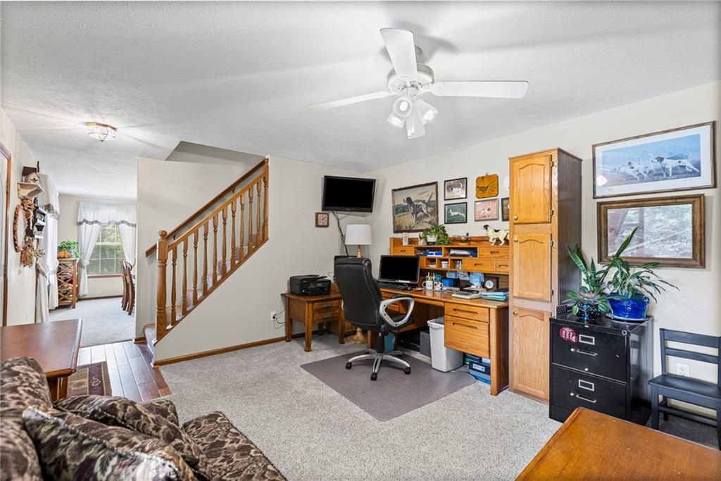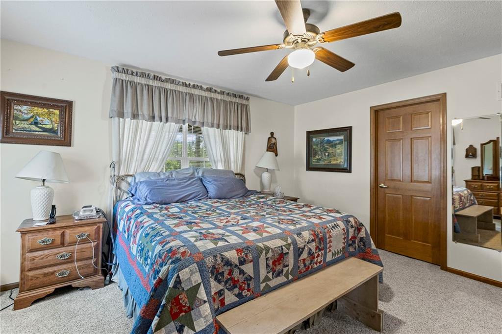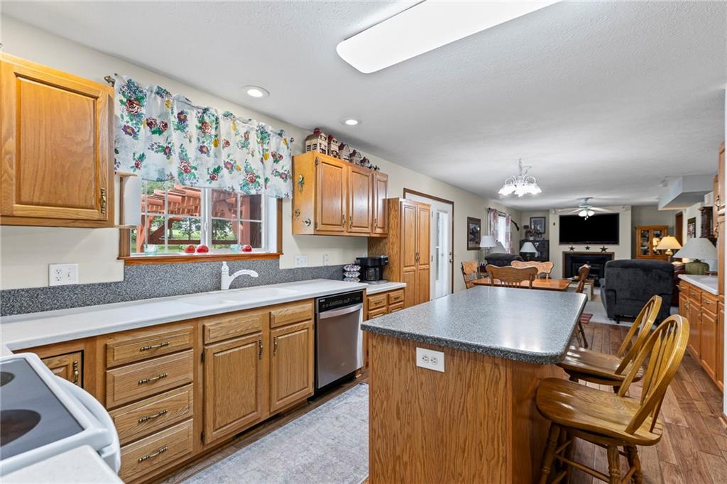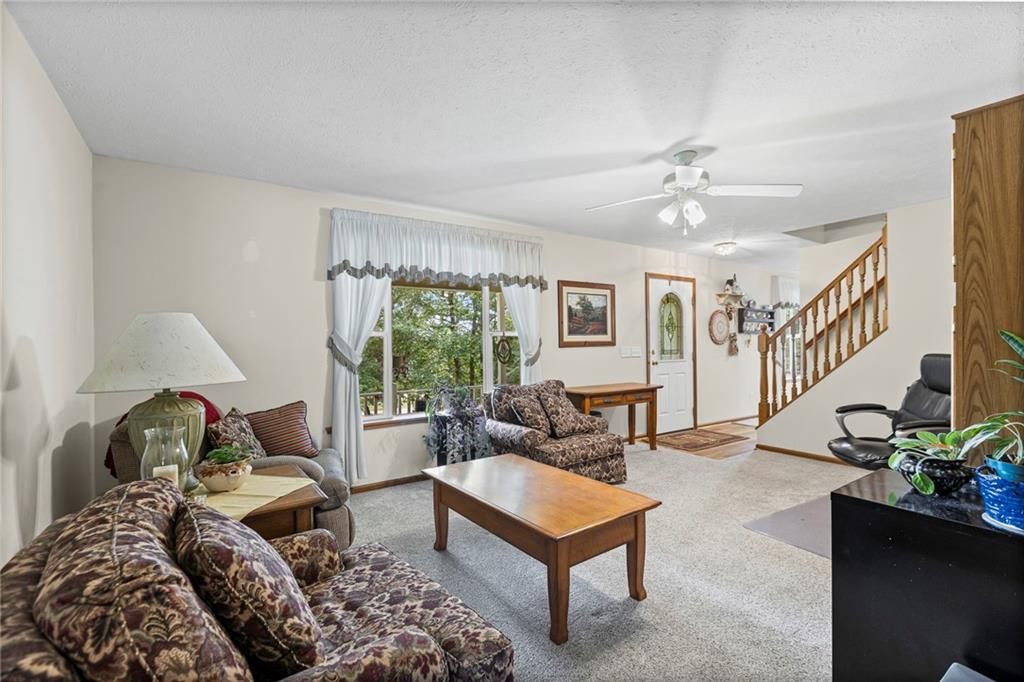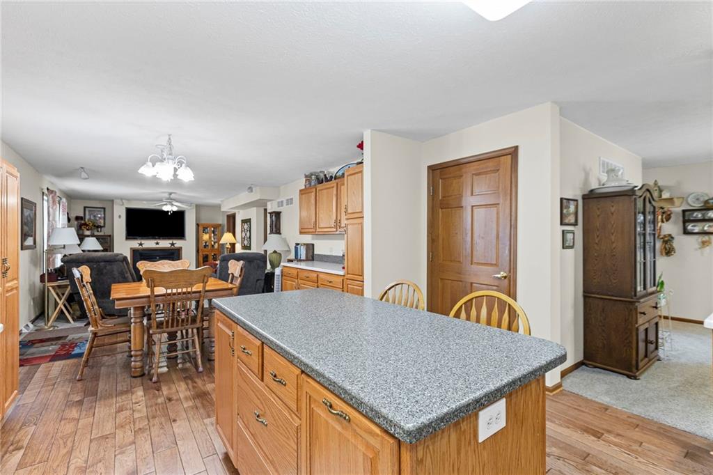 An inviting 8X60 front porch welcomes you to this beautiful three-bedroom, two-and-a-half-bath home, nestled on a nearly half-acre lot in the private and highly sought-after Hickory Valley Subdivision. The main level is perfect for entertaining. The huge eat-in kitchen is a chef’s delight, with abundant cabinets, Corian countertops, a large island, two pantries with pull-out drawers, a built-in double trash can cabinet, and beautiful hardwood floors. The kitchen seamlessly flows into the great room, which features a cozy gas fireplace. A formal dining room and a second living area provide plenty of space for gatherings. The spacious primary bedroom ensuite offers a luxurious retreat, complete with double sinks, a soaking tub, and a separate shower. The second floor includes two additional bedrooms, a full bathroom, and a third living area that can easily be transformed into a family room, office, or rec room to suit your needs. A full basement awaits your personal touch, ready to be finished and customized. The large, tree-filled backyard is an outdoor oasis, complete with a patio, a pergola, and a shed. This home is located just 30 minutes south of Olathe, making it an ideal family home. With so much to offer, it won't be on the market for long!