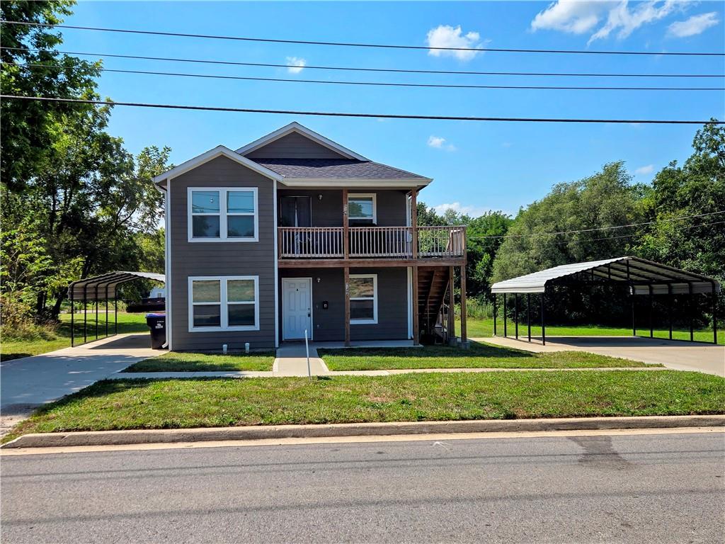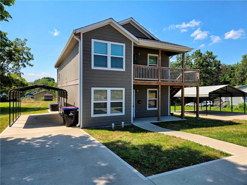 A rare opportunity to own a nearly new duplex with an income-generating upper unit already rented! This spacious and thoughtfully designed property is just waiting for you. Step inside to discover an inviting open-concept living area where the kitchen, dining, and living rooms flow together seamlessly, creating the perfect space for entertaining. The kitchen is a delight, boasting elegant granite countertops and a stylish high-rise faucet. You'll find generously sized bedrooms with ample closet space in both units, providing plenty of room to unwind and store your belongings. For added convenience, each unit includes a dedicated utility room with washer and dryer hookups. Enjoy the comfort and peace of mind that comes with superior insulation. The upper unit's attic is packed with R-49 cellulose insulation, while a thick R-30 layer sits between the apartments, ensuring a quiet and energy-efficient living environment for everyone. Spend your mornings or evenings relaxing on the charming 5' x 14' covered porches or parking your vehicles under the convenient carports. This isn't just a duplex; it's a future waiting to be built! The expansive, extra-large lot offers an incredible opportunity to construct another duplex or a single-family home (As always, check with the city P&Z for any plans). Imagine the possibilities and the potential for increased value and income. Don't miss your chance to own a truly unique property with so much to offer!