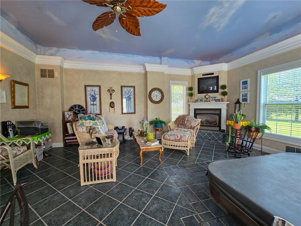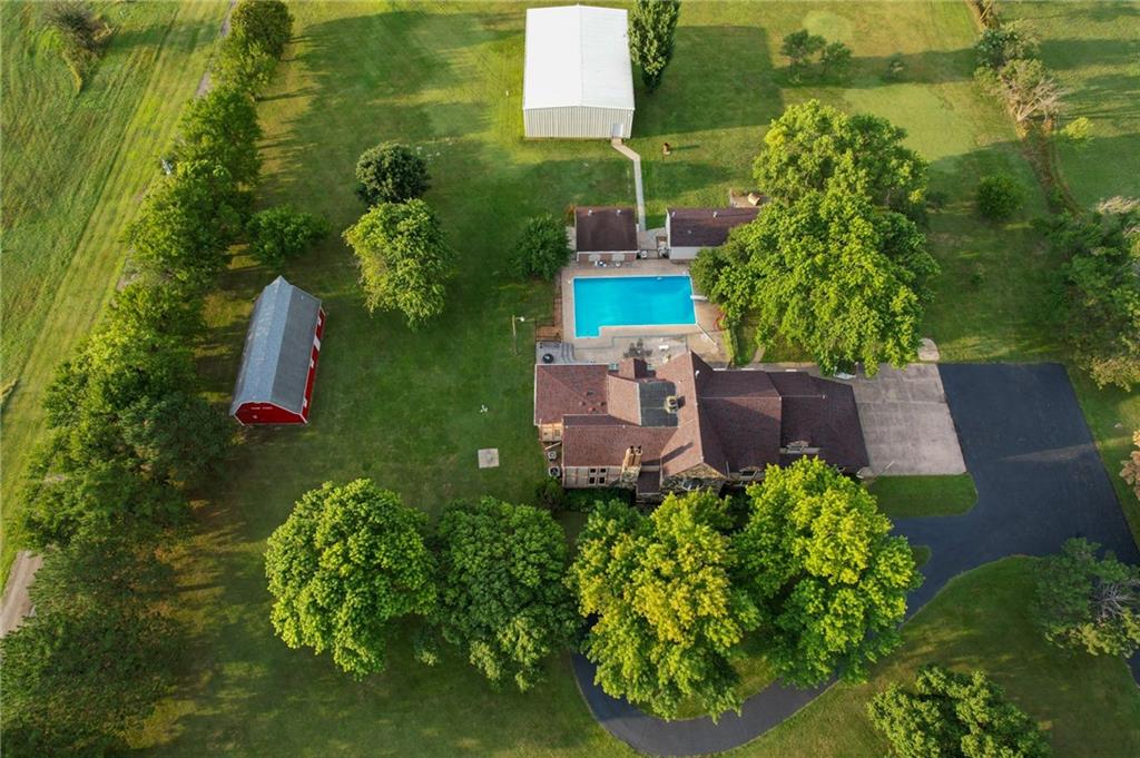 Here’s an opportunity to own a well-maintained property in Morris County that has been lived in as the sellers’ “forever home.” Located just east of Herington on US Highway 56, this 11.49+/- acre tract combines a spacious residence, multiple functional outbuildings, and open ground currently in hay production. It is a must-see to appreciate all it has to offer. The home, built in 1979 by the sellers, includes 4 bedrooms, 3.5 bathrooms, and 4,058 sq ft of finished living space. The 1,737 sq ft basement, expands the living and entertainment options and is accessible . The property includes a two-car attached garage and a paved driveway from direct blacktop frontage. In 2024, new roofs were installed on the house, the office outbuilding, and the pool house. An underground swimming pool sits behind the home, with a pool house providing convenient storage. Several outbuildings support a variety of uses: the original horse barn has been converted to a storage shed, a 60x40 fully insulated metal shed with carpeted floors and heat is currently set up as a gymnasium, and a detached outbuilding configured as an office with window AC and a furnace for year-round climate control. Inside, the home offers both a formal dining room and a dine-in kitchen. Portions of the interior feature vaulted ceilings, and finishes throughout reflect the care and upkeep the sellers have maintained over the years. A spiral staircase leads to a balcony area overlooking the large living room area below. The bedrooms are all on the second level with the master featuring an additional sitting room before leading into the master bath. The 11.49+/- acres are currently in hay production and could serve other uses depending on the buyer’s needs. Utilities are in place, and the location provides rural living with commuting options to Manhattan, Junction City, Fort Riley, Council Grove, and surrounding towns. Contact the listing agent today to schedule a showing.