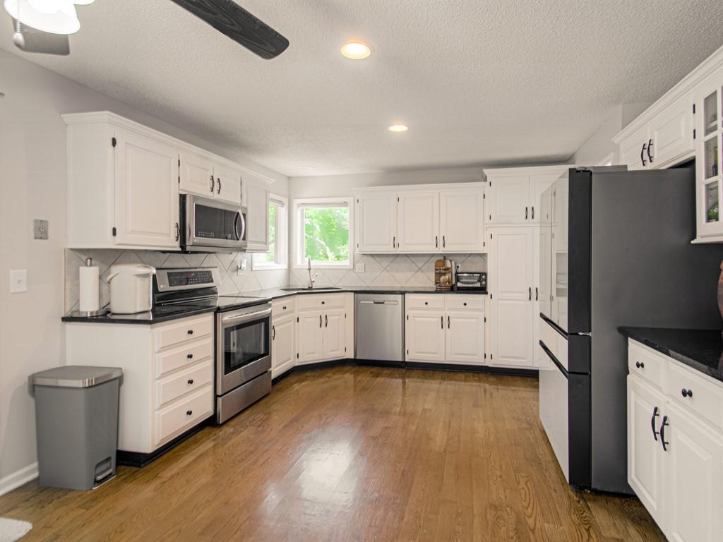 Welcome Home to Ravenwood Place! This beautifully maintained and move-in ready 2-story home offers 4 spacious bedrooms, 2.5 updated baths and many wonderful features. From the moment you arrive, you'll appreciate the charming curb appeal. Step inside to find a warm and inviting layout featuring a sunken family room, bright living room, formal dining area, and a large, recently updated kitchen. Upstairs, all four bedrooms are generously sized, including the primary suite with a soaker tub, walk-in shower, double vanity, and updated bathrooms!! The finished basement bonus room with French doors and a closet is perfect for a home office, guest room, or hobby space. This home is just a short distance to Ravenwood Elementary and only minutes from the neighborhood pool, parks, and shopping. Don’t miss your chance to own this loving updated home in a prime Olathe location!