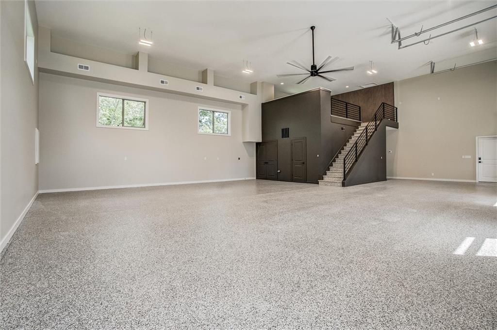This extraordinary property offers a rare combination of a comfortable two-bedroom, one-bath residence and an expansive garage and loft designed for the collector, professional, or entertainer. The exterior makes a bold statement with black metal siding, Aspen dimensional stone accents, and metal roofing, enhanced by a deluxe landscaping package and sprinkler system. The centerpiece is the garage, providing more than 1,500 square feet of finished space with three oversized 12’ x 12’ doors and jack shaft openers for maximum clearance. Built with the enthusiast in mind, it can easily accommodate ten or more cars without lifts. Designer epoxy floors, wrought iron railings, high-intensity LED lighting, and a massive industrial fan highlight the space. The main level includes a guest bath with custom steel sink and tile splash, a dry bar with dual-drawer refrigerator, a flex room with French doors, and structural concrete floors ready for lifts. Comfort is ensured with a separate heating and cooling system, humidifier, 50-gallon water heater, and even a 240V RV outlet. Overlooking it all, a dramatic entertainment loft provides the perfect vantage point for showcasing a collection. This inviting space includes a full bar with granite tops, sill sink, ice maker, dual refrigerators, custom cabinetry, and distinctive finishes, making it ideal for entertaining or relaxing. The living quarters feature two bedrooms with ceiling fans, a hall bath with granite and undermount sink, and a full kitchen with granite counters, tile backsplash, and stainless appliances. A cozy fireplace with a designer trim wall anchors the soundproofed living area, which includes laminate flooring, utility closet with washer/dryer connections, built-in storage, and its own dedicated HVAC system. In addition to a residence, this property is perfectly suited as a luxury garage and home office, offering a unique opportunity to live, work, and showcase in one remarkable space.