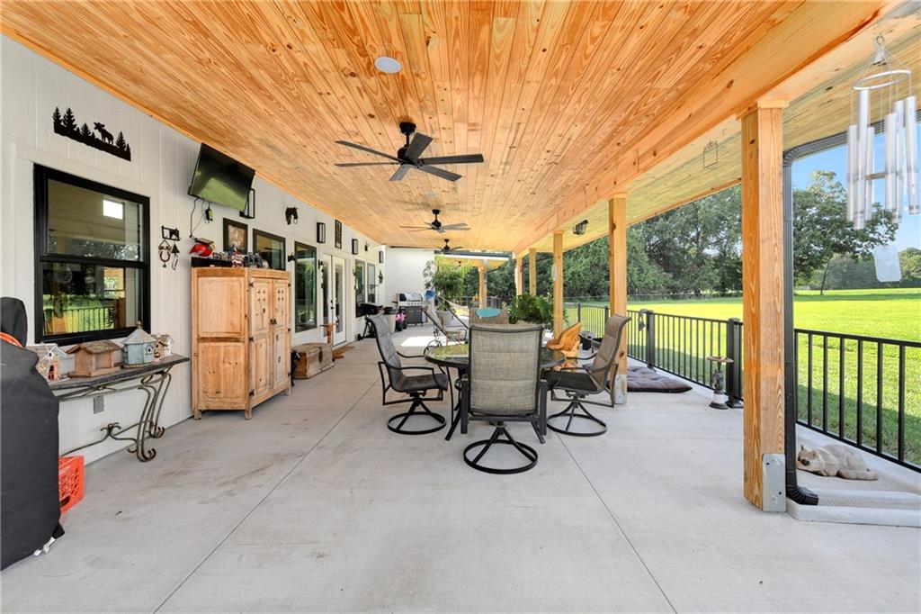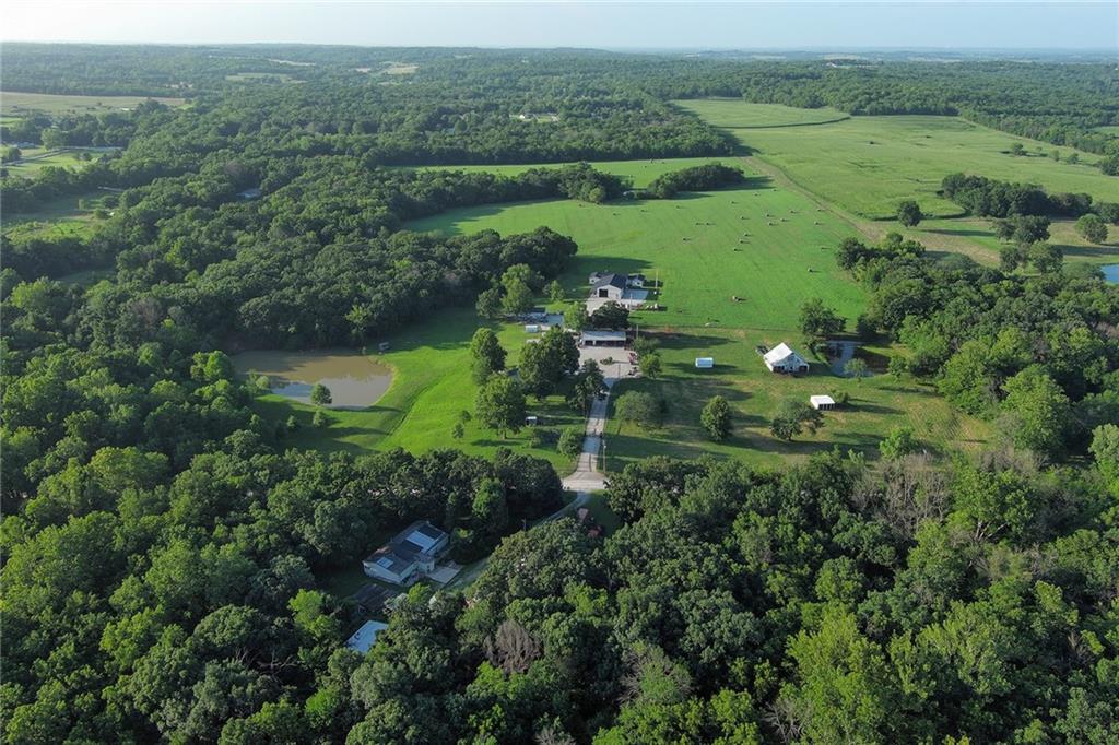 Welcome to a Beautiful Country Estate close to Powell Gardens. This 80 acre compound has it all! Timber for hunting, ponds for fishing, pasture for livestock, 3 houses and several other buildings. The Barndominium built in 2023 has 3,600 SF of finished space with soaring ceilings and floor to ceiling Fireplace in the Great Room and Chef's Kitchen, 2 Bedroom Suites with spacious bathrooms and walk-in closets, and Radiant heating in all the floors plus 4 mini-splits for your comfort. Enjoy the views from the Veranda! 2nd house- built in 2022- has 1,325 SF with 2 bedrooms and 2 bathrooms plus Open Concept Kitchen and Family room. It also has radiant floor heating plus mini-splits. 3rd house was originally built in 1982 – redone in 2019 and recently updated in 2024 – floors, kitchen and bathroom. It has 1,500 SF with 2 bedrooms and 1.5 baths. The back porch has been enclosed to be an All Season Room. The 2,800 SF Garage/Workshop built in 2023 has radiant heating in the concrete floor with 1 - 12' garage door, 2 - 10' garage doors and 1- 8' garage door with space to store an RV. There are barns, sheds, chicken coops and more. The 40+ acre pasture has an electric fence all around for livestock. There is a large Solar Panel system, a WIFI tower for excellent internet service, plus a security system. Public water, septic system for all houses, electric service and propane gas tanks provide all utilities. Come and enjoy the Good Life out in the Country - yet close to the City!