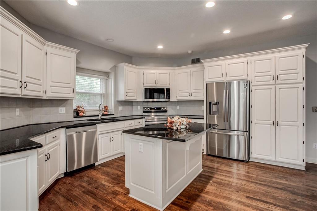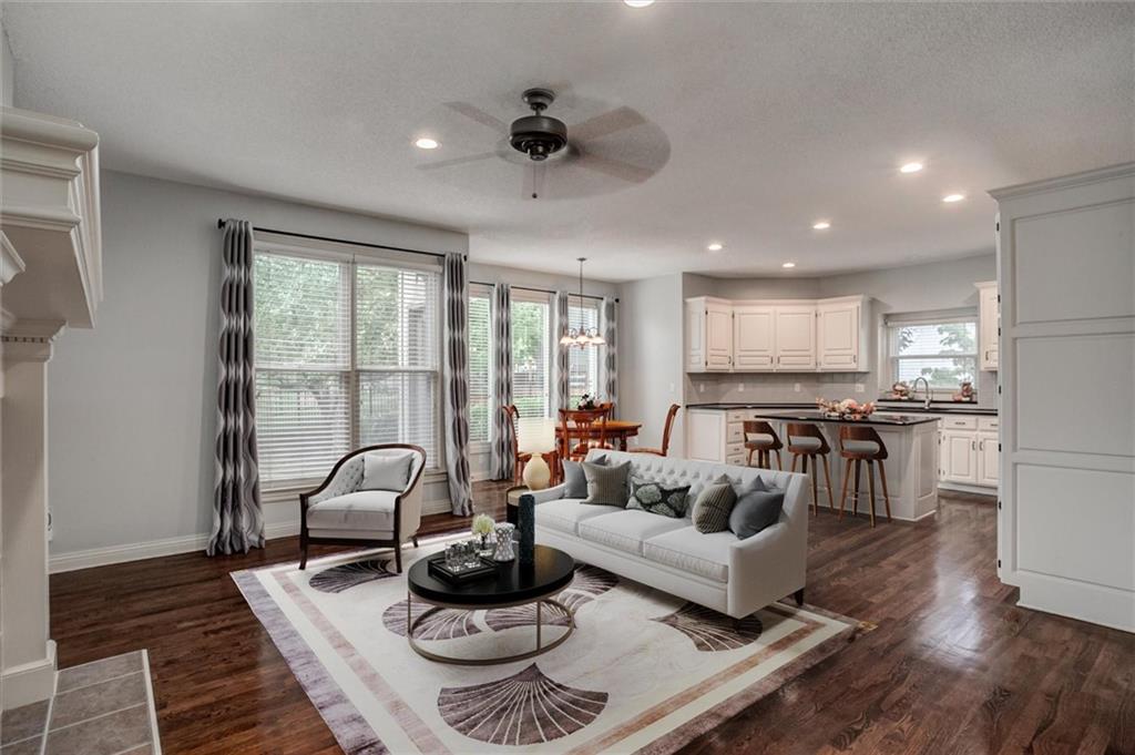 Welcome home to this beautifully maintained 2-story in the highly desirable Wilshire South neighborhood, within award-winning Blue Valley Schools! Step inside to a bright, open entry leading to a formal dining room—perfect for gatherings. A cozy gas fireplace connects the living room and hearth room, creating the ideal spot to relax. The kitchen shines with granite countertops, a large island, and newer stainless-steel appliances. Upstairs, the spacious primary suite offers dual walk-in closets and a serene retreat. The finished basement is ready for entertaining with a wet bar and half bath. Outside, enjoy a large fenced corner lot with a patio for summer evenings. A 3-car garage with built-in shelving and workshop space adds both convenience and function. Just around the corner, the neighborhood pool awaits! Plus, this home comes pre-inspected and includes a one-year AB May home warranty provided by the seller for peace of mind.