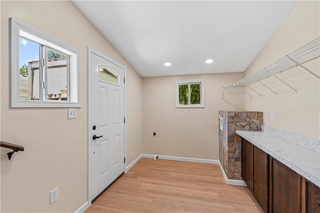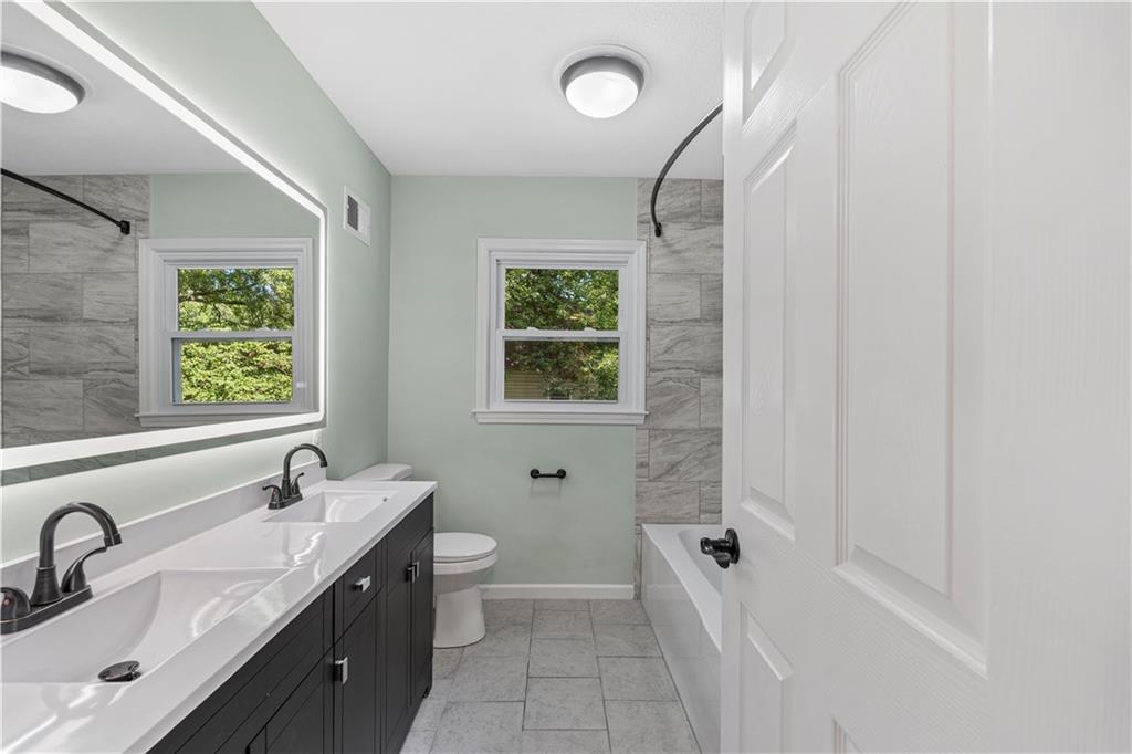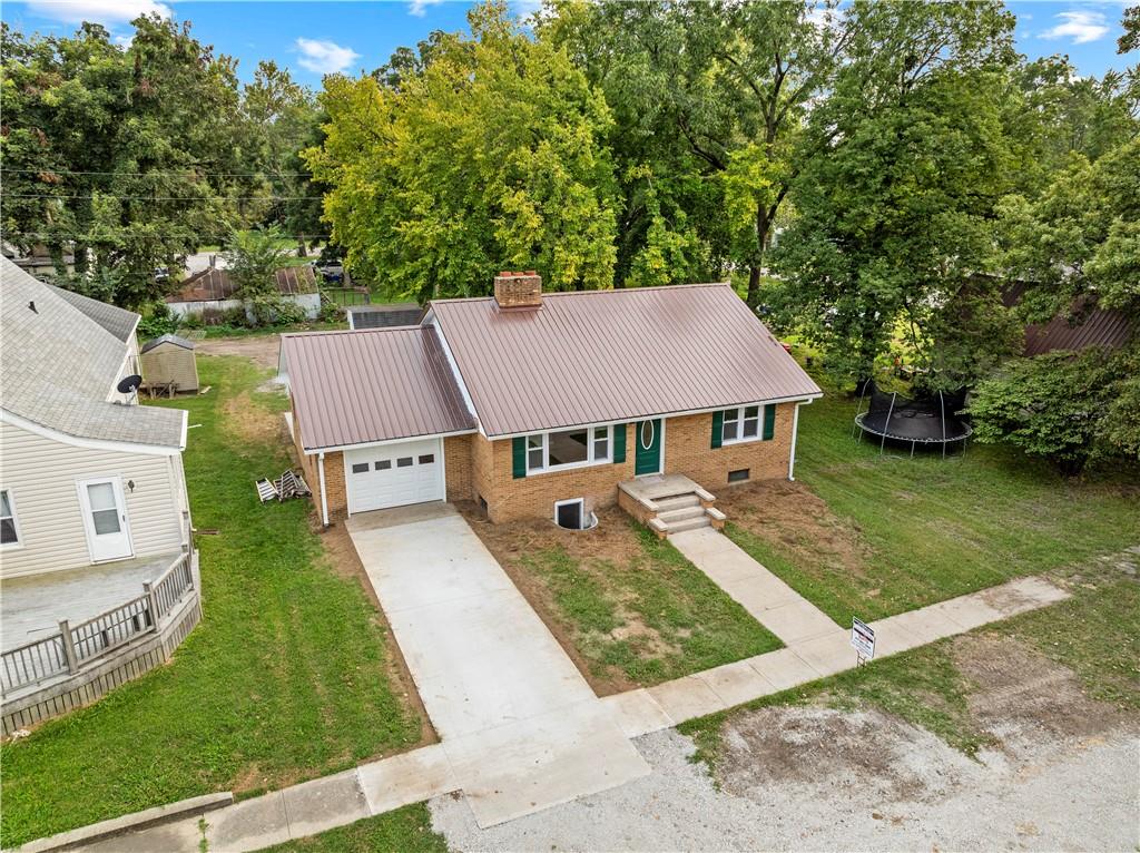 This 3 bedroom, 3 bath home pairs the timeless curb appeal of a Mid-Century brick ranch with the comfort of a full modern remodel. Step inside to discover superior lighting and bright, airy finishes throughout. Refinished hardwood floors, fresh paint, modern fixtures, and a cozy fireplace set the tone in the main living room. The eat-in kitchen and dining area flow together beautifully with updated cabinetry and stylish tile work. The main level offers two bedrooms and two brand-new bathrooms with custom tile showers and sleek vanities. The lower level features a true third bedroom retreat with its own full bath and expansive walk-in closet, along with an unfinished bonus room offering potential for a future fourth bedroom, home office, or second living area. The remodel was completed in 2025, including major system updates: HVAC, water heater, electrical, and plumbing. Outside, you’ll love the brand-new concrete driveway, a metal roof for lasting durability, and the convenience of a drive-through garage with two overhead doors. Move-in ready, beautifully bright, and updated where it matters most, this Mid-Century brick ranch is ready for its next chapter.