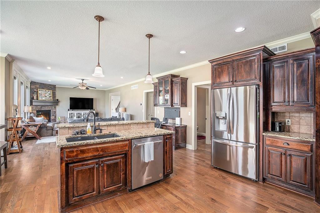 This stunning 5-bedroom home offers the perfect blend of style, comfort, and convenience—all within the highly sought-after Lee’s Summit School District. Step inside to find gorgeous hardwood floors, a bright and inviting living space, and a kitchen designed for both cooking and gathering—featuring granite countertops, stainless steel appliances, and plenty of storage. The oversized primary suite is truly a retreat, complete with a spa-like en-suite bathroom and a huge walk-in closet you’ll fall in love with. Fresh updates throughout include new exterior paint, plush new carpet, and tasteful modern touches that make this home move-in ready. The finished lower level is the ultimate space for entertaining, hosting game nights, or creating the perfect media room. Sitting on almost 1/2 an acre, privacy & space is abundant!