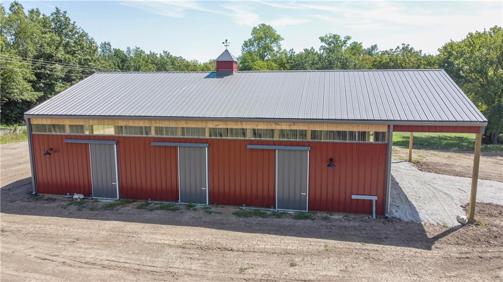 Luxury meets country living in The Westbrook by KC Custom Homes! This 1.5-story custom estate sits on 10+ rolling acres with a meandering creek and 12-ft deep pond. Featuring over 3,400 finished sq ft, the home showcases soaring 18-ft ceilings, a 40-ft wide great room, and a designer kitchen with oversized island, quartz counters, custom cabinetry, accent lighting, and a vaulted dining area. The main-level primary suite offers a spa-like bath with freestanding tub, tiled walk-in shower, and custom walk-in closet, plus a private office and designer half bath. Upstairs, 3 bedrooms each include en-suite baths and walk-in closets. Designer details throughout: exposed wood beams, tall trim, wainscoting, feature walls, curated lighting, and cedar arches with LED up-lighting. Outdoor living includes a cathedral-ceiling front porch, covered patio, and outdoor cooking area with gas/electric hookups. A new 40’x50’ barn offers a concrete floor, full power, two 15’ sliding doors, 3 horse doors, a 15’x50’ lean-to, and 10’ front overhang—perfect for livestock, storage, or workshop needs. Additional highlights: extra-deep garage, spray-foam insulation, sound-insulated walls, soffit lighting, in-wall Yamaha speakers, wired for generator/hot tub/security/future pond power, Tamko Titan shingles, HBW 210 warranty, and a full pet station with wash area, kennel, pet door & Dutch door. A rare opportunity to enjoy luxury living with country serenity just minutes from city conveniences.