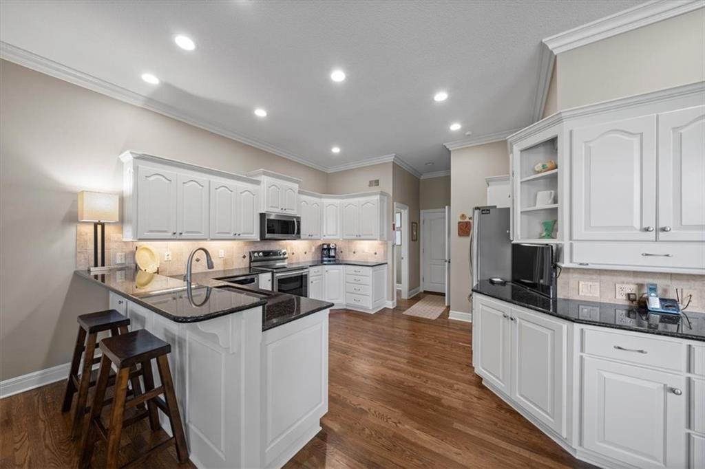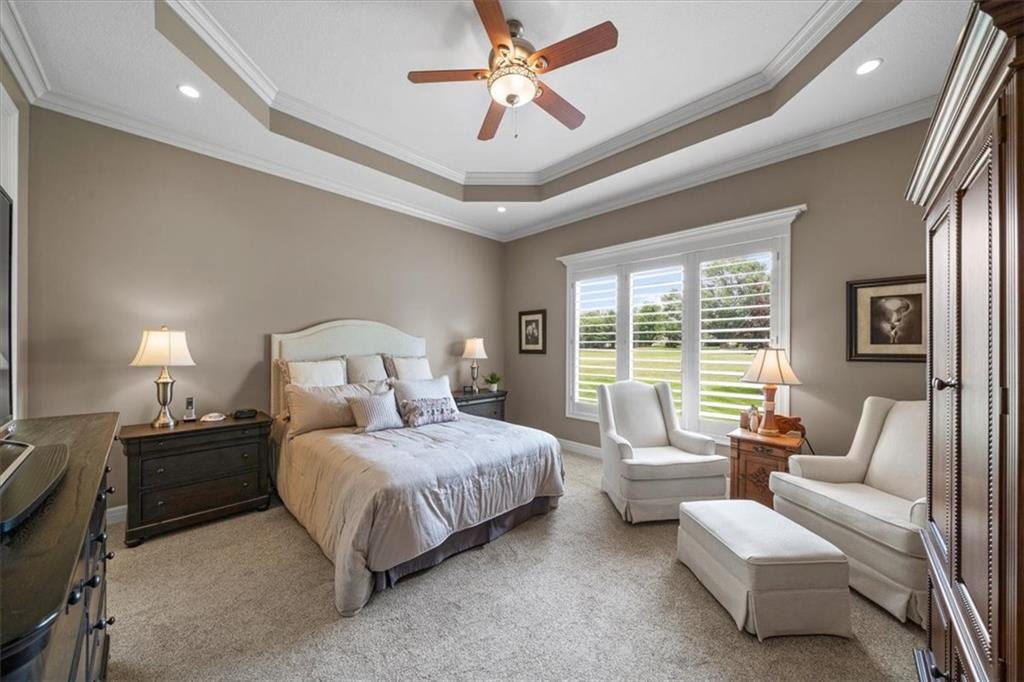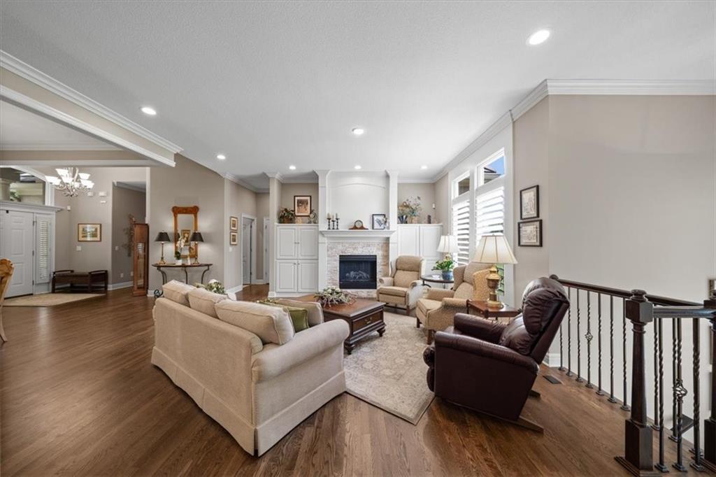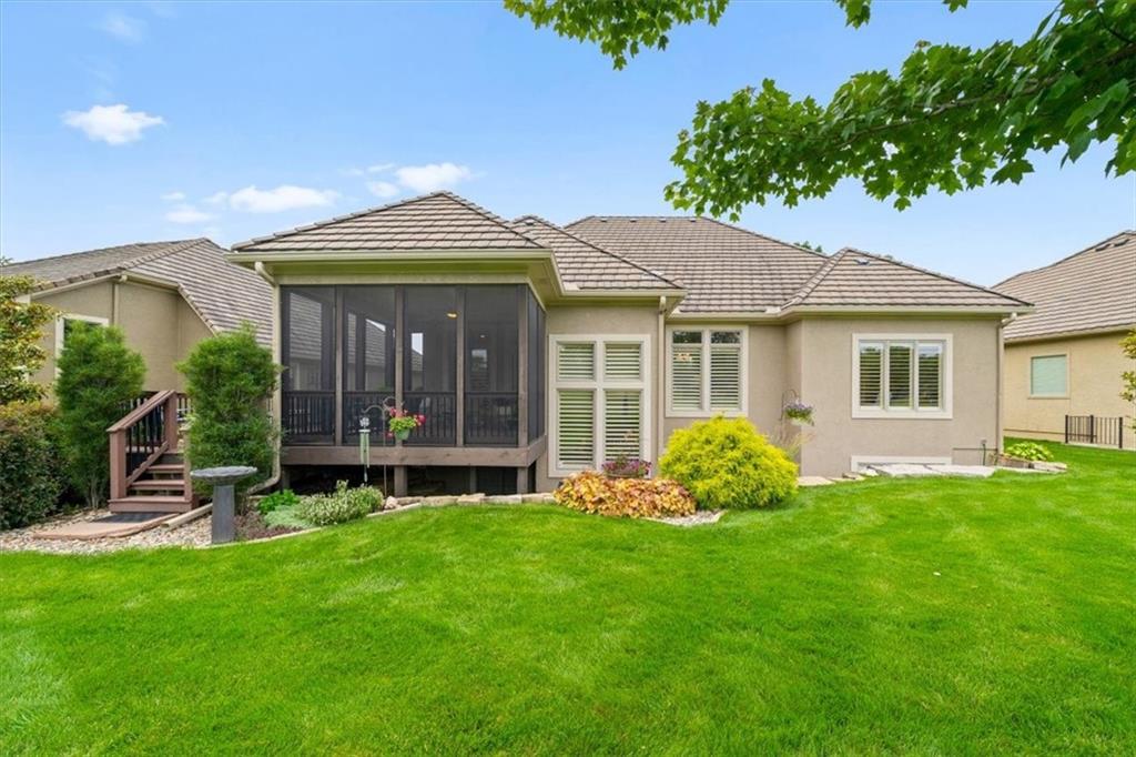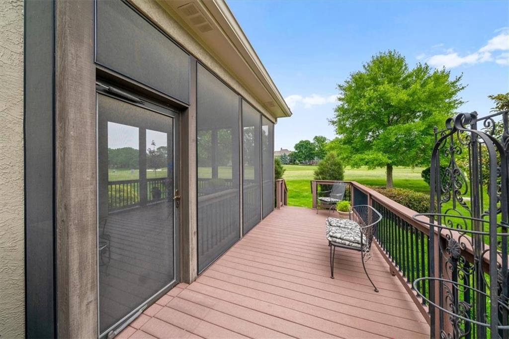 Welcome home to this wonderful reverse villa, a perfect blend of comfortable living and thoughtful updates. The main level is open and filled with natural light, featuring 2 bedrooms and 2.5 baths along with a spacious living room with custom built-ins and a decorative rock tile surround fireplace, a formal dining room, and breakfast area. The modern kitchen includes stainless steel appliances, walk-in pantry, under-cabinet lighting, and convenient slide-out drawers—perfect for home chefs and entertaining. Custom plantation shutters throughout the main level frame beautiful views of Falcon Ridge Golf Course. Step out to the screened-in porch overlooking the 18th fairway. With an east-facing view, it’s the perfect place to watch the sunrise with your morning coffee and, in the evening, enjoy happy hour or dinner. The attached composite deck invites guests outside to take in more golf course views and fire up the grill. The primary suite is a restful retreat with neutral finishes, walk-in closet, and spa-like bath with an ONYX shower. A 2nd bedroom and full bath on the main level make an ideal setup for overnight guests or a home office. A convenient laundry room with sink and folding counter completes the main floor. Downstairs, the finished lower level offers a spacious family room with wet bar and walk-in closet that’s perfect for games and entertainment. Two additional bedrooms, each with a walk-in closet, and full bath provide plenty of space for family or guests. A workshop with a direct staircase from the garage makes projects easy without bringing mess through the home. Numerous thoughtful upgrades include a composite deck, water mitigation system, central vacuum, backup battery for the sump pump, extensive storage, R-51 attic insulation, hardwood floors, new lighting, carpet, and exterior paint. Plus, lawn service and snow removal are provided.
