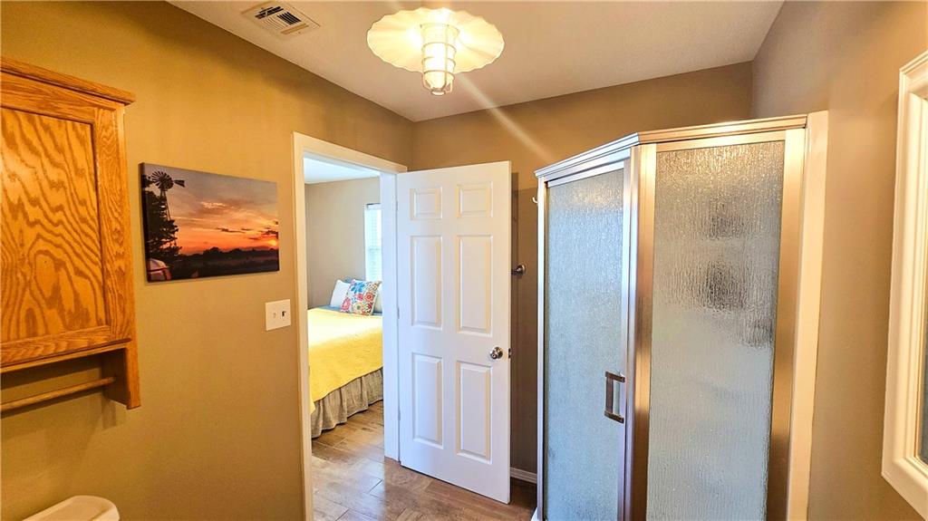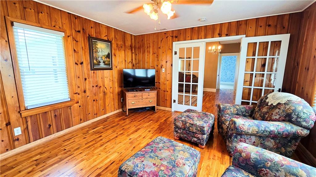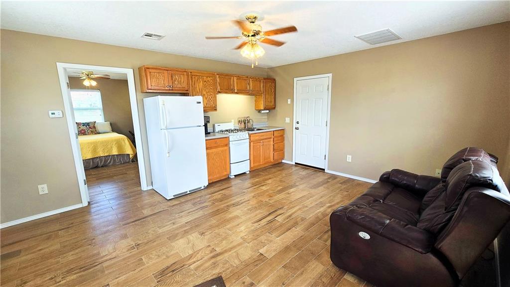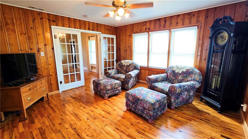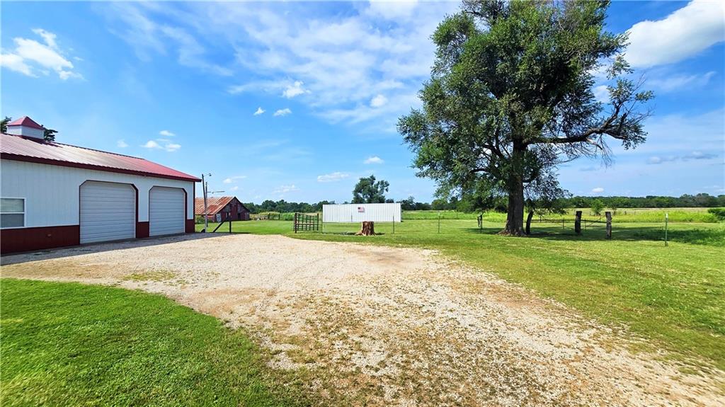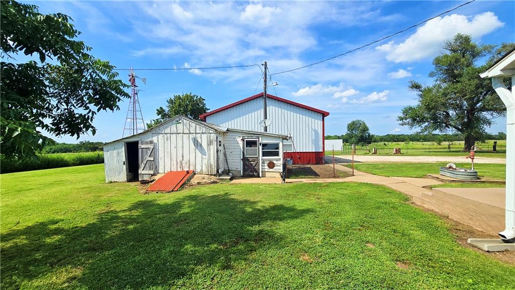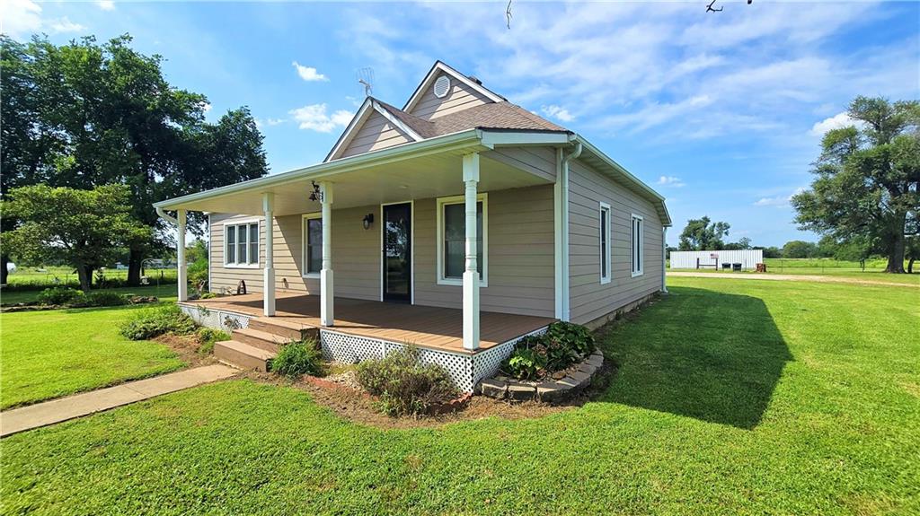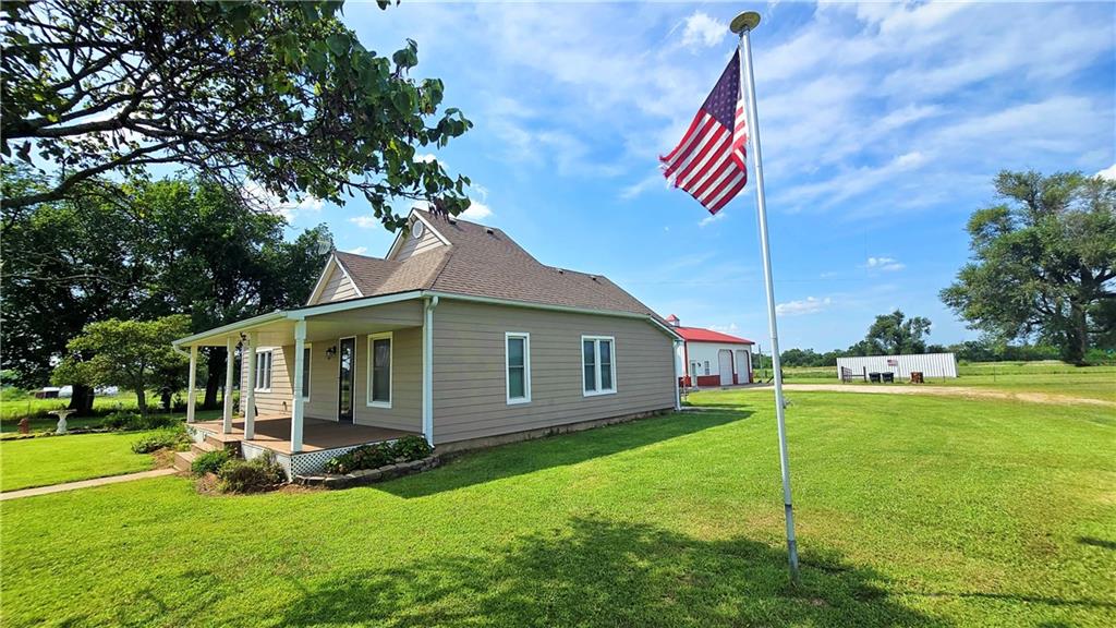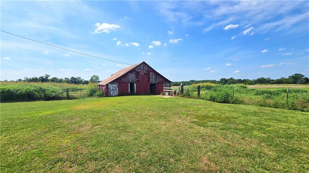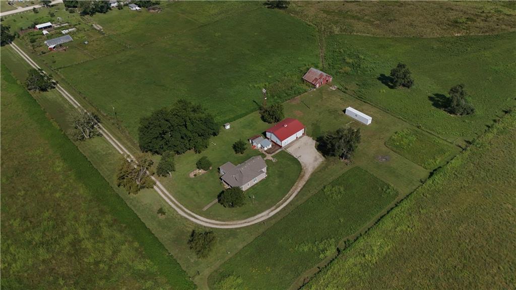 House + Apartment!! Discover the perfect blend of country charm and modern convenience with this beautifully updated turn-of-the-century farmhouse and bonus apartment on 25 acres! The main home offers 1,430 SF of comfortable living space showcasing gorgeous refinished hardwood floors and tasteful updates throughout. The kitchen has been remodeled with oak cabinetry adorned with quartz countertops and stone tile backsplash. In addition to the kitchen remodel, the spacious bathroom has been updated as well. Two bedrooms are situated off the large living room, which adjoins a cozy den clad with solid knotty pine paneling. A mudroom and laundry area is conveniently located right inside the back door. The home features new central H&A, ensuring year-round comfort and efficiency, and high-speed fiber internet to allow for modern connectivity in the serene rural setting. Complementing the main residence is a versatile 1300 SF metal shop building that also has central H&A. One side houses an apartment that provides an additional 500 SF of living space consisting of a bedroom, full bathroom, and kitchen—ideal for guests, extended family, or even rental opportunities. On the other side, approximately 800 SF of shop space provides ample room for projects, hobbies, and storage, with two large 10x10 garage doors and convenient attic storage above. In addition to the shop, outbuildings include a 1,200 SF old metal barn, a canning shed with cellar, and a 40' shipping container complete with electric. Outside, the sprawling acreage is adorned with perimeter fencing, established landscaping, and a charming historic windmill with an original 90' well beneath (not in use). All of this is tucked back off the road, down a gated lane that provides privacy and security. This unique property offers the best of both worlds - the timeless appeal of a classic farmhouse, combined with the peace of mind that comes from knowing it has undergone extensive updates. The perfect homestead awaits!