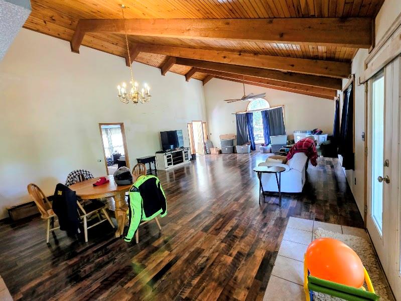 Beautiful 4-bedroom, 2-bath ranch home on 42+/- acres of rolling countryside! Property includes 5+/- acres of pasture with the remainder in wooded hills and mature trees. Home has been updated with a new roof, siding, gutters, soffit, and vinyl windows. The open-concept kitchen, dining, and living area features an island and bar—perfect for entertaining. Great room and dining area showcase vaulted tongue-and-groove ceilings and walk out to a covered patio with scenic views. One bathroom offers handicap accessibility. Attached 2-car garage for added convenience. Bonus: 13+/- acres have a separate survey, and seller is willing to split.