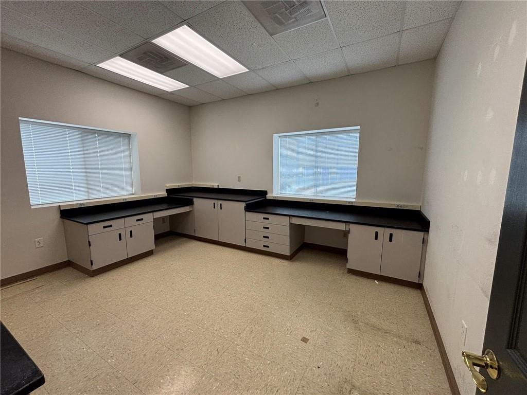 Available for lease, this well-maintained flex office/warehouse space offers a versatile footprint in a highly accessible Lawrence, KS location just off 23rd Street and Haskell Avenue. The building totals approximately 5,000 SF, evenly divided between 2,500 SF of office space and 2,500 SF of warehouse space—an ideal setup for businesses needing both administrative and operational functionality under one roof. The office portion includes six private offices, two workrooms, a break room, two bathrooms, a copier room, and a wash room, providing ample space for staff and workflow needs. This area is fully climate-controlled with zoned heating and cooling (three thermostats) to maximize comfort and efficiency across different areas. The warehouse is heated, has A/C capabilities, and features two overhead roll-up doors—one 12'x11' drive-through and the other 12'x12' with rear drive-up access for efficient loading and unloading. With open floor space and 16' ceiling height, the warehouse is well suited for storage, light manufacturing, or a variety of other business operations, ensuring year-round usability. Additional property highlights include 17 dedicated parking spaces, wheelchair accessibility, and an installed security system. The site’s layout supports smooth traffic flow, while the combination of office and warehouse functionality provides a unique opportunity for businesses seeking flexibility and efficiency in a single location. The property owner is open to considering layout modifications and reasonable improvements. Positioned near one of Lawrence’s busiest commercial corridors, this property combines accessibility with practical amenities for businesses looking to expand or relocate.