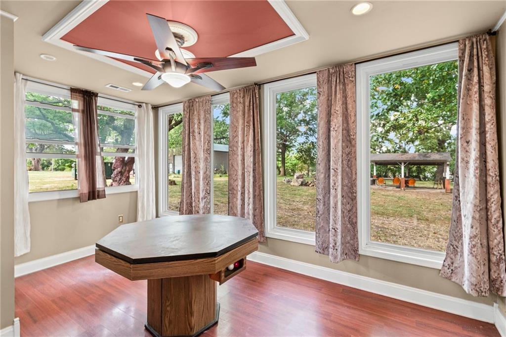 Discover this spacious 4-bedroom, 2-bath home offering a unique blend of comfort and versatility. Two outbuildings with electric, concrete floors, a wood stove, and heat lamps provide the perfect setup for hobbies, workshops, or extra storage. The home also features a recreational room, an enclosed sunroom, and a covered pavilion complete with lights, outlets, and a ceiling fan—ideal for year-round entertaining. Backing to Dyer Park, the property offers privacy and scenic surroundings with plenty of room to enjoy both work and play. House is currently undergoing minor updates.