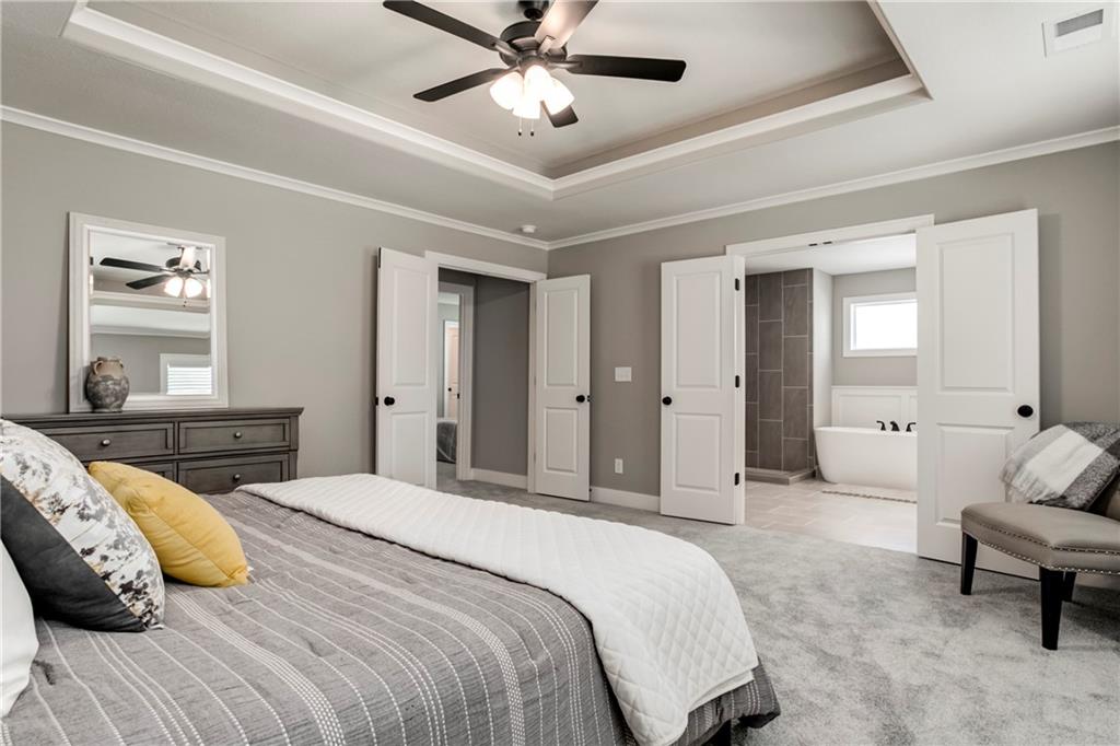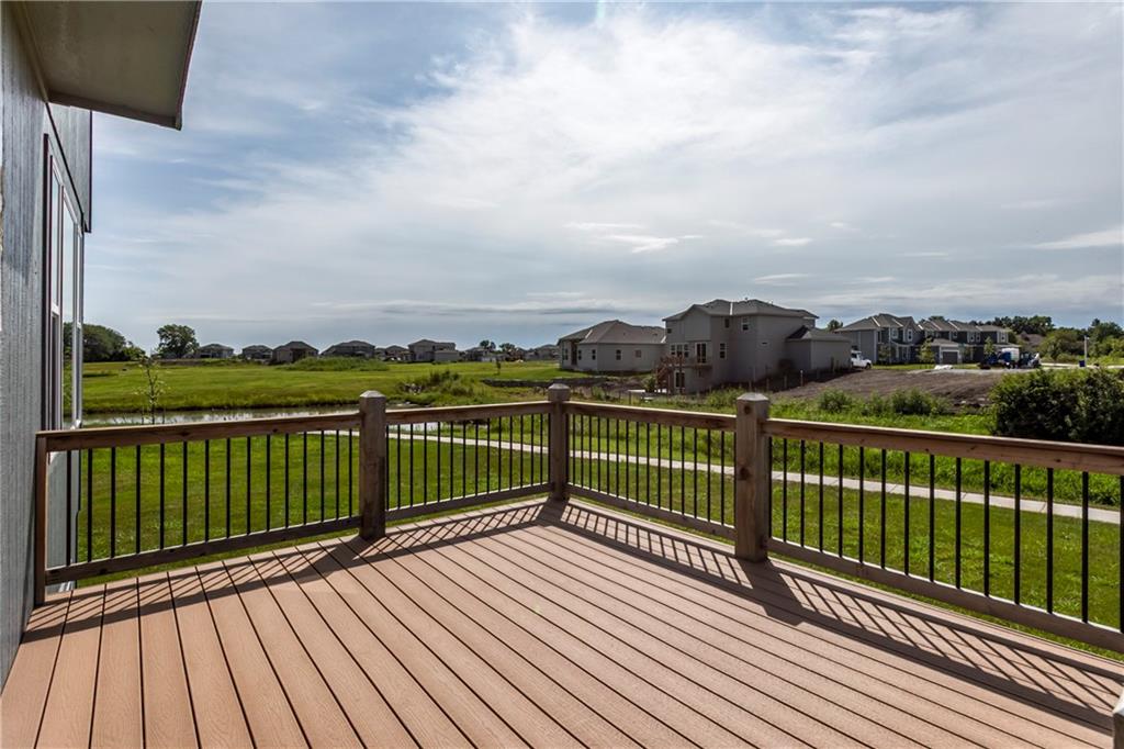 Beautiful Wesley III on an incredible lot. Daylight basement on a large pie-shaped cul-de-sac lot. Includes a composite deck with stairs to grade. The home backs to green space that includes a detention pond viewable; from the second floor and deck, and trails that connect to the area fishing lake. The kitchen includes an extended jewel-tone enameled island, a white enamel cabinet surround, and stained floating shelves for accents. Massive pantry with face-framed shelves. Matte Black plumbing faucets and door hardware. Free-standing tub, face-framed master closet shelves, color-changeable LED lighted vault in Master Bedroom, double doors to the master bath. Cordless faux wood BLINDS are included, and a 3-car garage with painted and insulated interior walls. Garage door OPENERS with a keypad are included. Sprinkler System, extended front porch, water views from the front porch and the deck. Porch is perfect for a porch swing and chairs. Upgrades included: Extensive custom trim work. Boxed stained beams in the dining room, a custom fireplace with a linear, electric, heat producing, fireplace insert with stained mantle, a trim accent wall in the stairwell with a built-in mirror, a boot bench with upper cubbies, and a built-in storage drawer, upgraded kitchen backsplash. Enjoy the subdivision playground, trails, fishing lake, fire pit, picnic shelter, trails, and HEATED pool with splash zone and slide, also includes an extended pool season (Open until temps drop to late at night). Taxes and Sq. Ft. are Estimated.