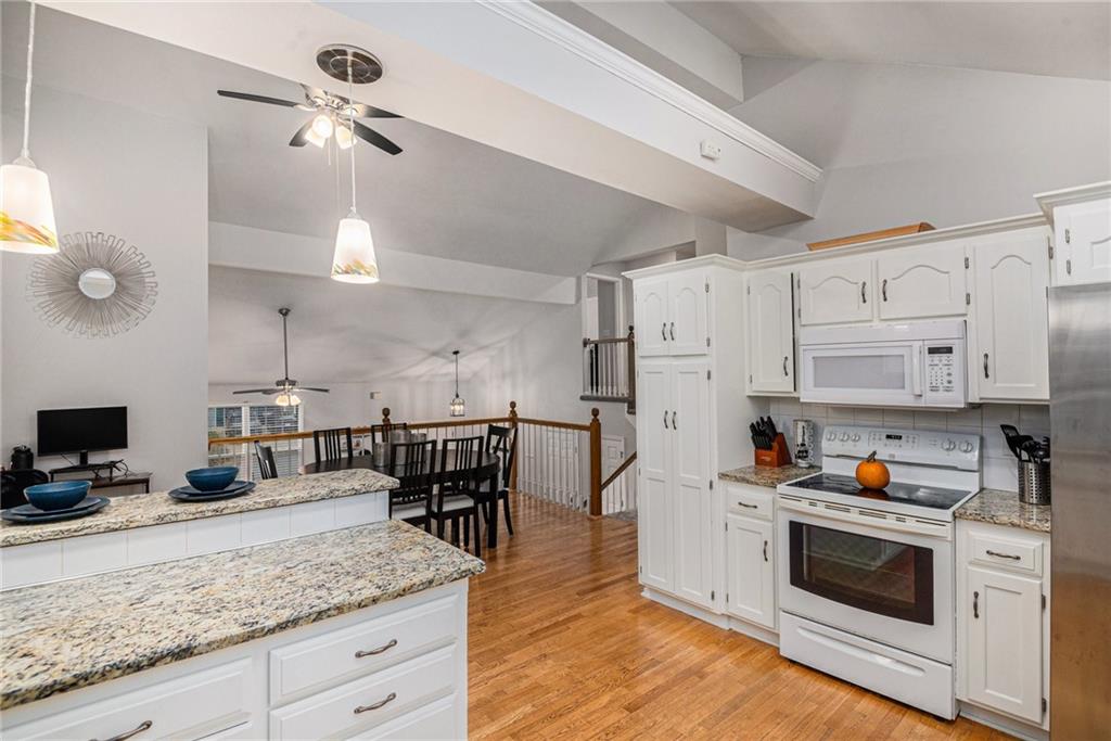 This home has generous living spaces and is ideal for anyone. As you enter, you're greeted by soaring ceilings and lots of light bright space. The main level features a great room with a floor to ceiling fireplace. One short level up features the kitchen with white cabinets, granite counter tops with stainless appliances, a spacious dining area, 2 secondary bedrooms, a full bath and laundry room. The inviting primary suite has it's own level and is HUGE! Tiled bath with whirlpool tub, separate shower & separate vanities. The finished walk-out lower level has a rec room, 4th bedroom & 3rd full bath. This home has been recently painted and has a great sized trex deck and lower patio area. Conveniently located to schools, shopping and more, this home is a must-see. Don’t miss your chance to make it yours!