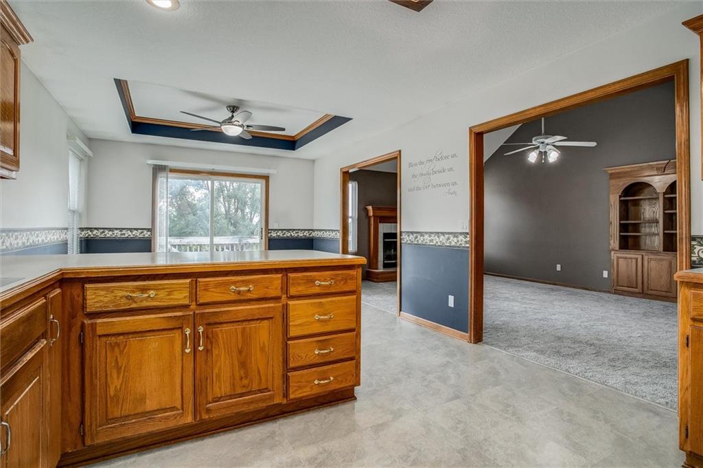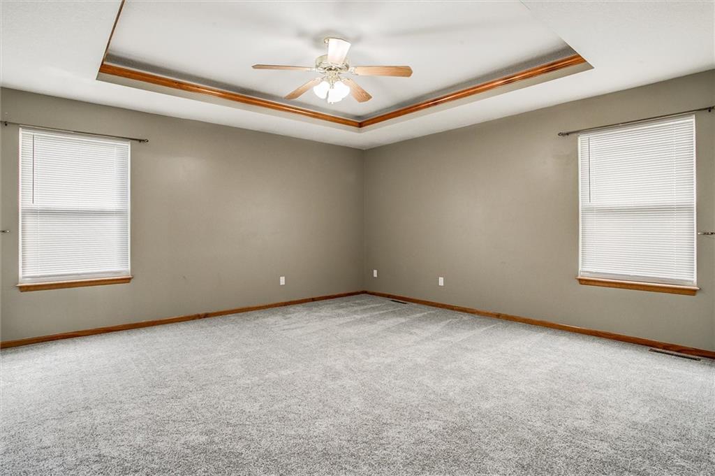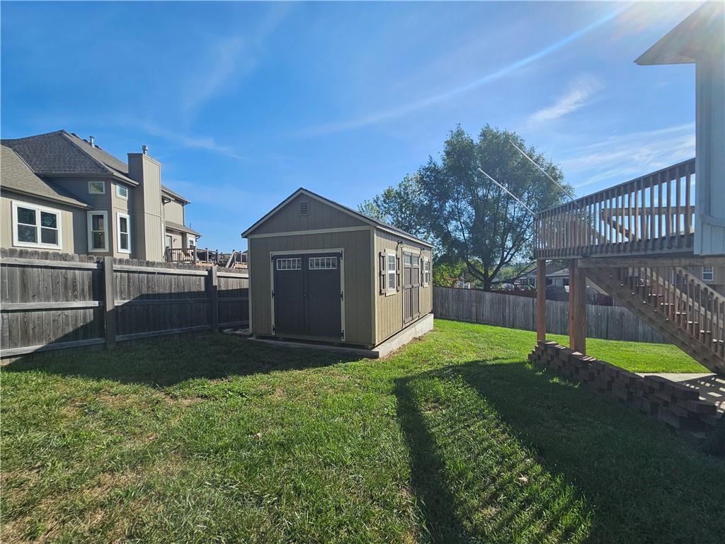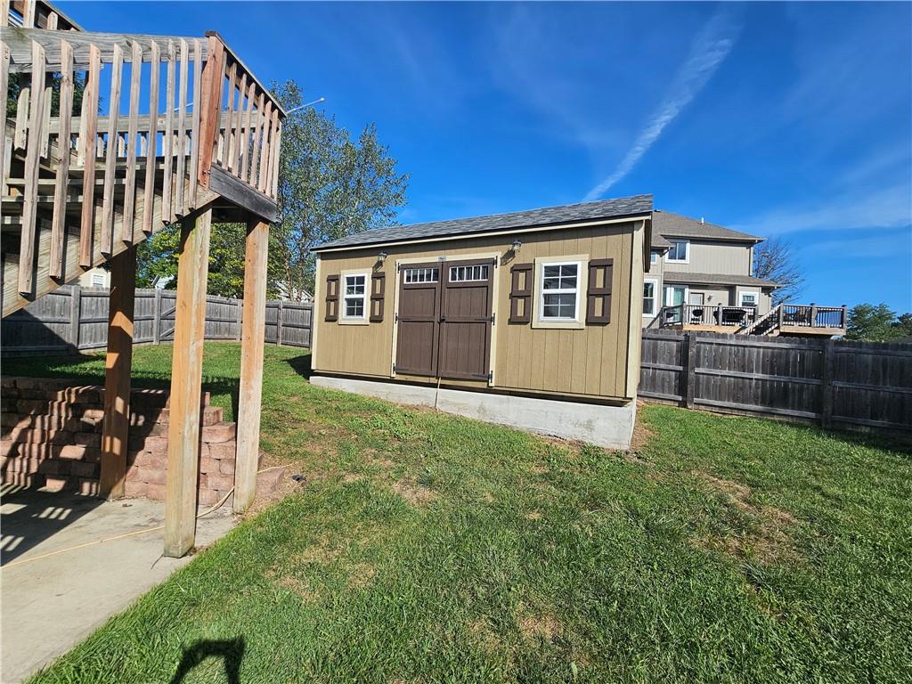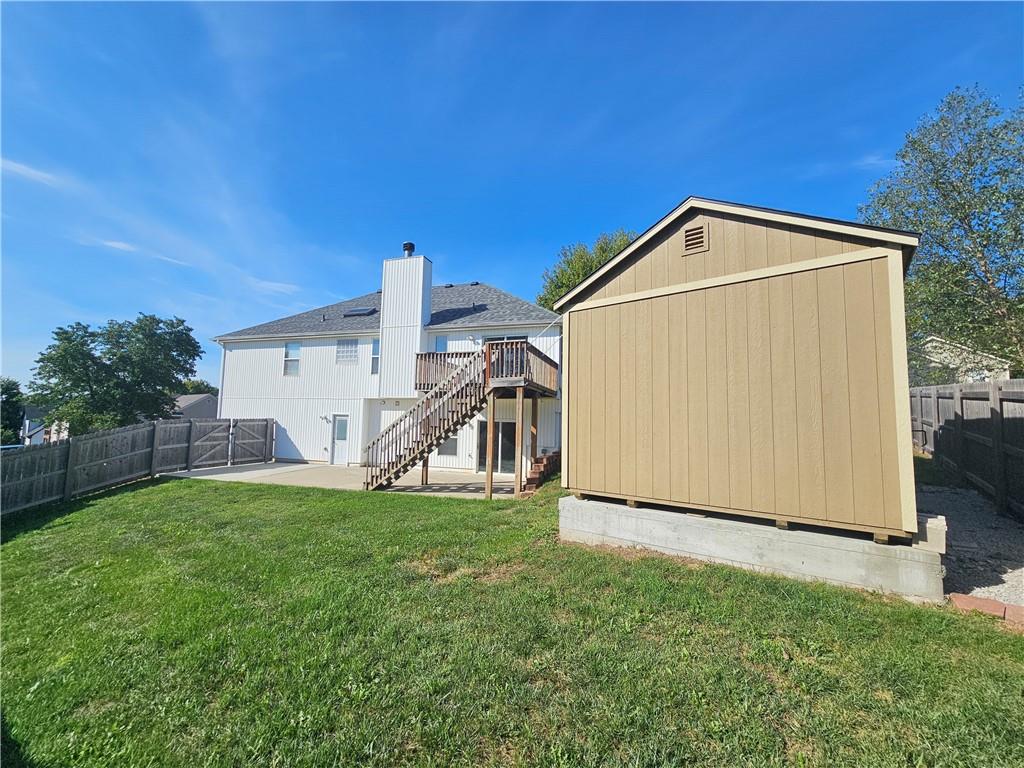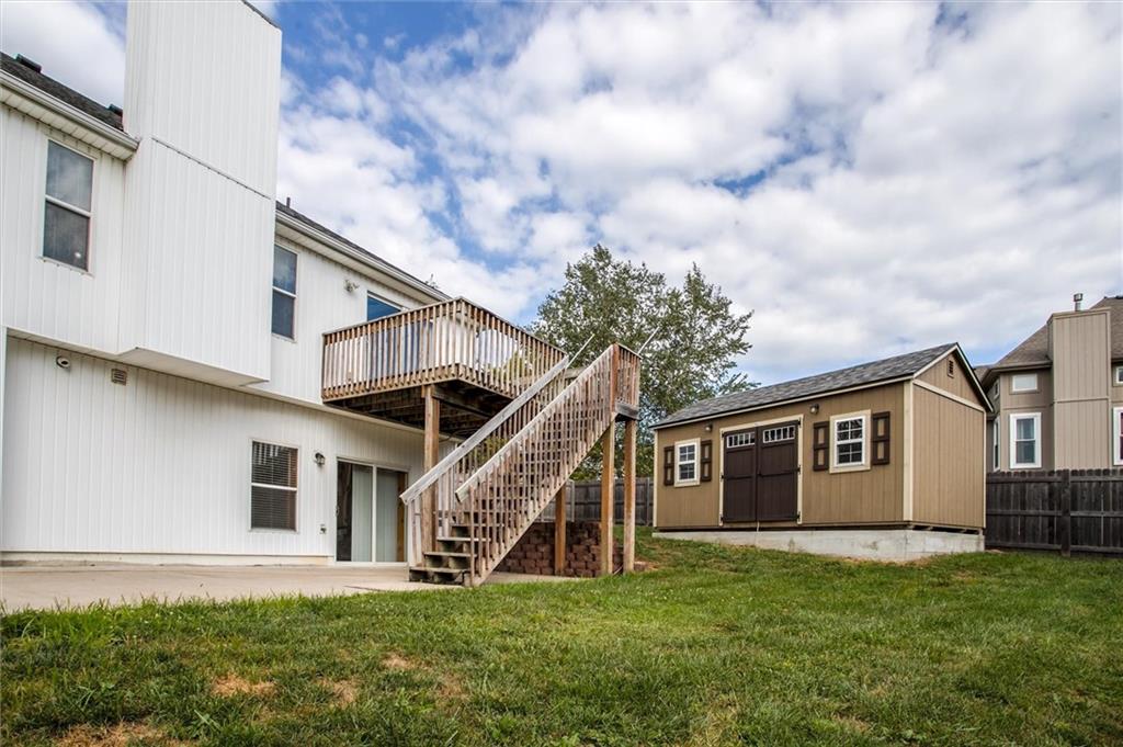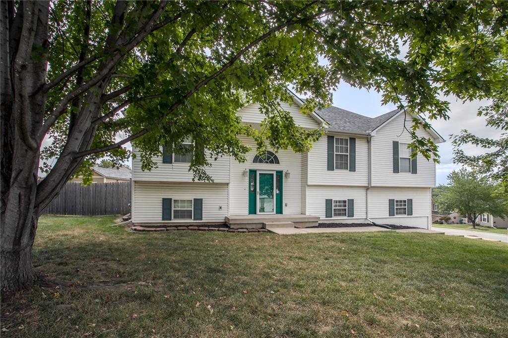 Wow All new big ticket items!! This super spacious split is situated on an oversized corner lot, with big backyard, HUGE 3 car side entry garage with a 4th driveway added, new 2024 roof, new hot water heater, new carpet, new high efficiency furnace and A/C lots of new has been put into this home. and maintenance free siding! New 12x20 lofted shed add in the back yard. Inside-- check out the large dine-in, chef's kitchen w/TONS of cabinets & counter space for food prep. Fantastic great room w/vaulted ceiling, fireplace, and custom built-in cabinets. Generous master & en suite with separate shower & corner tub to soak your cares away. Finished lower level is great space for hanging out--plus full bath! Super close to new Adam's Dairy Shopping & Restaurants. Award winning Blue Springs School District. A must see!