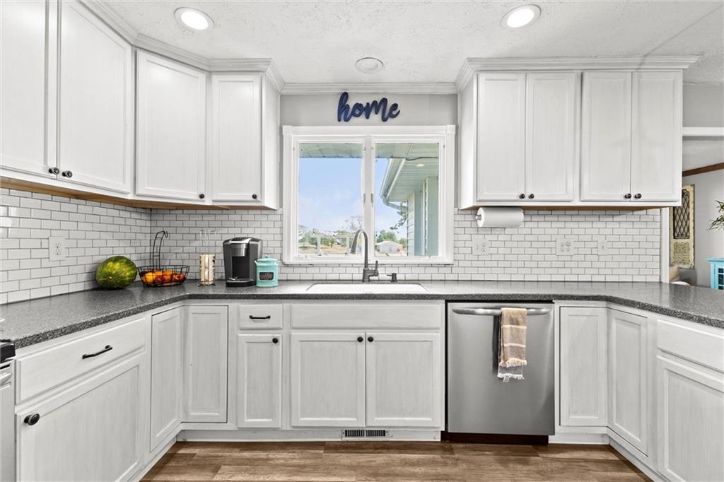 Have your cake and eat it too—country living with modern comfort!This charming, updated ranch sits on 3.4 peaceful acres with a fenced-in yard, a 2-car attached garage, and a barn with three additional garage bays—perfect for hobbies, projects, or extra storage. Bring your chickens to the coop, cast a line in the shared pond, or simply relax and take in the open views. Inside, the open-concept floor plan offers true main-level living with an inviting flow between living, dining, and kitchen spaces. The spacious primary suite features an updated ensuite bath and laundry tucked conveniently in the closet. With maintenance-free vinyl siding, easy highway access, and plenty of room to spread out, this property blends the best of both worlds—a cute updated ranch and your own slice of acreage.