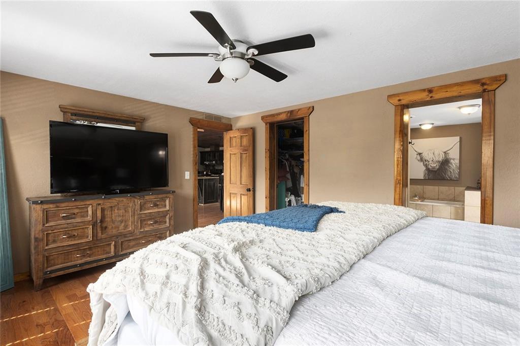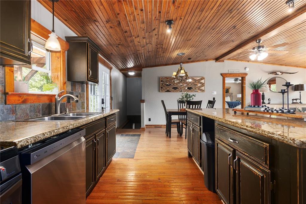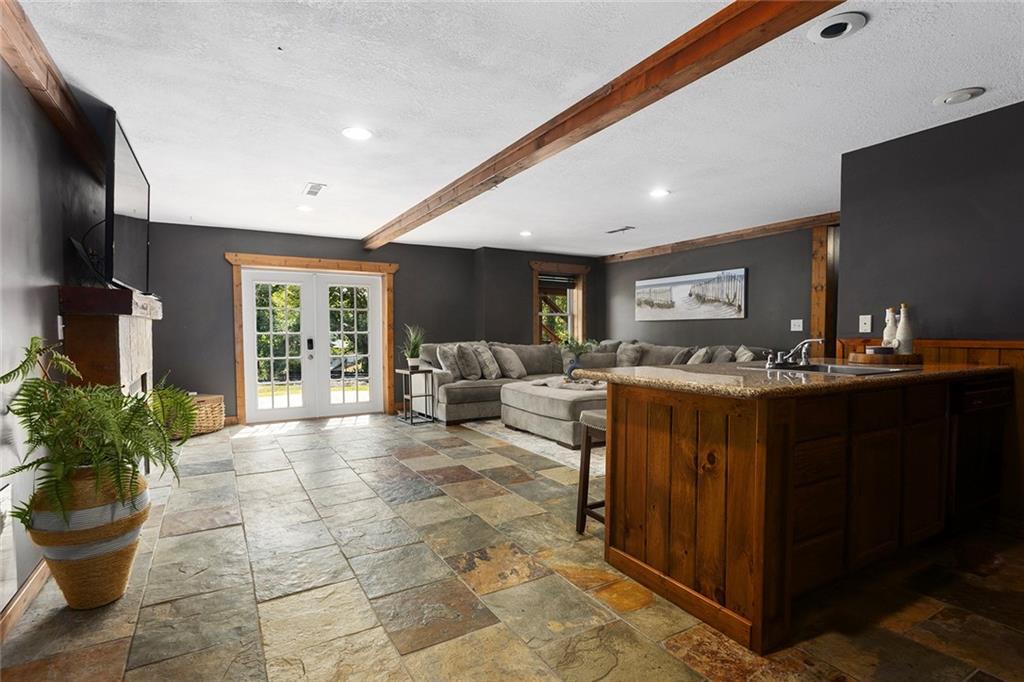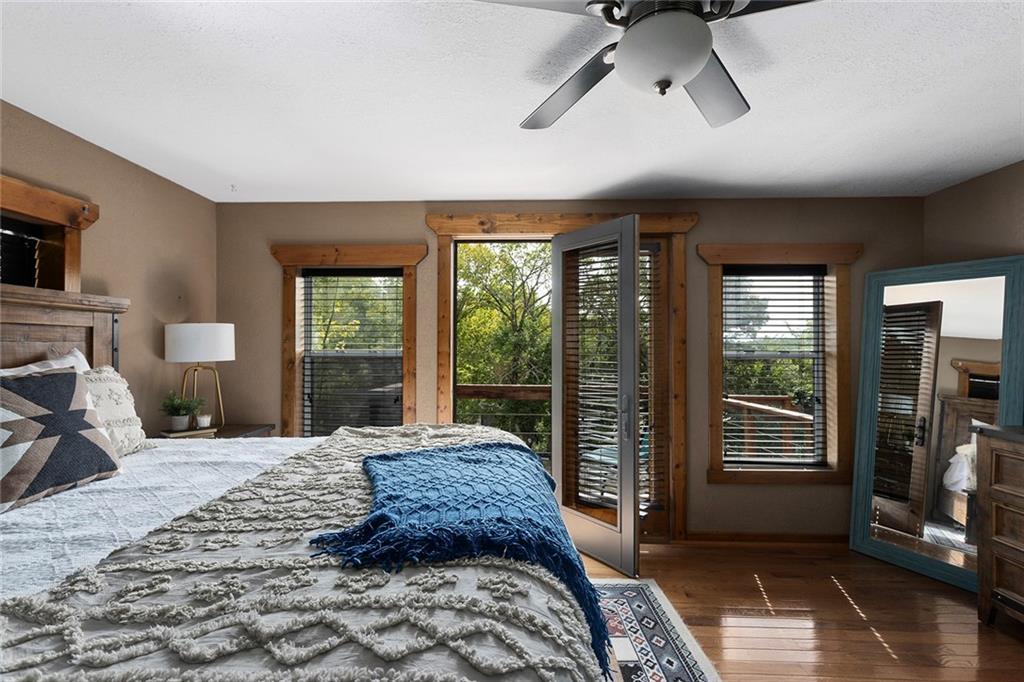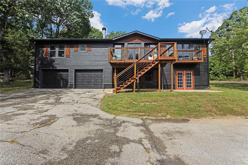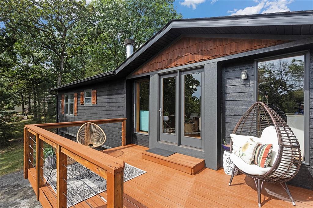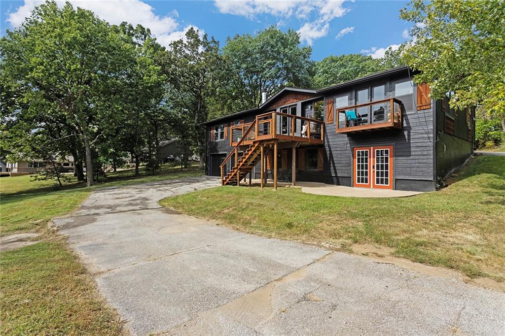 This beautiful 4-bedroom, 3-bathroom home sits on a rare double lot in highly sought-after Lake Lotawana. Featuring an open floor plan with soaring ceilings, custom wood accents, and stunning hardwood floors, the home is filled with natural light. The spacious kitchen offers a large island and plenty of storage, while the primary suite provides a relaxing escape with a soaking tub and walk-in shower. A finished basement adds a cozy family room with a wet bar and an additional bedroom that feels like a second primary suite with its own tub, walk-in shower, and oversized closet. Energy efficiency meets comfort with solar panels that keep utility costs low, and a hot tub hookup is already in place. Outdoor living is exceptional with four different areas to relax or entertain: a large front deck perfect for outdoor dining, a separate fire pit area, and two back decks plus a covered patio where you can enjoy the sunrise and sunset any time of year. A two-car garage and double driveways provide plenty of room for cars, golf carts, and even boat parking. Just a quick golf cart ride from dining, shopping, parks, tennis and pickleball courts, and with easy access to two of the lake’s entrances, this home offers both convenience and the Lake Lotawana lifestyle.