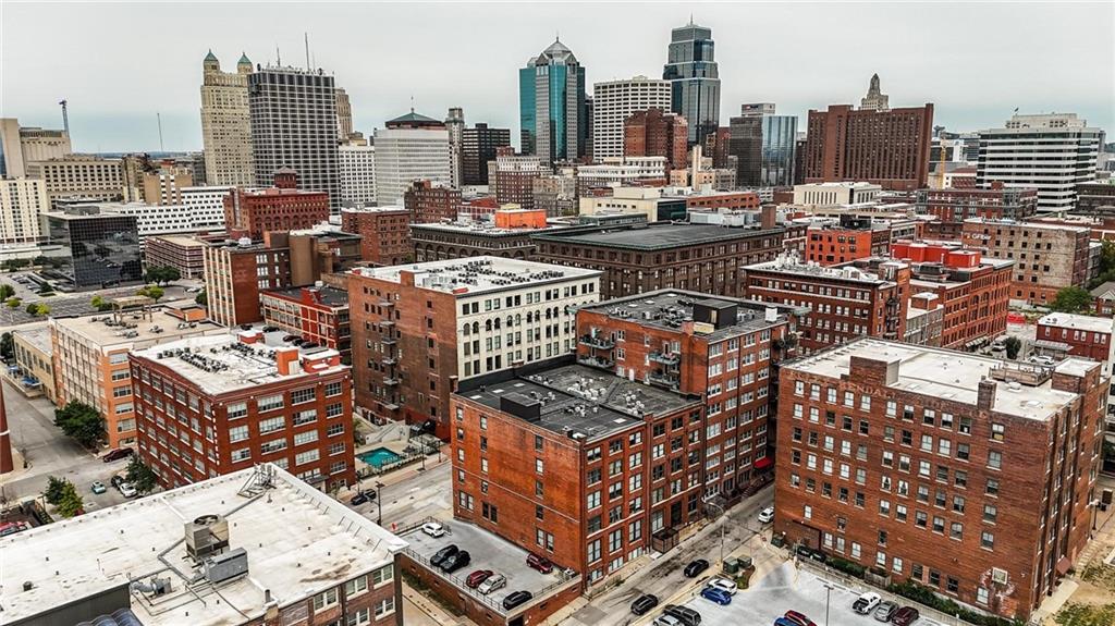 Historic charm, modern amenities, low HOA dues, and a downtown location that keeps you connected to the best of Kansas City-Welcome to Loft #412 in 700 Broadway at Soho, right in the Garment District. This 729 sq. ft. studio is all about style and substance, mixing exposed brick, rich hardwood floors, oversized windows, and a tongue-and-groove timber ceiling. The open layout carves out space for living, working, and sleeping, while the elevated kitchen overlooks it all. Outfitted with stainless steel appliances, granite counters, extended prep space, and plenty of room to move, it’s as functional as it is inspirational. You’ll also find a full bath, built-ins, ample closet space, an in-unit washer/dryer, and of course, those city views. Residents of this boutique building benefit from a gym, business lounge, game room with a kitchenette and bar, media room, laundry facilities, and bike storage. Parking is leased—attached garage spots are assigned by lottery, and a gated lot on Bank Street offers additional options. Step outside, and the city is yours. Grab coffee, dinner, or drinks nearby, wander the City Market for fresh finds, or hop the streetcar to explore the Crossroads, Power & Light District, and one day, Berkley Riverfront Park. Investor-friendly with rental potential, but no Airbnb. Offered fully furnished for a true turn-key investment.