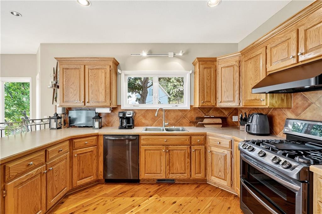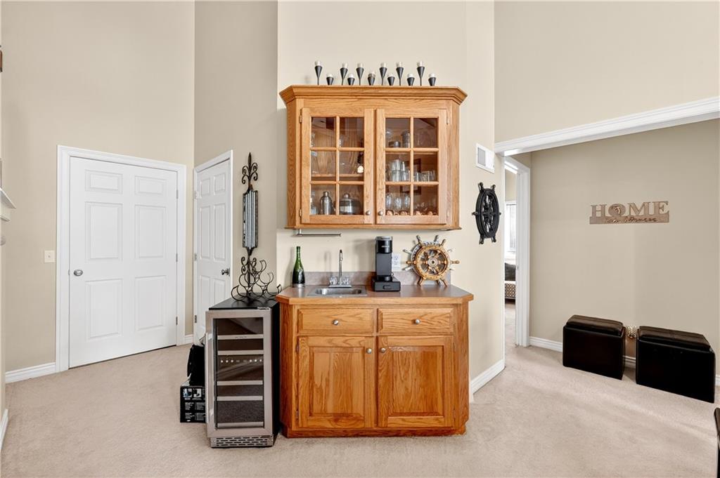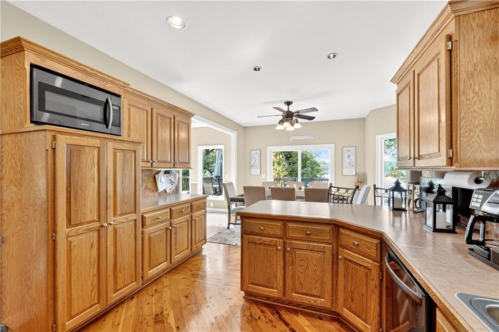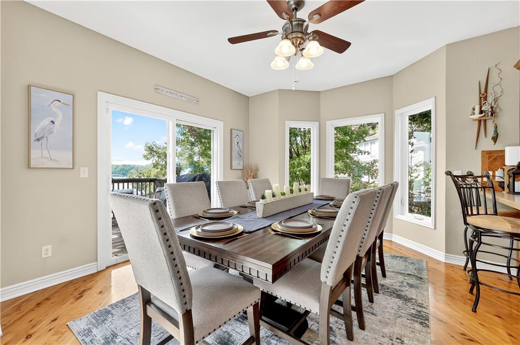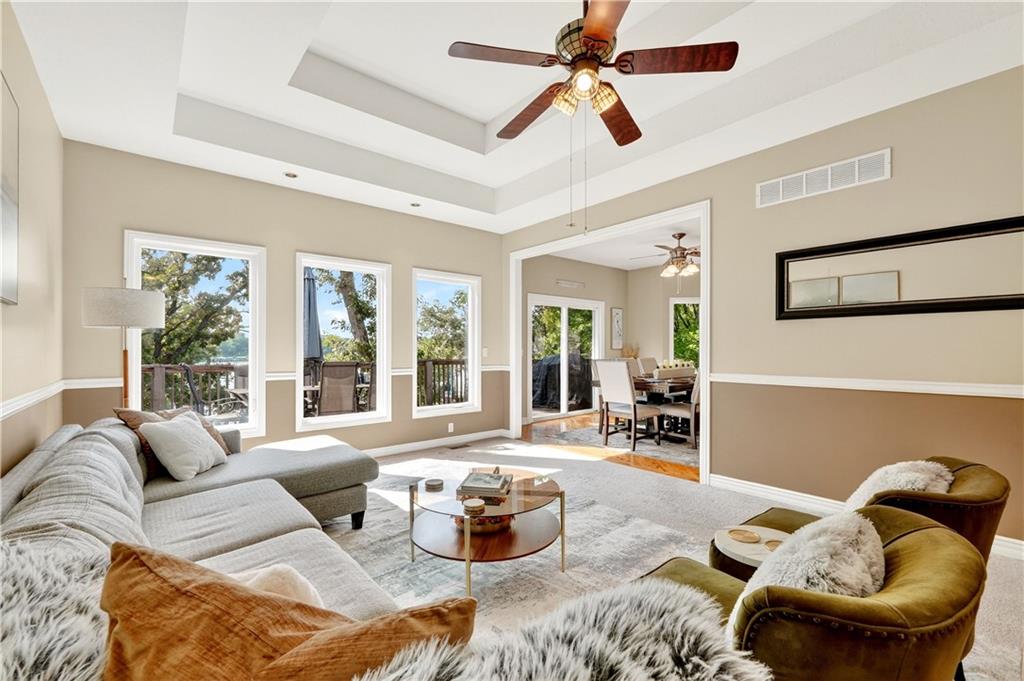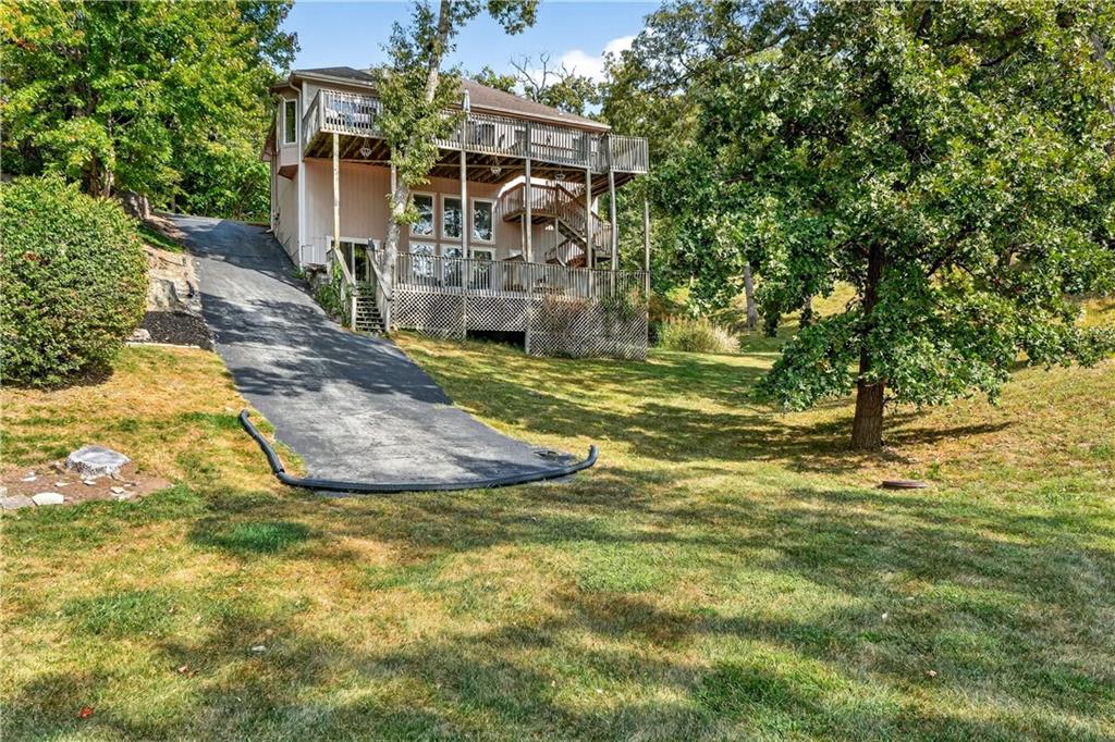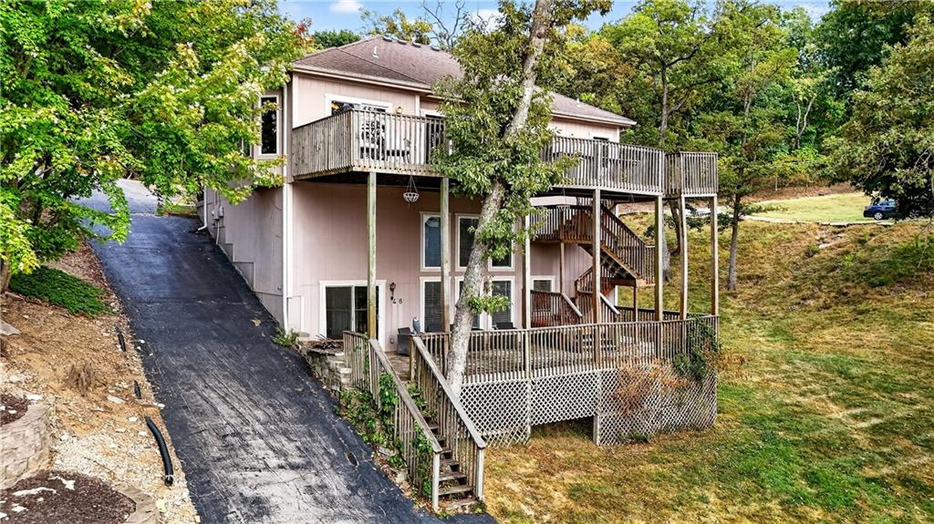 A Rare Opportunity: Inner Cove Privacy with Main Channel Views and Unforgettable Sunsets! Welcome to your lakeside retreat on Lake Lotawana, perfectly positioned in the first cove off Lake Shore Drive, this 1st Tier reverse 1.5 story offers something truly rare—an inner cove property with unobstructed west views straight into the Main Channel. While most cove homes look across at neighbors, this one gazes outward, framing expansive water and some of the best sunsets the lake has to offer right from the comfort of your living, dining, primary bedroom and kitchen. From the moment you step inside, the home draws your eye through soaring ceilings and expansive windows to the sparkling water beyond. The main floor features an open and inviting layout with a spacious living room and easy access to the elevated deck—an entertainer’s dream. The well-appointed kitchen includes stainless steel appliances, a pantry, and an oversized L-shaped island with seating, opening to a dining area that overlooks the lake. Just off the spacious living room, the luxurious primary suite offers a spa-like escape with double vanities, a whirlpool tub, walk-in shower, and a large walk-in closet. Downstairs, the lower level impresses with dramatic 18’ ceilings, wall-to-wall windows, and a spacious family room complete with a wet bar for effortless entertaining. Two bedrooms sit to one side, while a versatile bonus room to the other could serve as a home office, den, or fourth non-conforming bedroom. Step out to the covered lower deck—a perfect spot to relax after a day on the water. At the water’s edge, enjoy your private pier dock and boat lift with plenty of space to dream up plans for a future boat dock. Invite friends and family with up to 7 parking spaces. Every angle of this home is designed to remind you why the lake is so special: the views, the sunsets, and the sense of calm that makes you stop and savor the moment. Don’t miss your chance to claim this unique slice of Lotawana living!