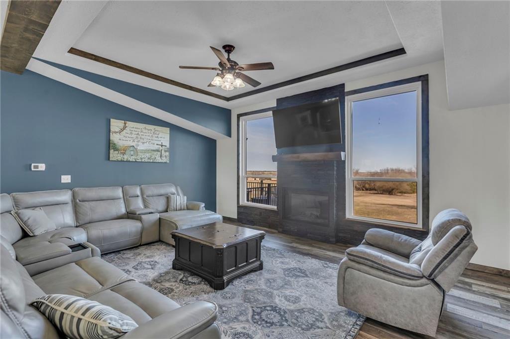 A Private Retreat on 8.39 Acres Meticulous Living Just Minutes from the City All of this tranquility is just a short 25-minute drive to The Legends, Leavenworth, or Lawrence, with dining, shopping, and city amenities close at hand. Welcome to your forever home. Nestled on 8.39 pristine acres, this 3,514 sq. ft. homes offers the perfect balance of peaceful retreat and modern convenience. With meticulous finishes throughout, designed to create a warm and inviting sanctuary. Step inside the main level, where an open living room boasts soaring windows providing natural light, framing sweeping views of your acreage. Whether hosting family gatherings or enjoying a quiet evening in, this heart of the home is both spacious and serene. The main level also features three bedrooms, including a luxurious primary suite , walk in closet with built in shelves designed for comfort and relaxation. The finished lower level expands your lifestyle possibilities. Walk out basement offering additional living space, two unfinished bedrooms, and a full bathroom ideal for entertaining, (5 Bedrooms) multi-generational living, or hosting out-of-town guests. Every corner of this home showcases upgraded features and thoughtful finishes. Morning coffee becomes a daily ritual on the back deck, where you can watch the sun rise or set across your own private landscape. The oversized three-car garage provides abundant room for vehicles, equipment, or hobby space. Outdoors, the land offers endless possibilities create a thriving garden, enjoy recreation, or keep animals with room to roam. This is more than a home—it’s a retreat, a lifestyle, and the perfect place to plant your roots.
