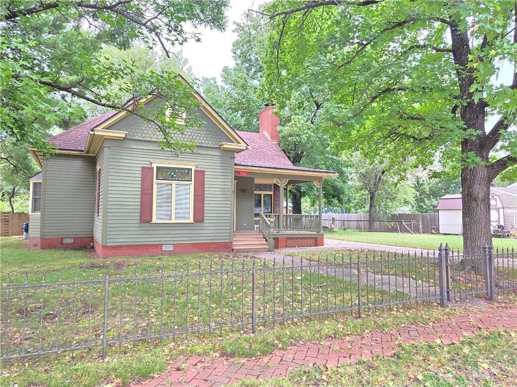 MOTIVATED SELLER!! This Beautiful Iconic Home is a Must See! These Don't come Available very Often! It has been in the Same Family Since it was Built! Wonderful Location and Setting for this 2, Could be 3, Bedroom Home! Was Definitely Well Built and has Been Well Maintained. The Wrought Iron Fencing in Front of the House Sets the Stage and the Beautiful Exterior Color and the Accents of Some Stained Glass Throughout the House Give it the Perfect Look! So Many Unique Features Throughout! The Bricks that were used to Build the Fireplace, in the Spacious Living Room, were From the Bricks Retrieved from 3rd Street (in Cherryvale), When the Road was Replaced in 1972! The Brick Fencing and Sidewalk, in the Back Yard were also Made From These as Well! Such Preserved History! There is Original Hardwood Flooring Throughout Parts of the Home and Decorative Lighting in Several of the Rooms. The Possible 3rd Bedroom Could Also be a Perfect Office Area! The Kitchen Includes Electric Stove, Refrigerator, Dishwasher, and the Washer and Dryer will Also Remain! In the Back Yard, there is a Covered Deck and Covered Entrance to the Garage. There is also a Gazebo, that was Built by the Family, that adds a Nice Touch. The Garage has a Front Entrance for One Vehicle and Includes a Good Size Shop Area. There is an Another Garage Opening on the Back Side for an Additional Vehicle. There are Also 2 Additional Lots and a Shop Building that are Included in the Price!! They are Located Behind the House, across the Alley!! (The Address for the Extra Lots is 1005 E 3rd.) You Won't Want to Miss Out on This One! Such a GEM!