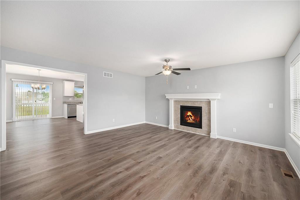 Welcome to this spacious 5-bedroom ranch that combines modern updates with plenty of room for everyone. The open main level features a bright living room with a cozy fireplace and large windows, flowing easily into the kitchen with granite counters, stainless steel appliances, and a functional island. The primary suite offers a tray ceiling, walk-in closet, and private bath with double vanities. Four additional bedrooms provide flexibility for family, guests, or a home office. The finished basement expands your living space, while the unfinished section is perfect for storage or hobbies. Step outside to enjoy evenings on the back deck overlooking the pond and green space. With a two-car garage and convenient location near schools, shopping, and dining, this home is a fantastic find for those wanting both space and comfort.